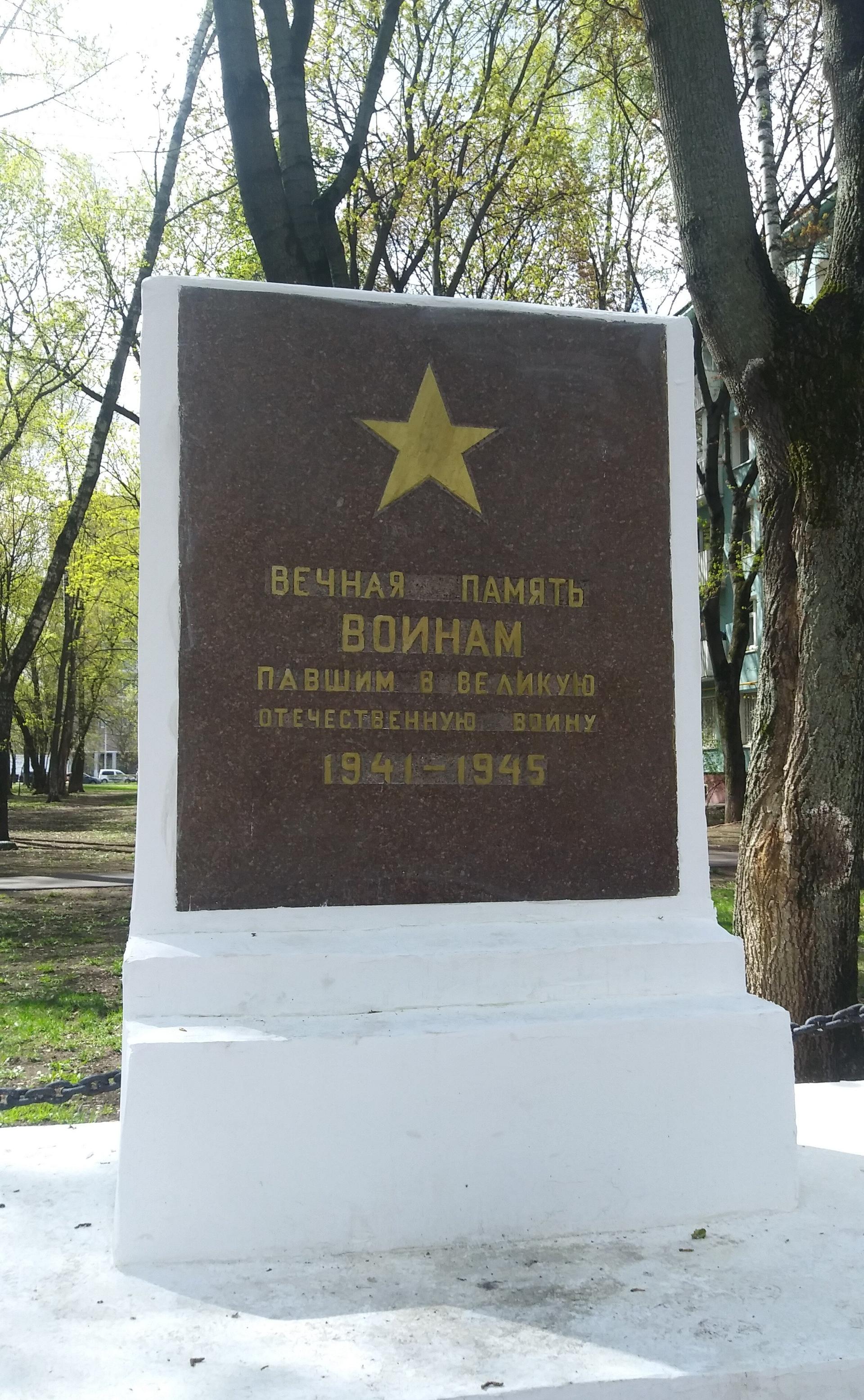 Памятник в виде стелы. С южной стороны прикреплена табличка из красного гранита, на которой выгравирована посвятительная надпись: «Вечная память воинам, павшим в Великую Отечественную войну 1941-1945 гг.». Над надписью изображена пятиконечная звезда.