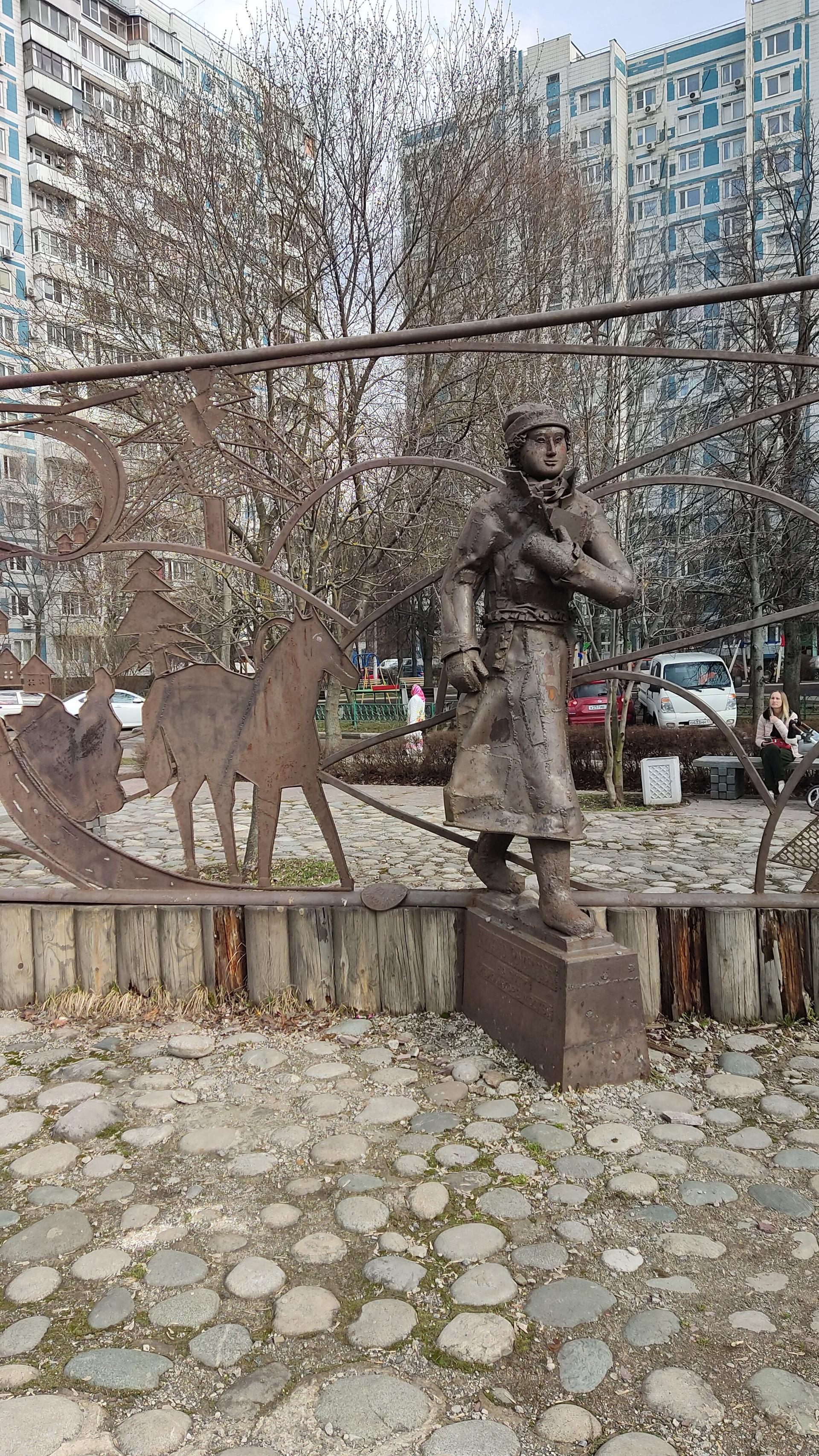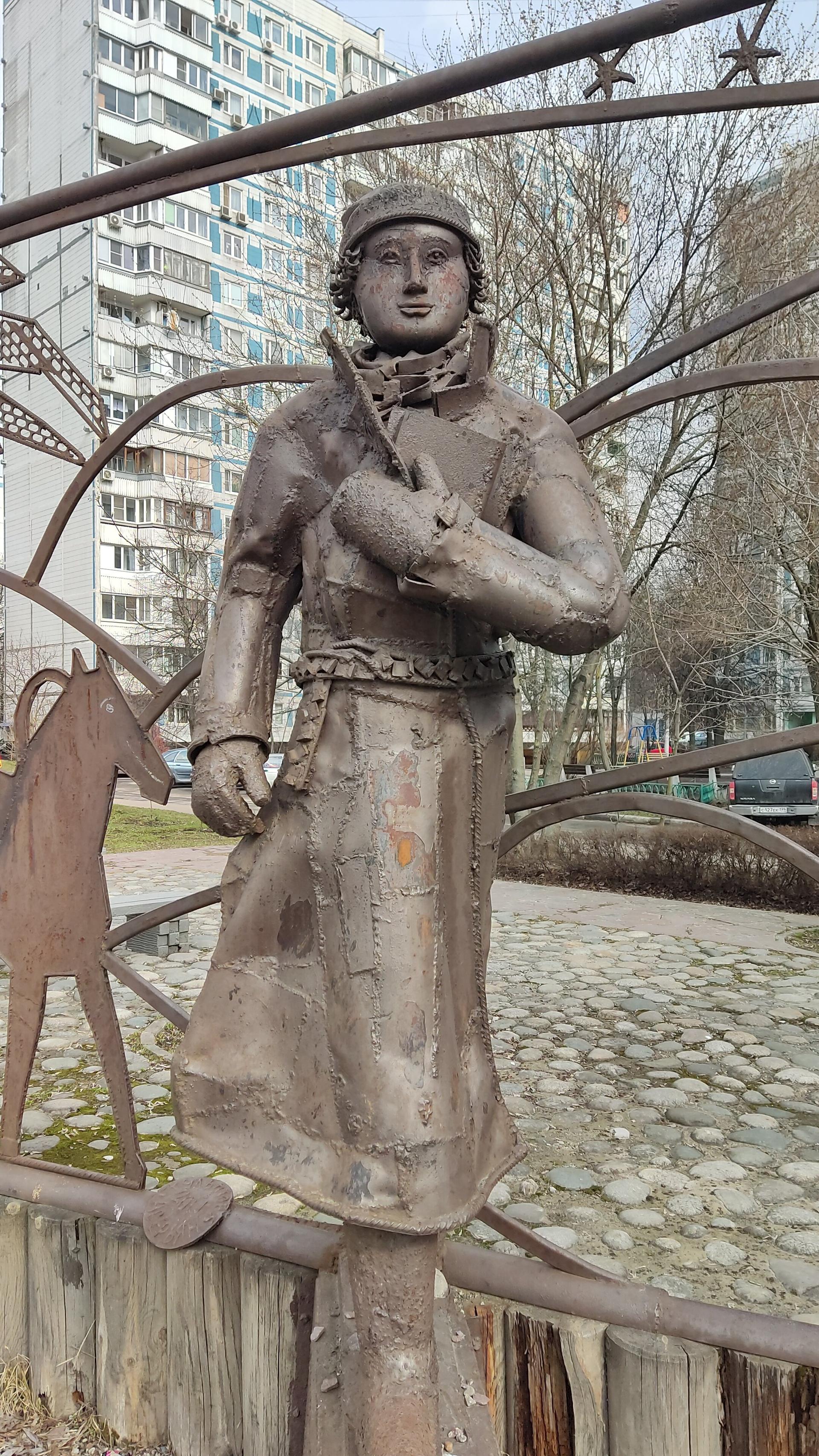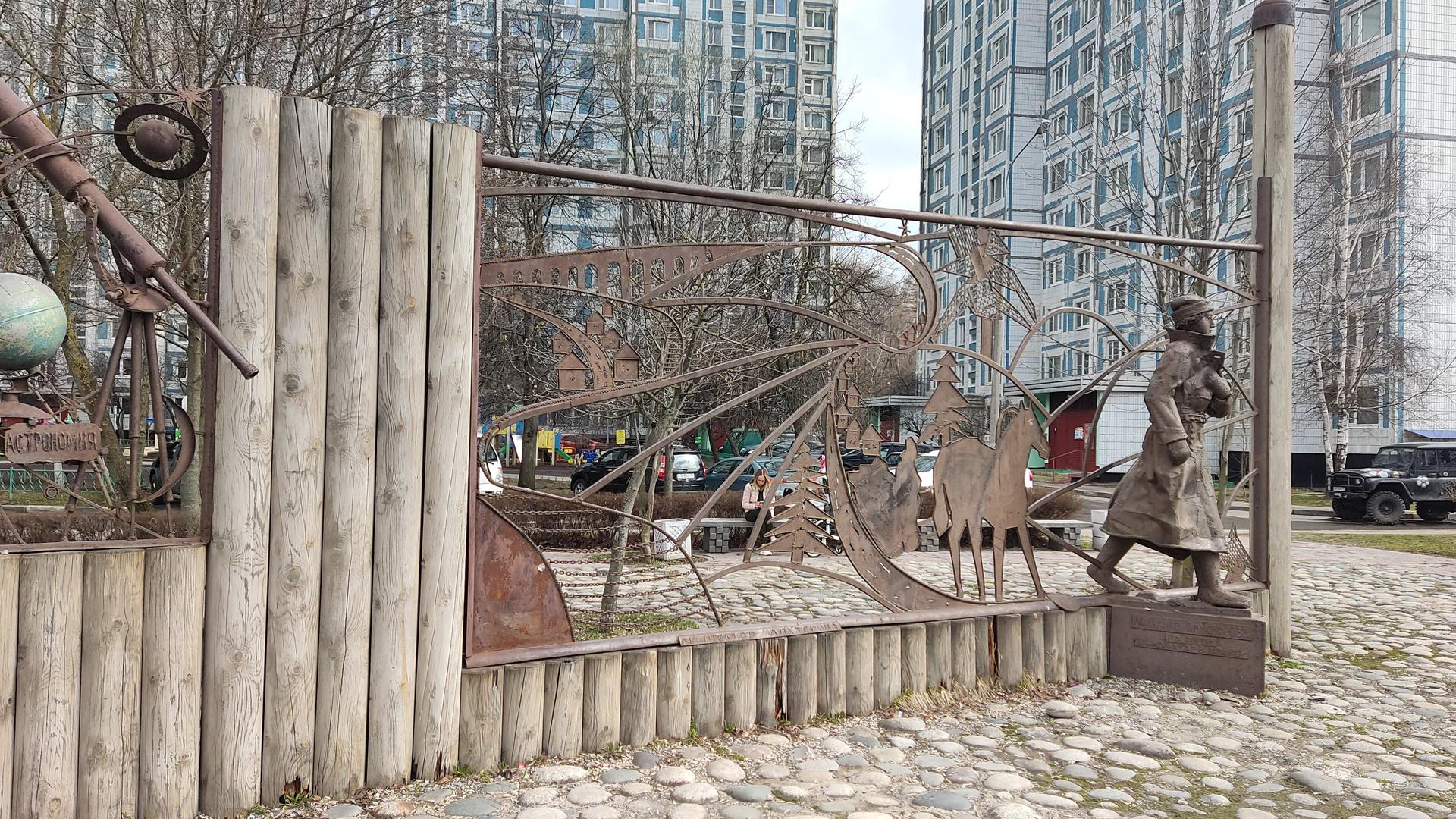 Скульптурная композиция установлена в преддверии празднования 300-летия со дня рождения М. В. Ломоносова. В 1730 г. по этой дороге Михайло Васильевич держал свой путь из Холмогор в Москву вместе с рыбным караваном.
