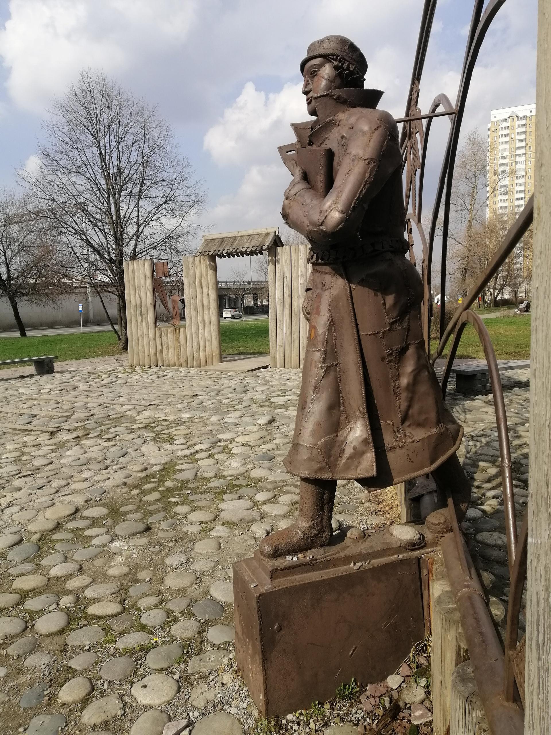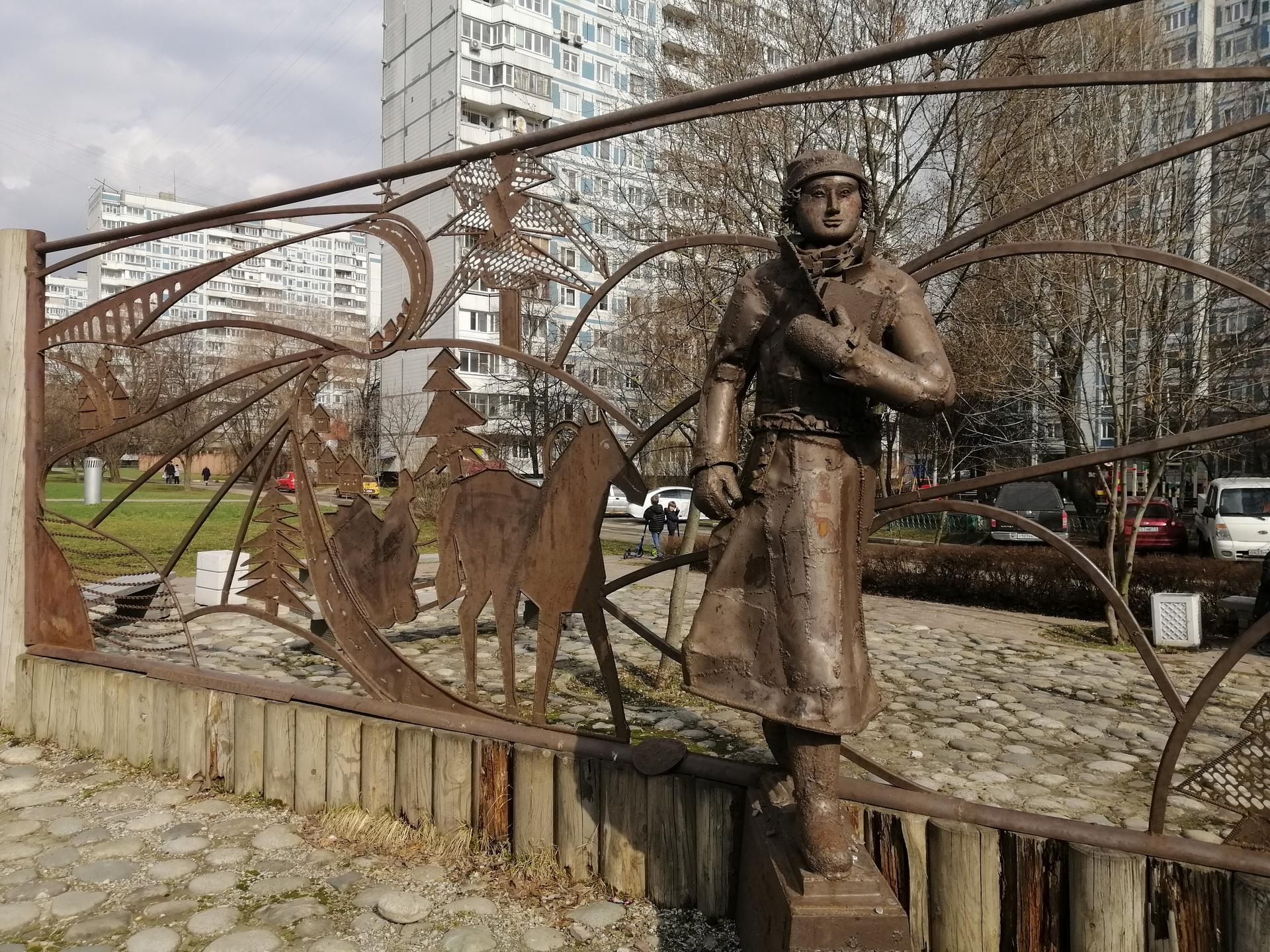 Скульптурная композиция установлена в преддверии празднования 300-летия со дня рождения М. В. Ломоносова. В 1730 г. по этой дороге Михайло Васильевич держал свой путь из Холмогор в Москву вместе с рыбным караваном.