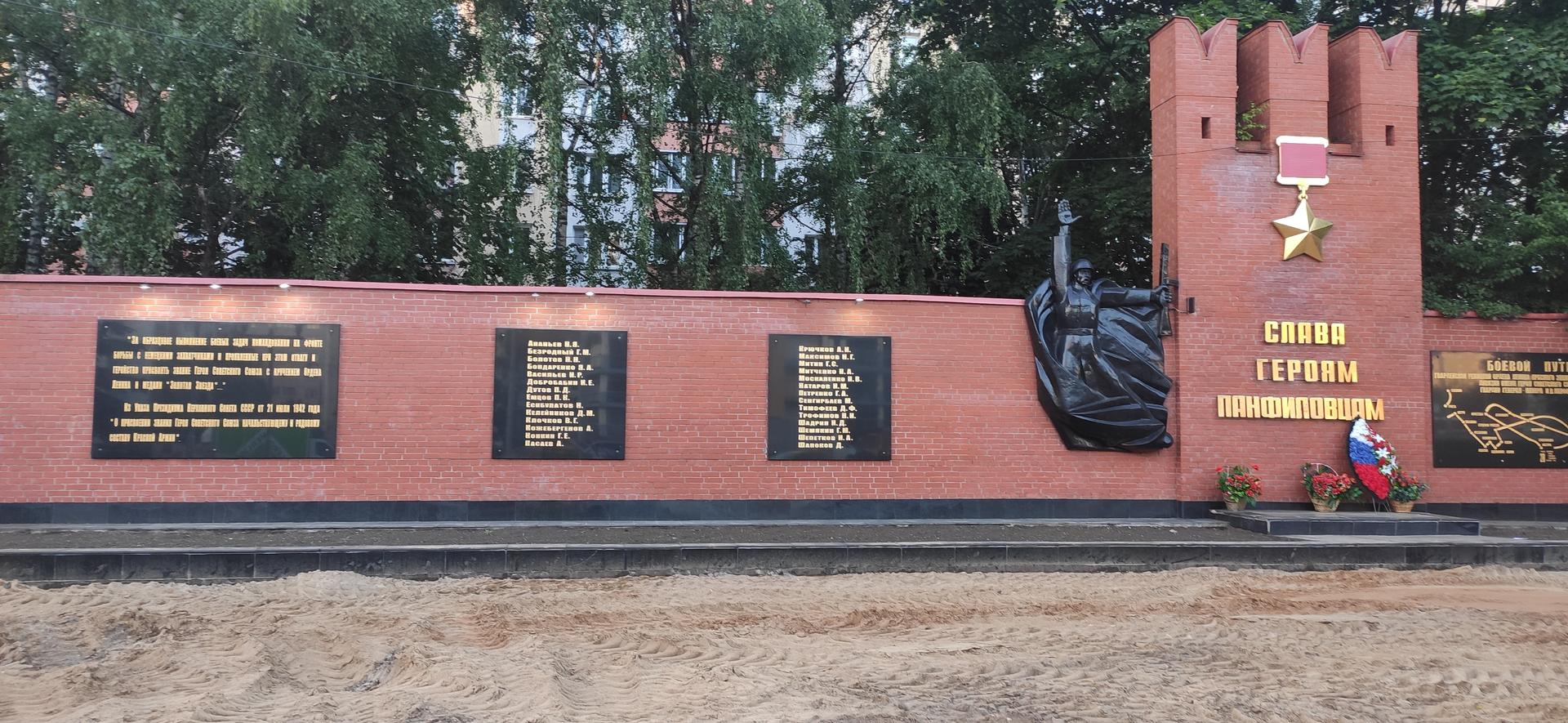 28 участникам боев у разъезда Дубосеково указом Президиума Верховного Совета СССР посмертно присвоено звание Героя Советского Союза их имена высечены на произведении монументально-декоративного искусства "Героям Панфиловцам", мемориал, 1975 г., кирпич". Фамилии в указе взяты из передовой статьи литсекретаря А.Ю.Кривицкого.