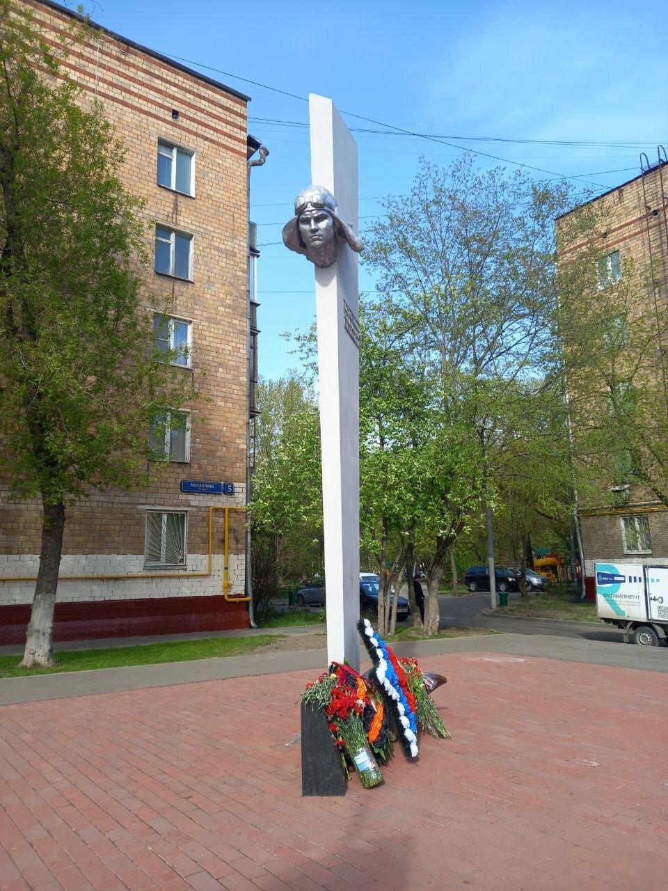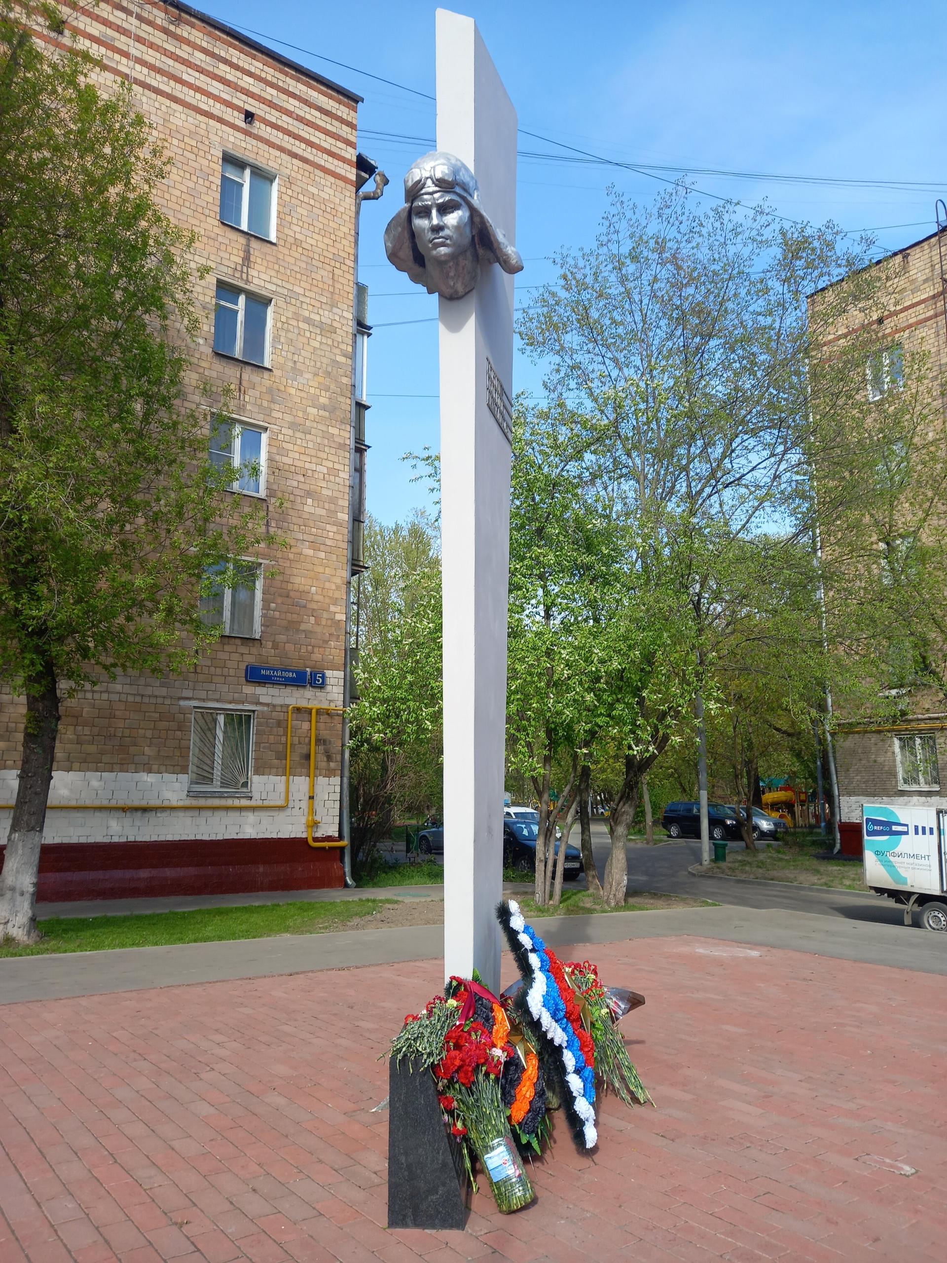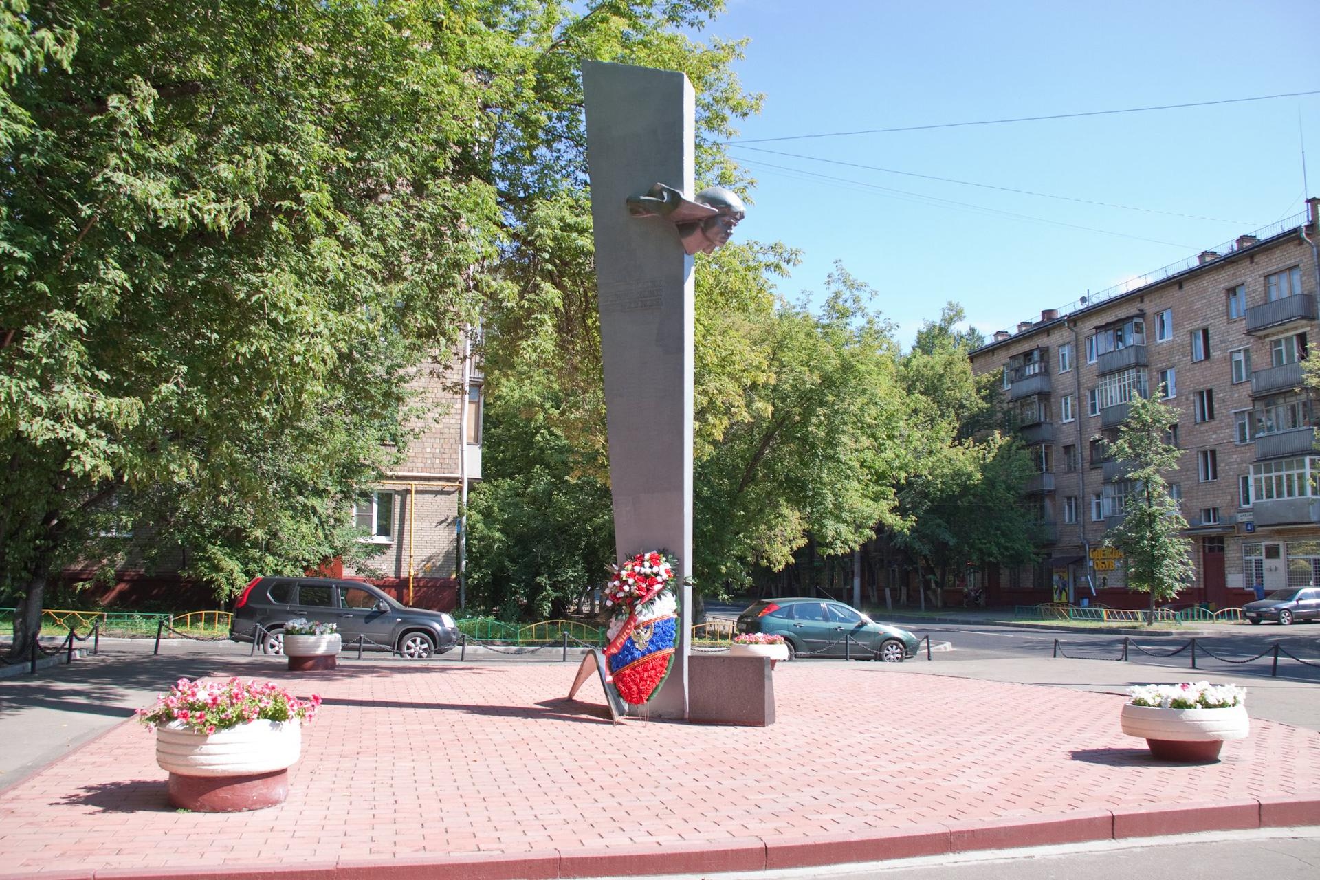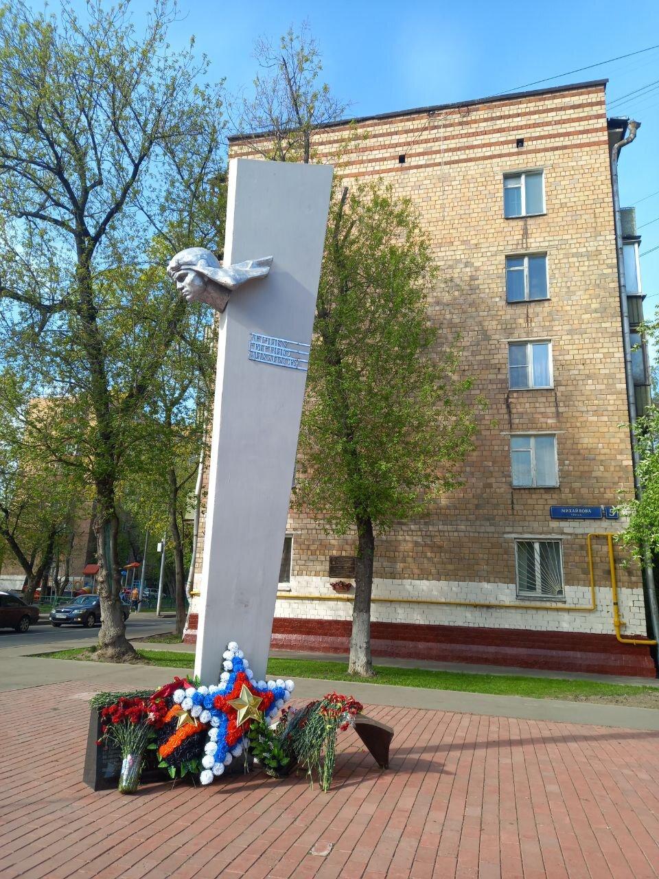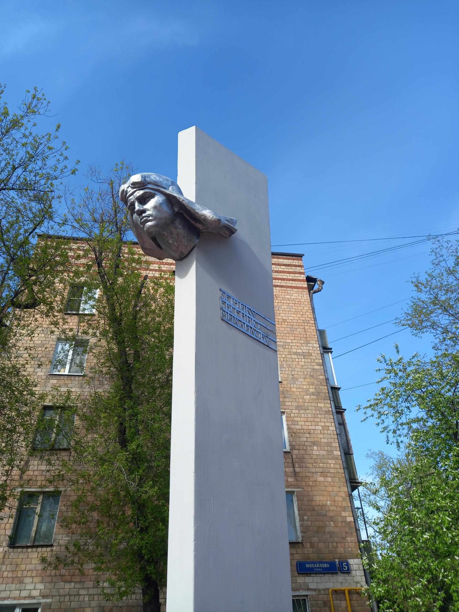 Памятник представляет собой стальную стелу, символизирующую крыло самолета. В верхней части установлена портретная голова Михайлова в летном шлеме. В создании памятника также принимали участие рабочие и инженеры предприятий района.