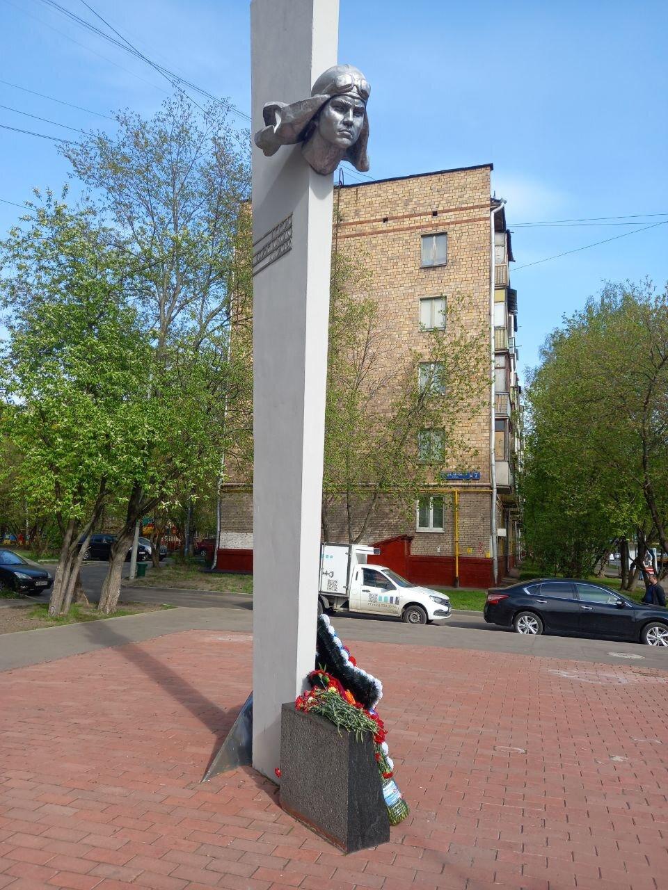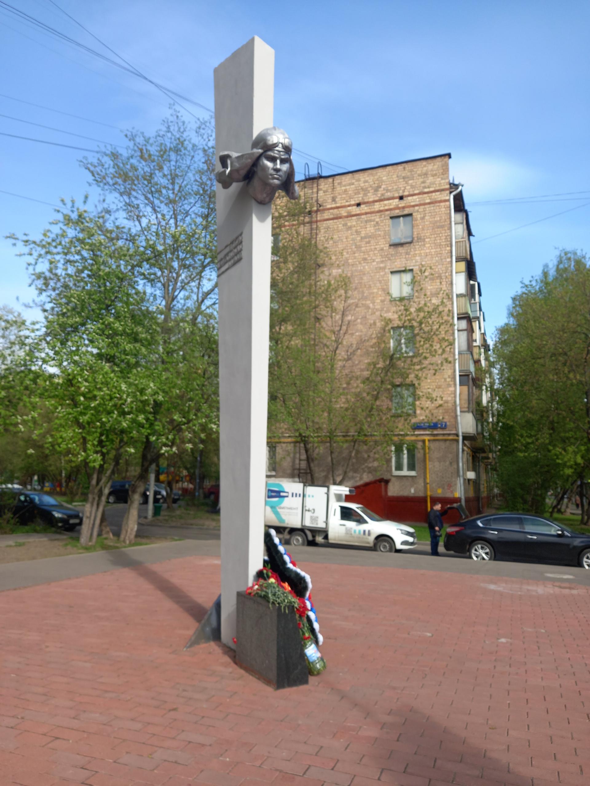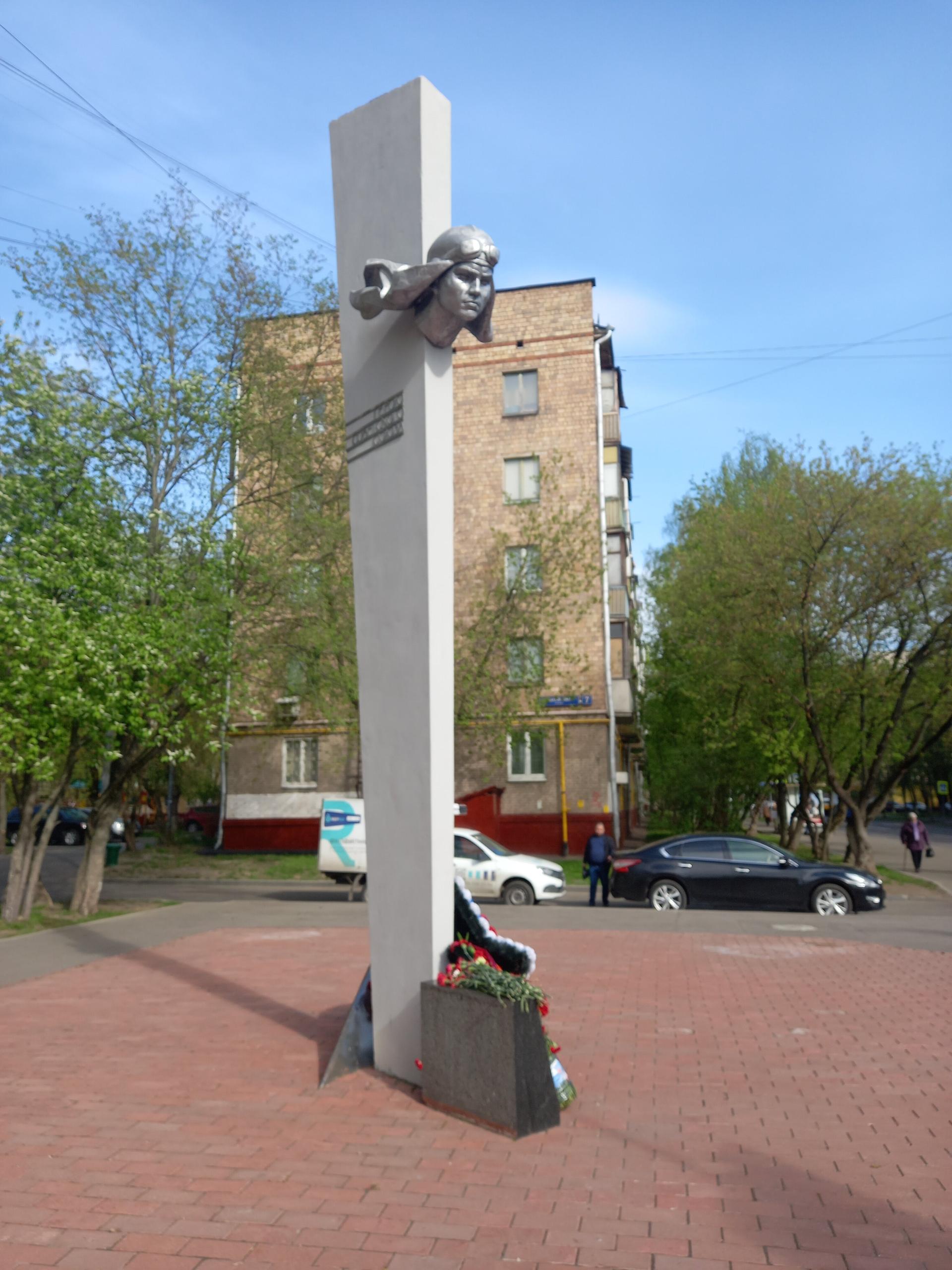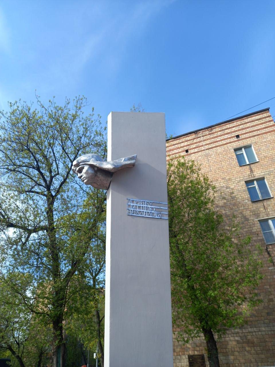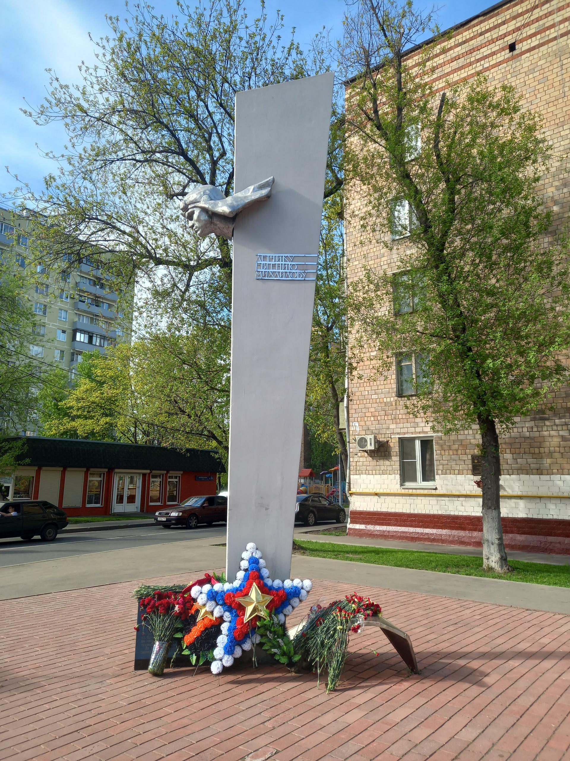 Памятник представляет собой стальную стелу, символизирующую крыло самолета. В верхней части установлена портретная голова Михайлова в летном шлеме. В создании памятника также принимали участие рабочие и инженеры предприятий района.
