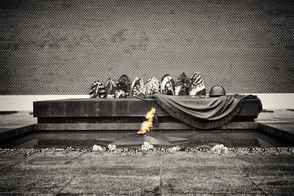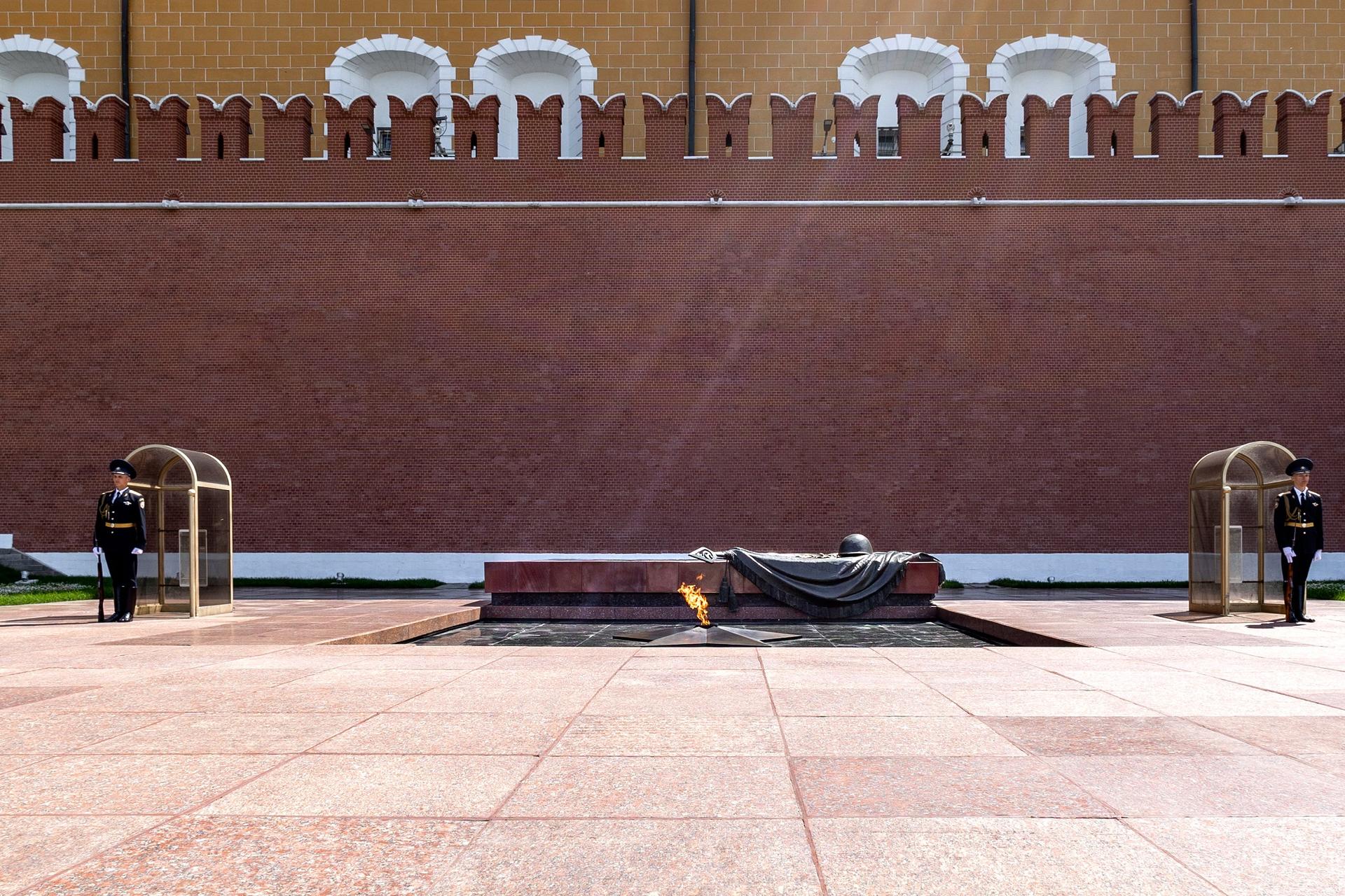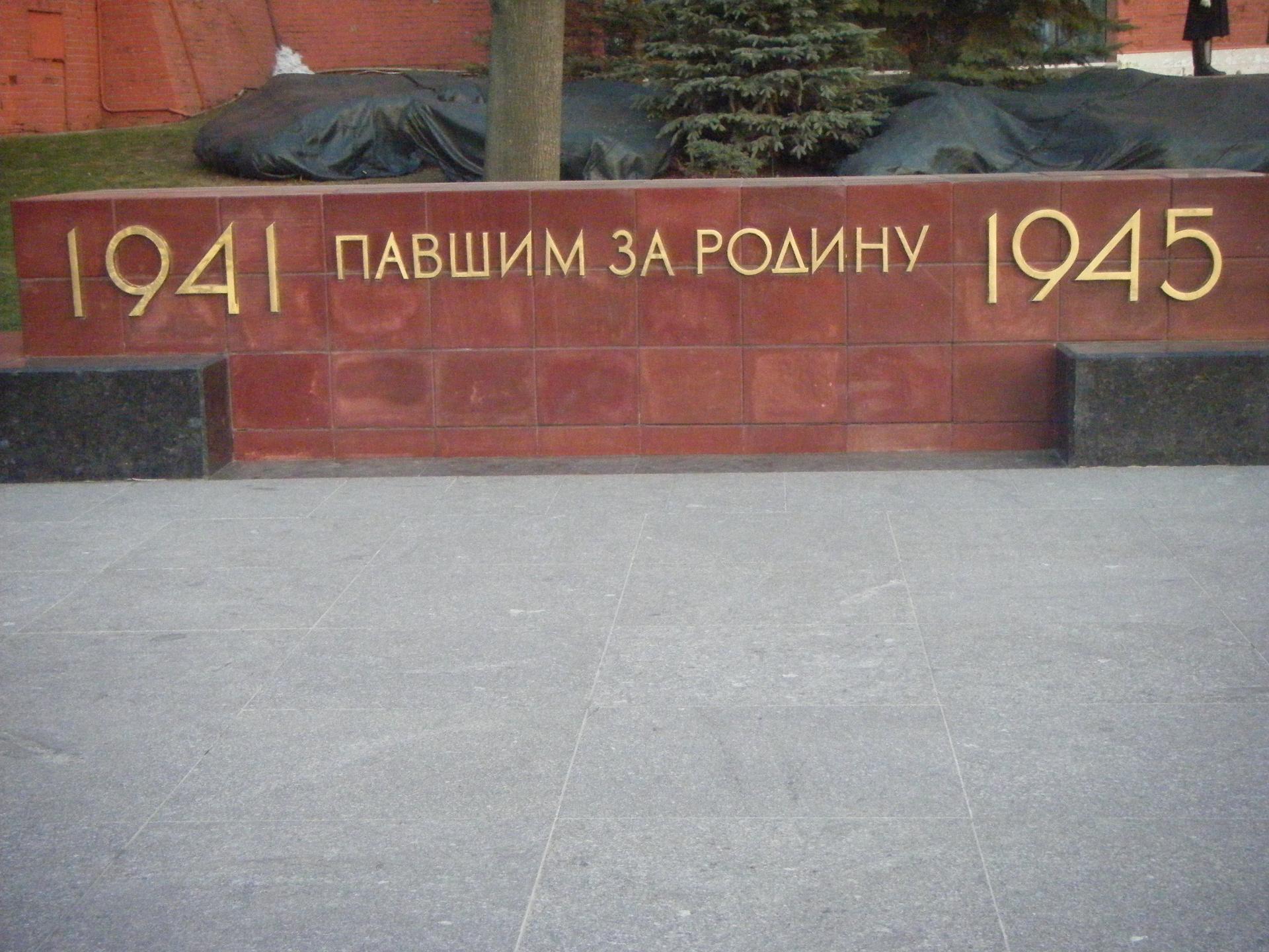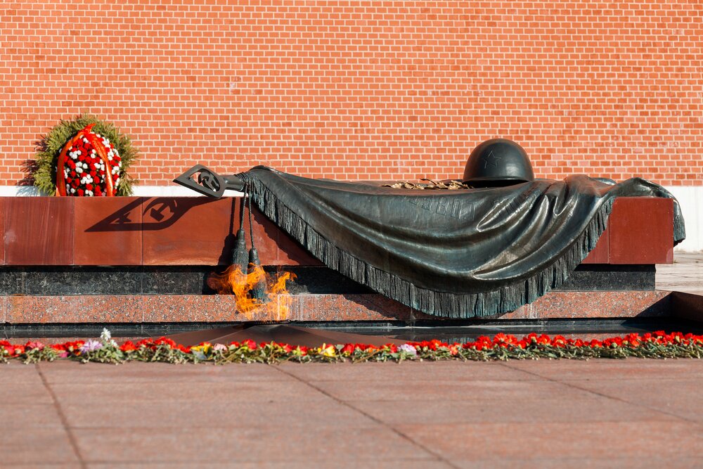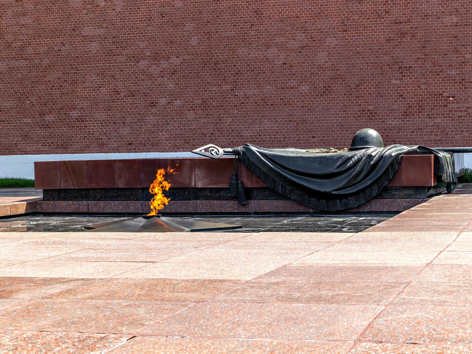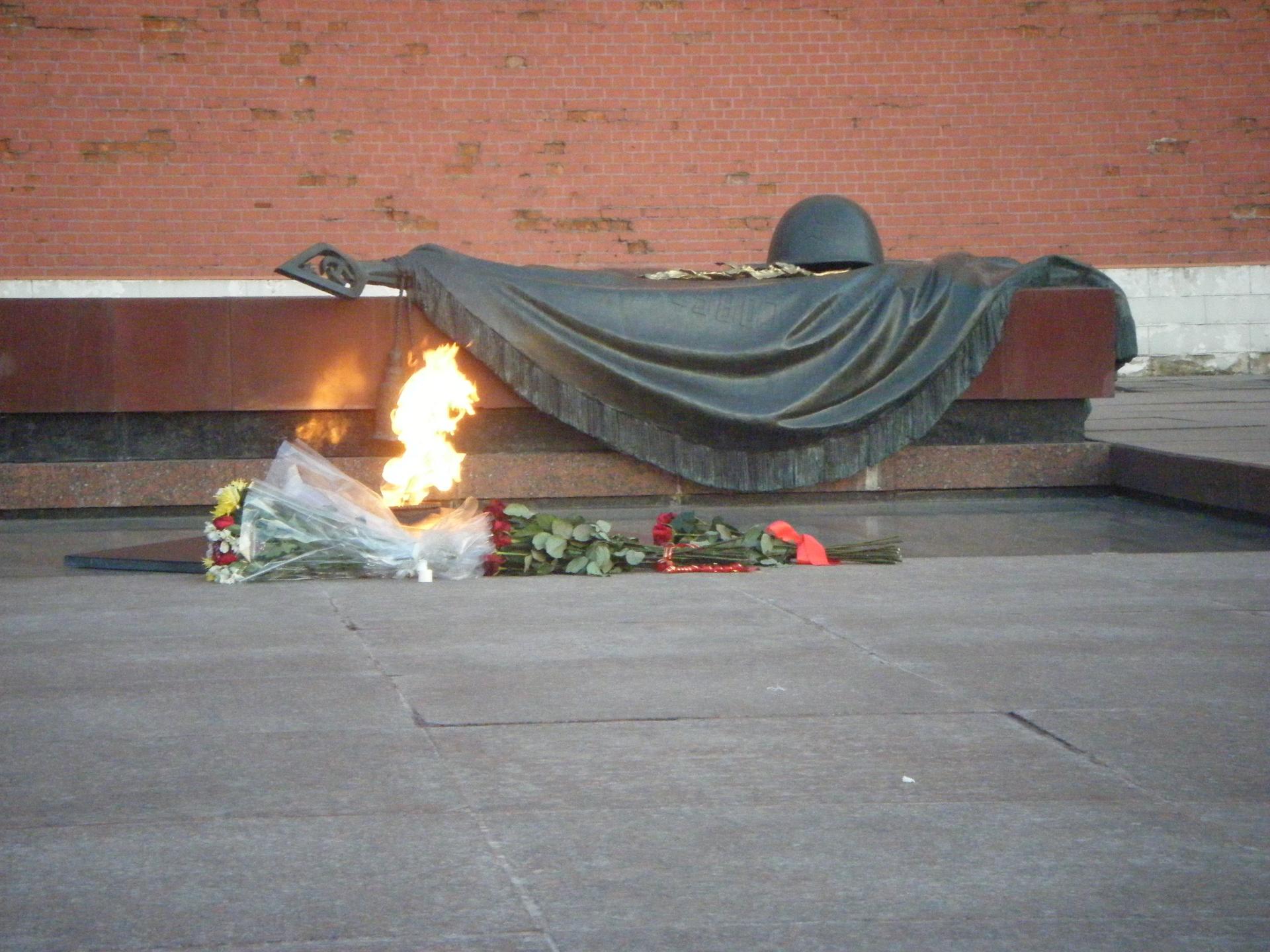 В центре мемориального ансамбля находится надгробная плита, на которой установлена бронзовая композиция: ниспадающий край знамени, поверх него солдатская каска и лавровая ветвь. В центре мемориала расположена ниша с надписью: «Имя твое неизвестно, подвиг твой бессмертен». В центре ниши — пятиконечная звезда — Вечный огонь. В 2009 г. была начата реставрация памятника. Из-за начинавшихся работ памятный огонь был перенесен на Поклонную гору и возвращен на прежнее место в 2010 г. Реставрационные работы проводились в 2010 г.
