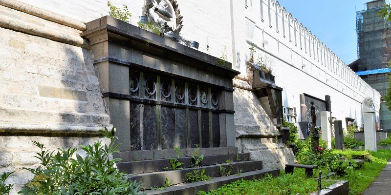 Монумент представляет собой стену с колумбарными нишами, встроенную в основание Предтеченской (Ирининской) башни Новодевичьего монастыря.