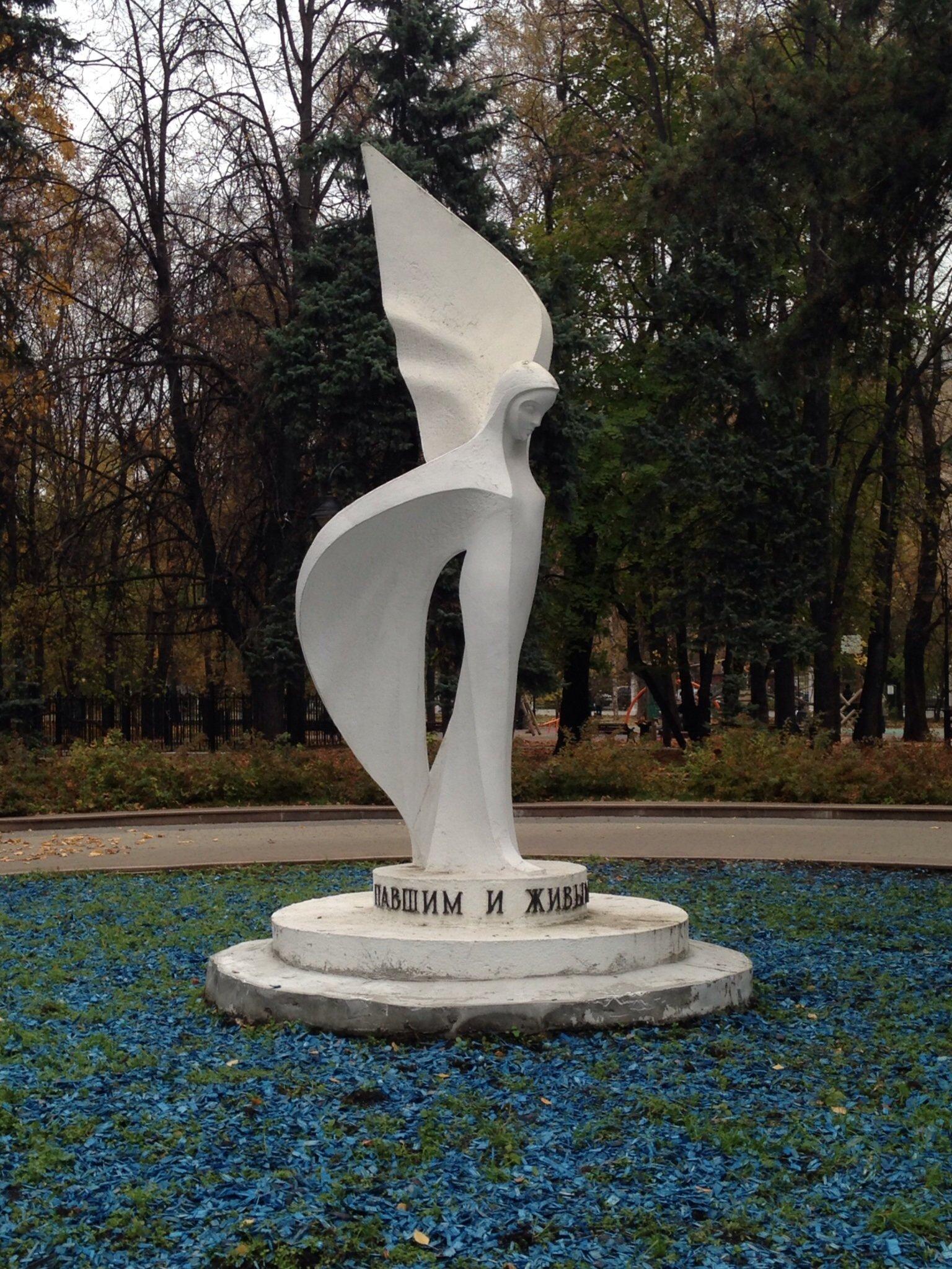По другим источникам она называется - скульптурная композиция "Павшим и живым. 1941-1945", открыта 7 мая 1995 года. Скульптор А.Е. Нейстат представил Нику - античную богиню победы (женщину-птицу) - в позе скорби: со склоненной головой и одним опущенным крылом. Скульптура выполнена из белого гранита.