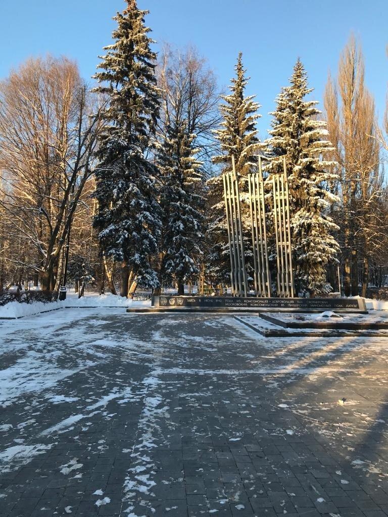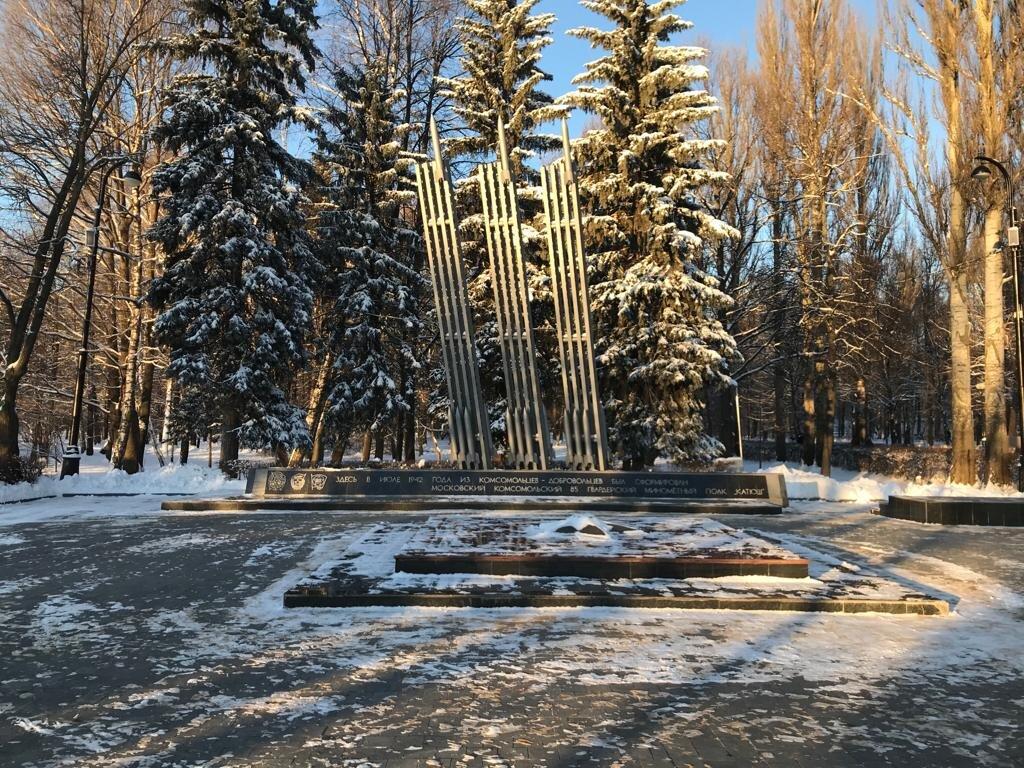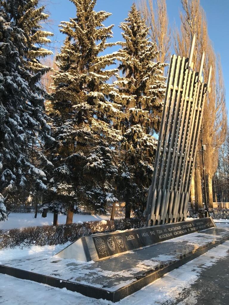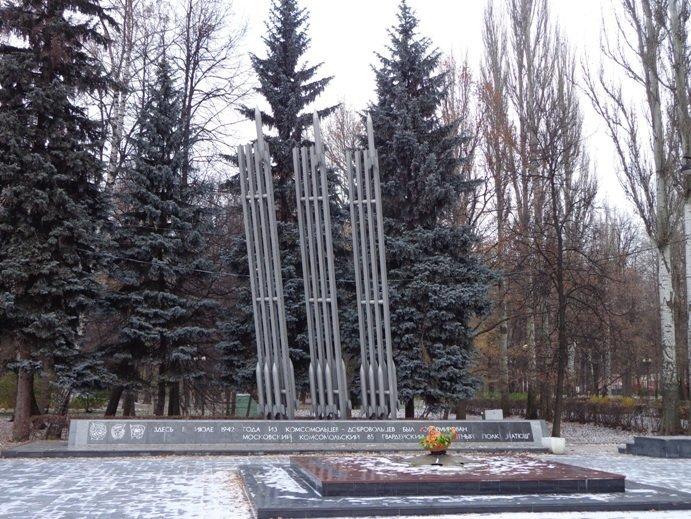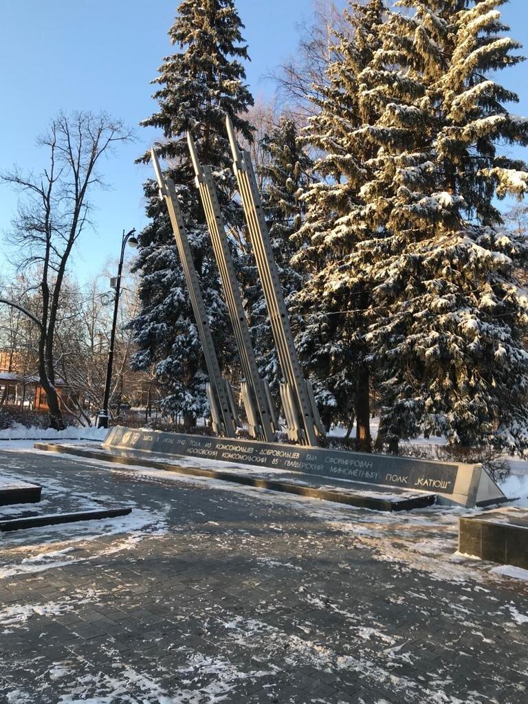 Памятник представляет собой пусковую установку в виде трех устремленных небо семиметровых рельсовых направляющих, к которым прикреплены по четыре модели реактивных снарядов. Рельсовые направляющие и модели снарядов окрашены в серебряный цвет. На лицевой стороне постамента надпись прорезными буквами: «Здесь в июле 1942 г. из комсомольцев-добровольцев был сформирован Московский комсомольский 85-й гвардейский минометный полк „Катюш“».