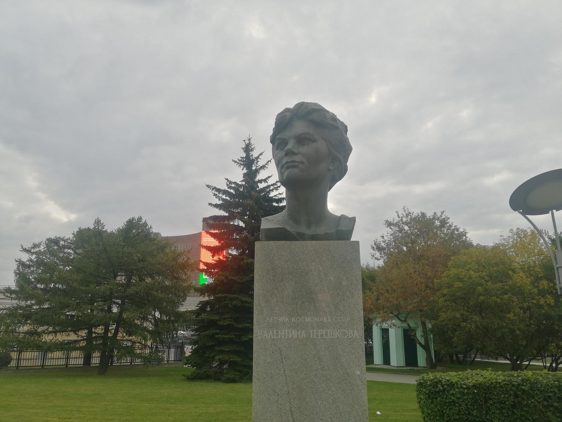 Памятная надпись на постаменте: «Летчик-космонавт СССР Валентина Терешкова».