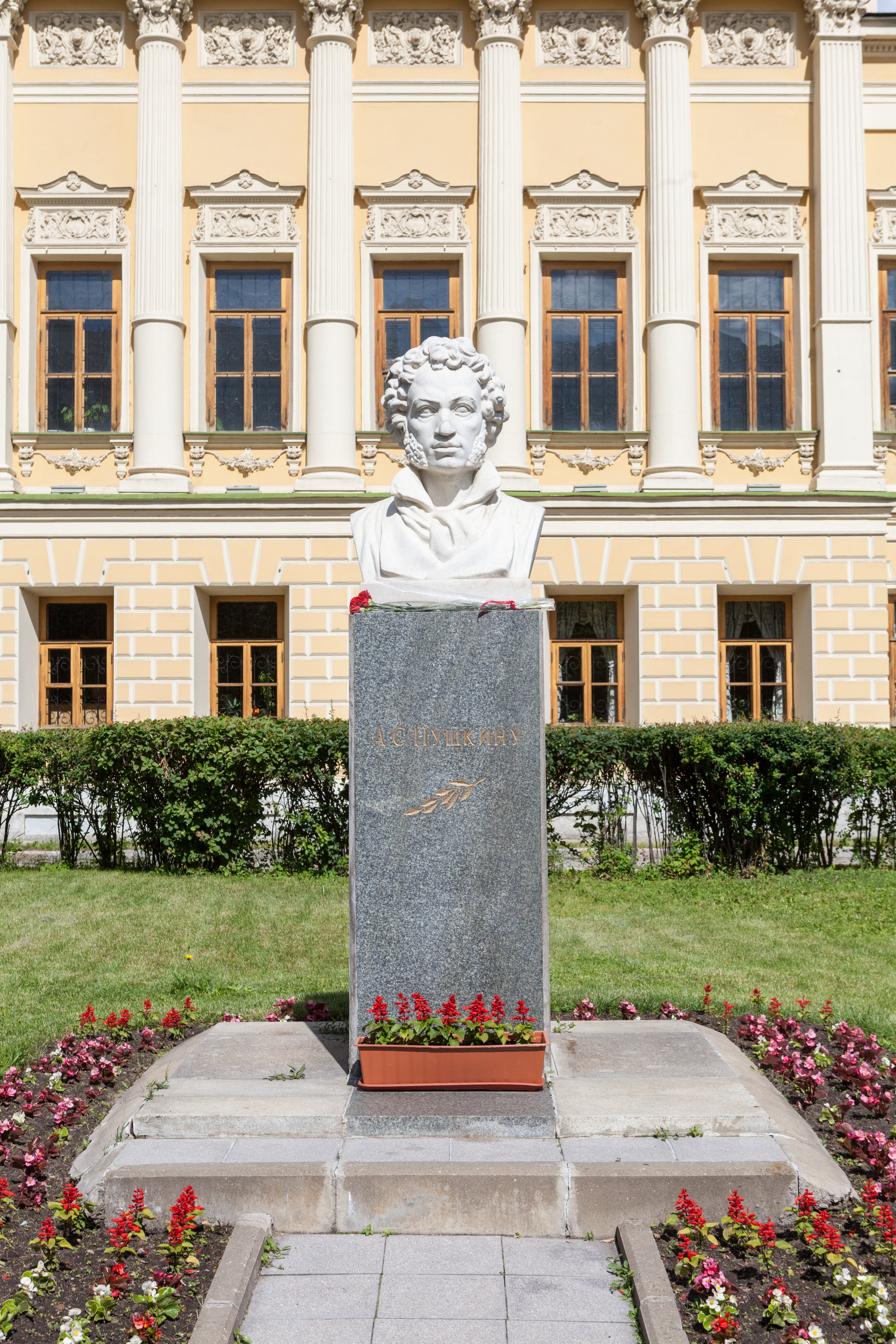 «А. С. Пушкину», также имеется лавровая ветвь, а сверху нанесен красочный слой золотого цвета. Ремонтные работы на объекте проводились в 2013 г.