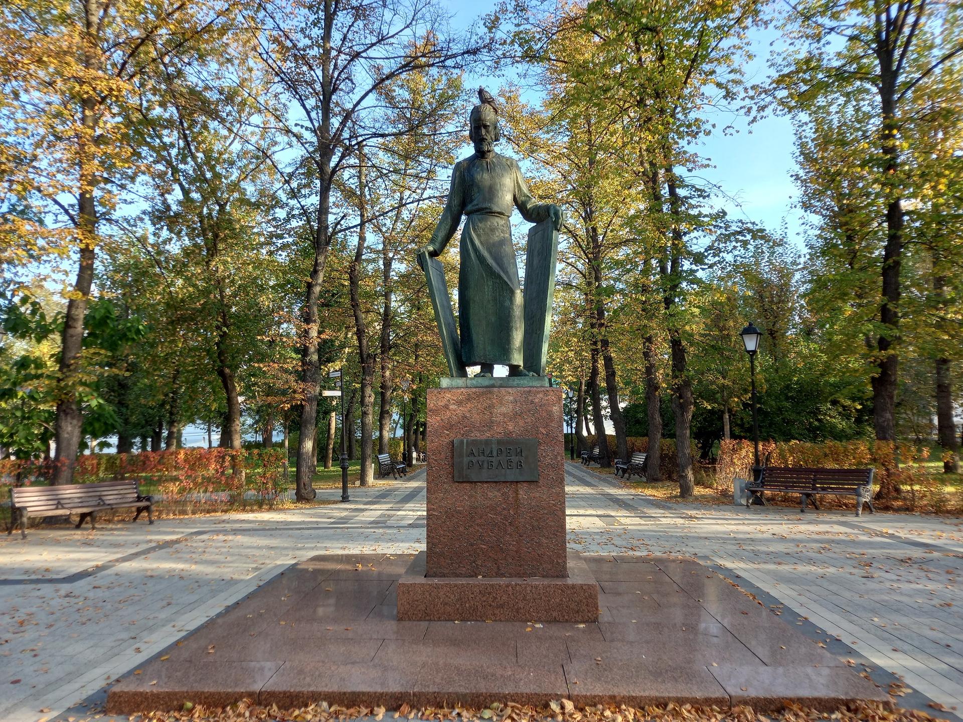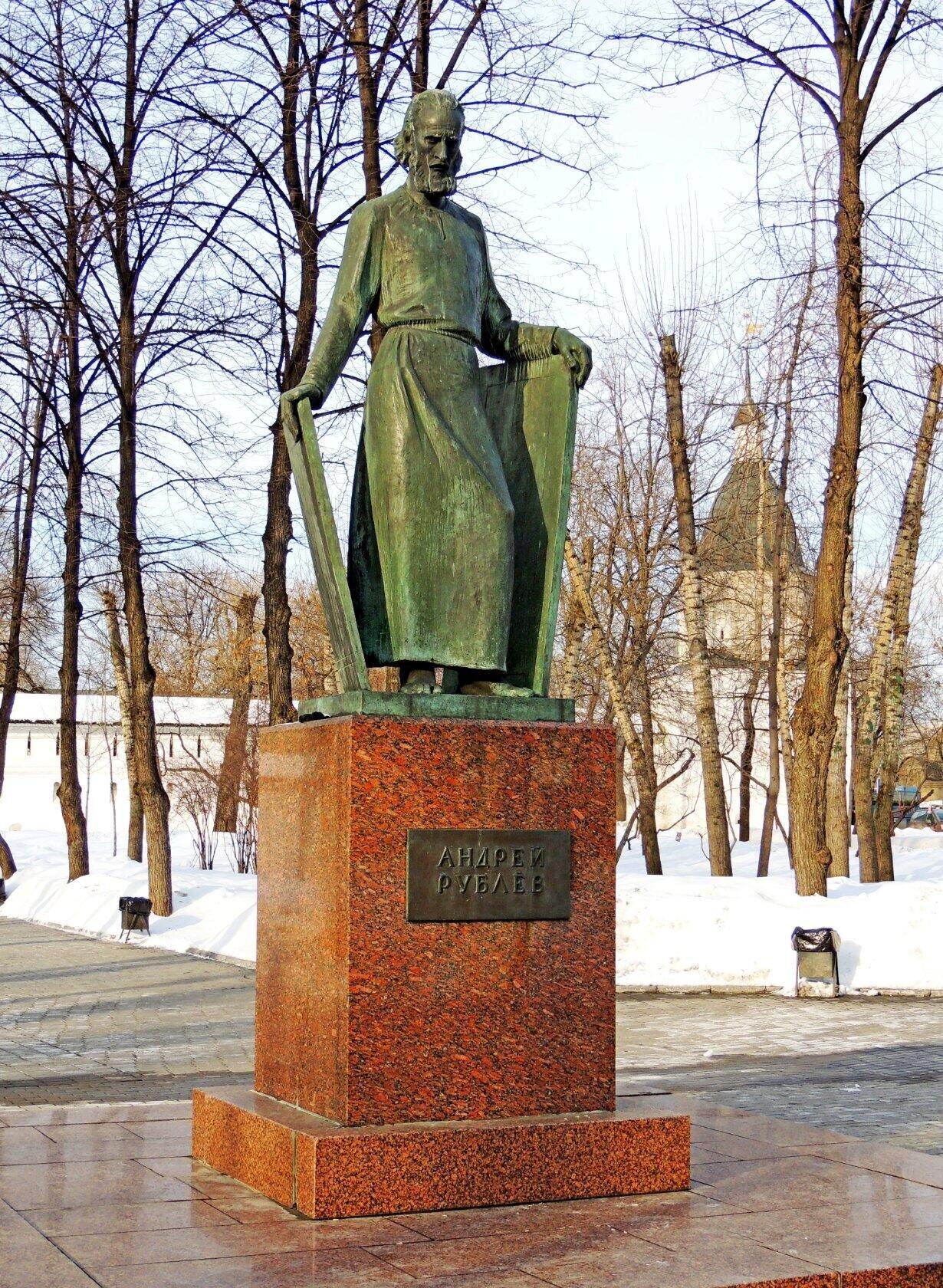 После преобразования последнего в «Центральный Государственный Музей древнерусской культуры и искусства имени Андрея Рублева» в сквере перед восстановленным монастырем установили и открыли памятник Андрею Рублеву. По прошествии трех лет русский иконописец был причислен РПЦ к лику святых.