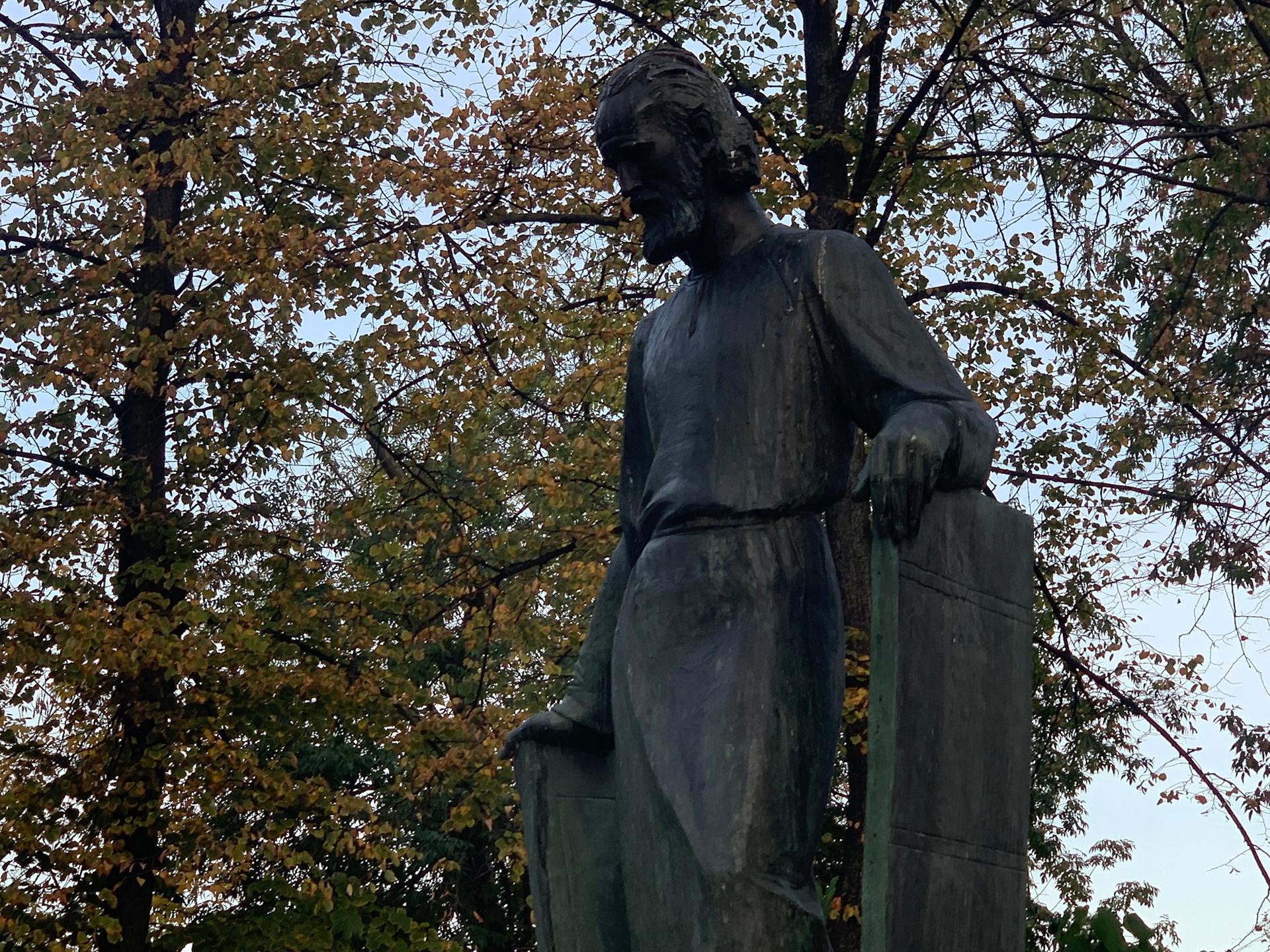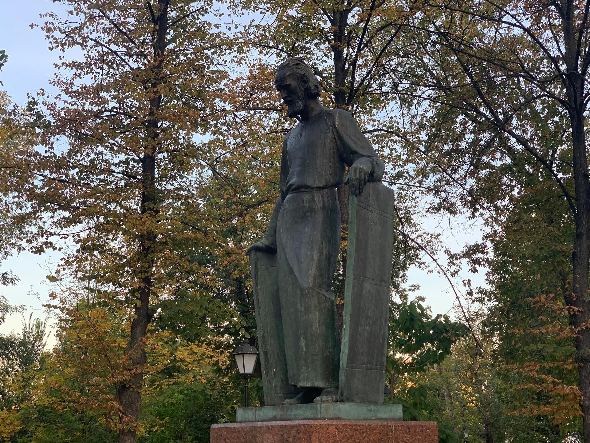 Выбор места для установки монумента был неслучаен, так как мастер большую часть своей жизни трудился в Андроников монастыре, и здесь же был предан земле после смерти (эта дата, год рождения, а также точное место захоронения до сих пор неизвестны).