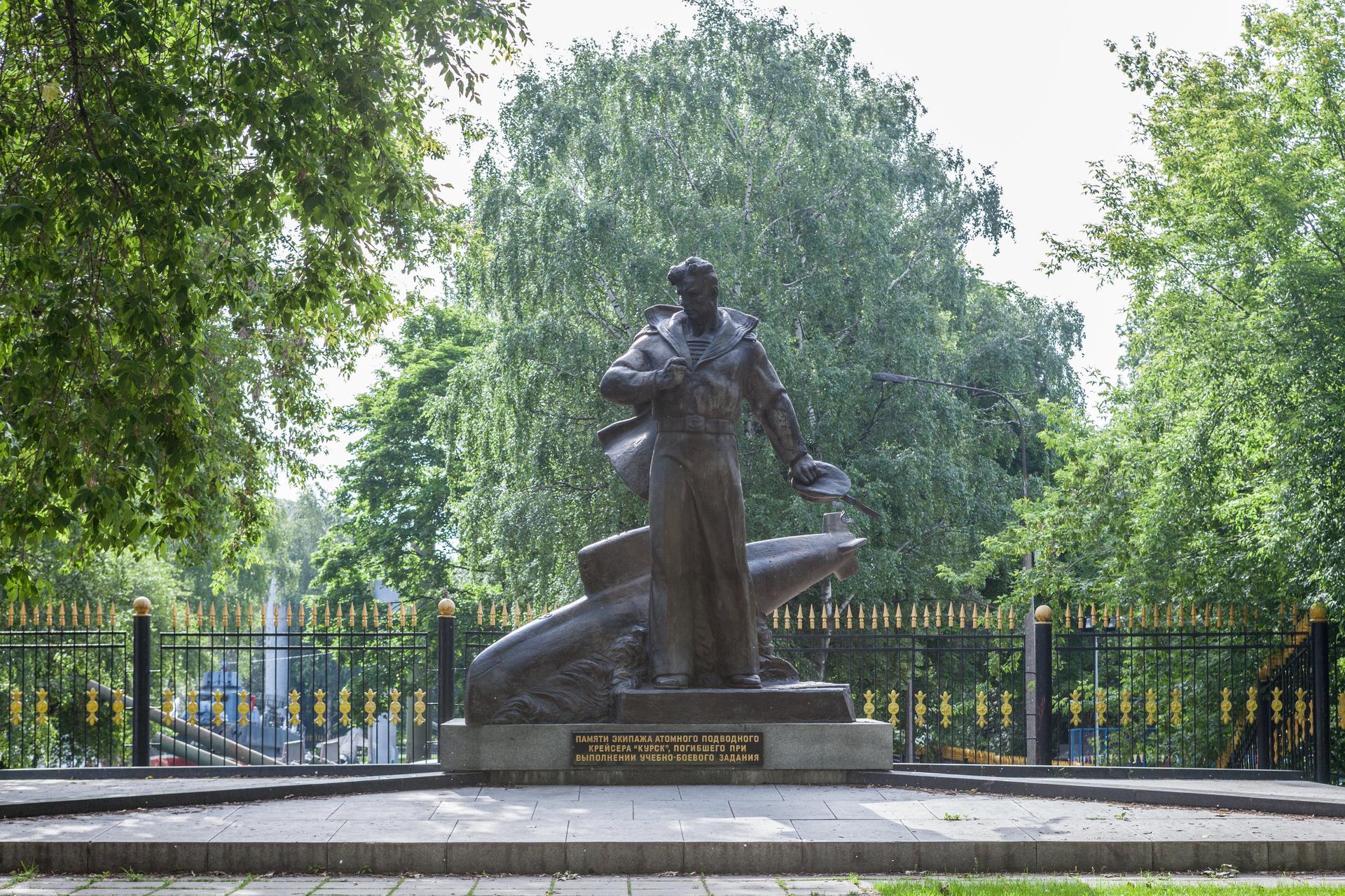 Памятник был открыт 12 августа 2002 года, в день второй годовщины гибели корабля. На постаменте надпись "Памяти экипажа атомного подводного крейсера "Курск", погибшего при выполнении учебно-боевого задания".