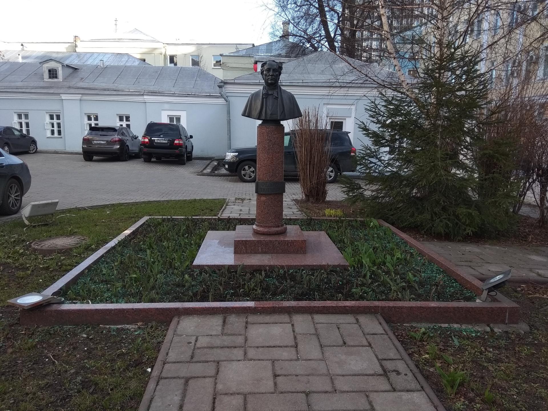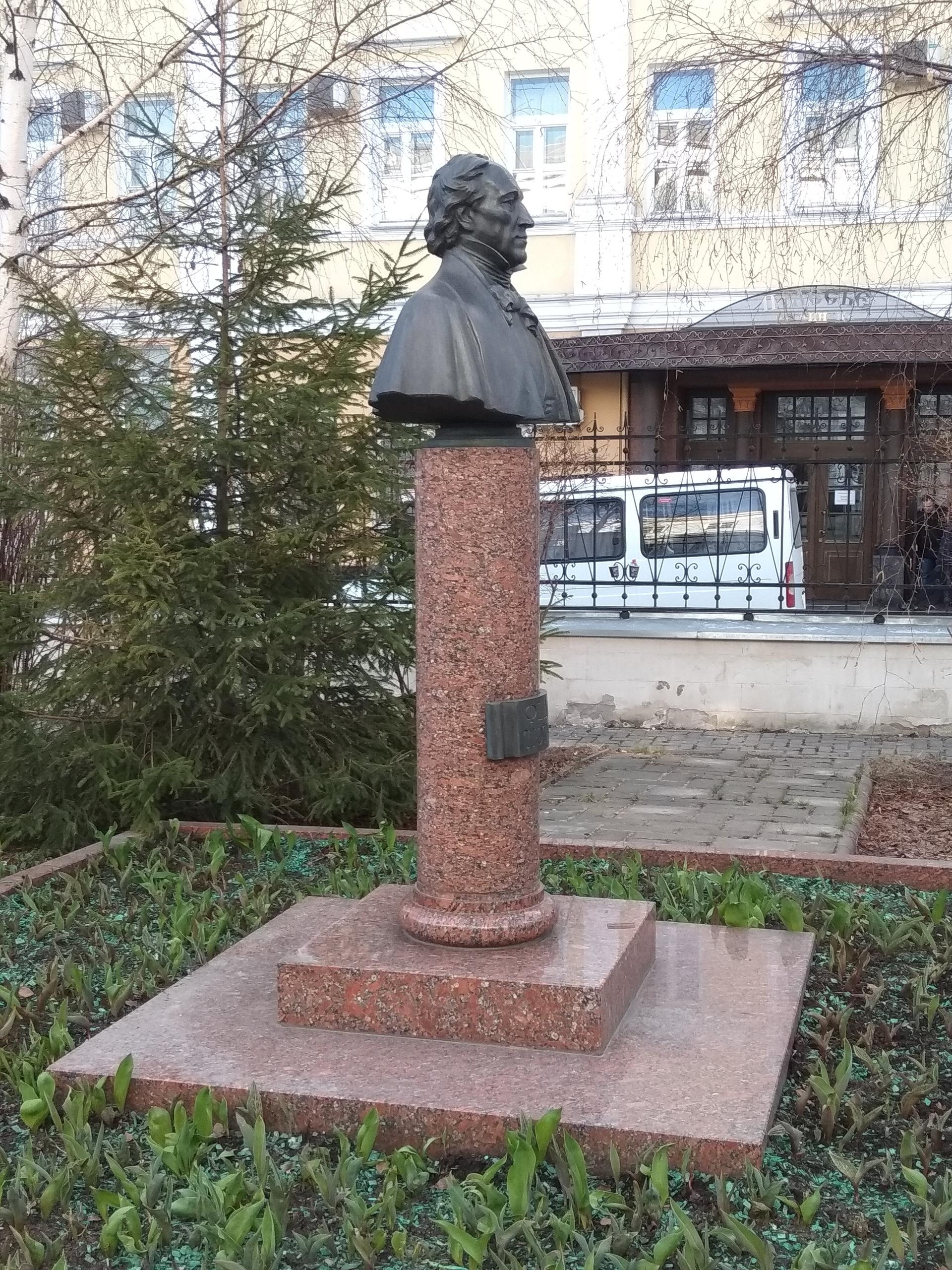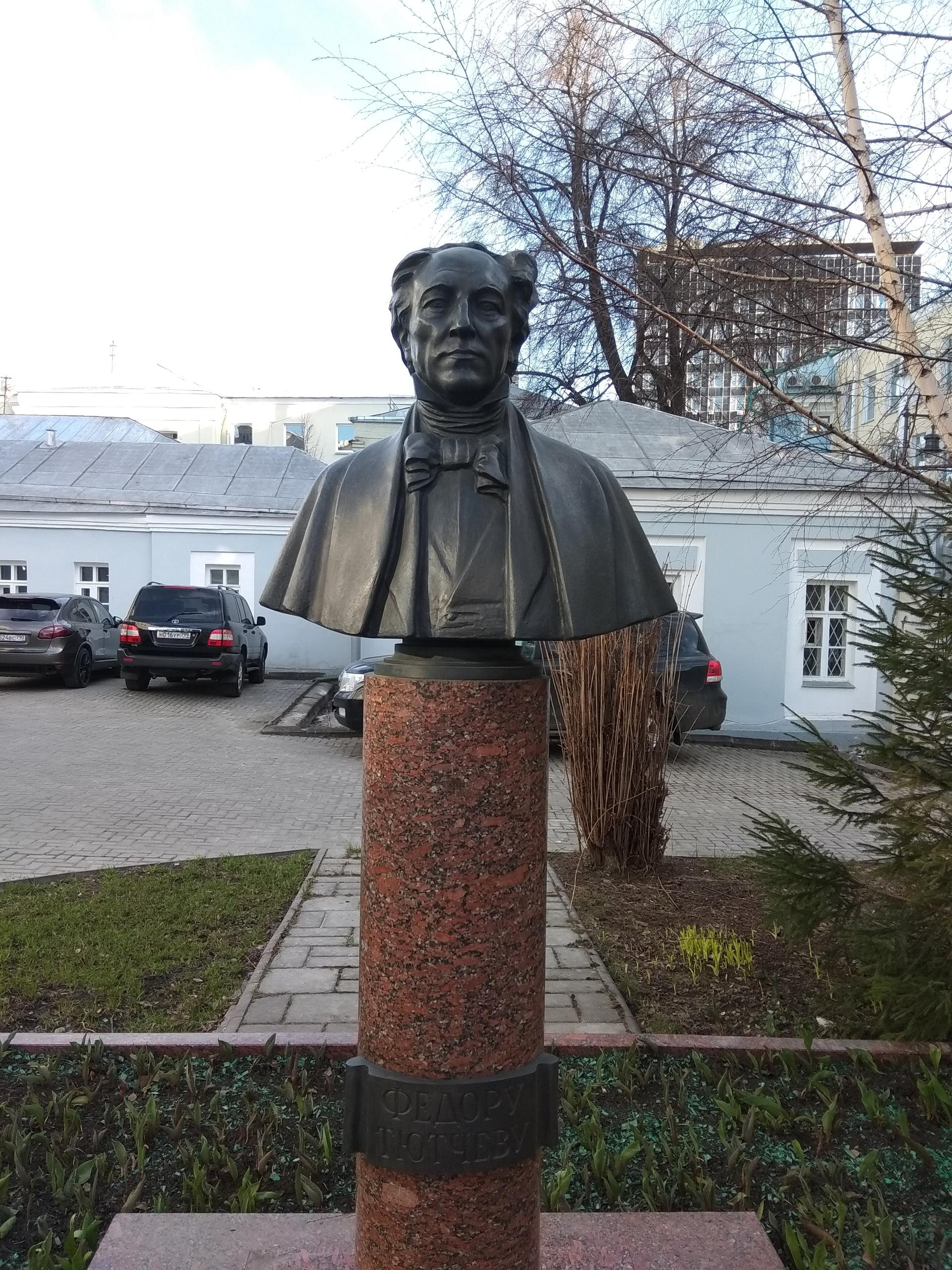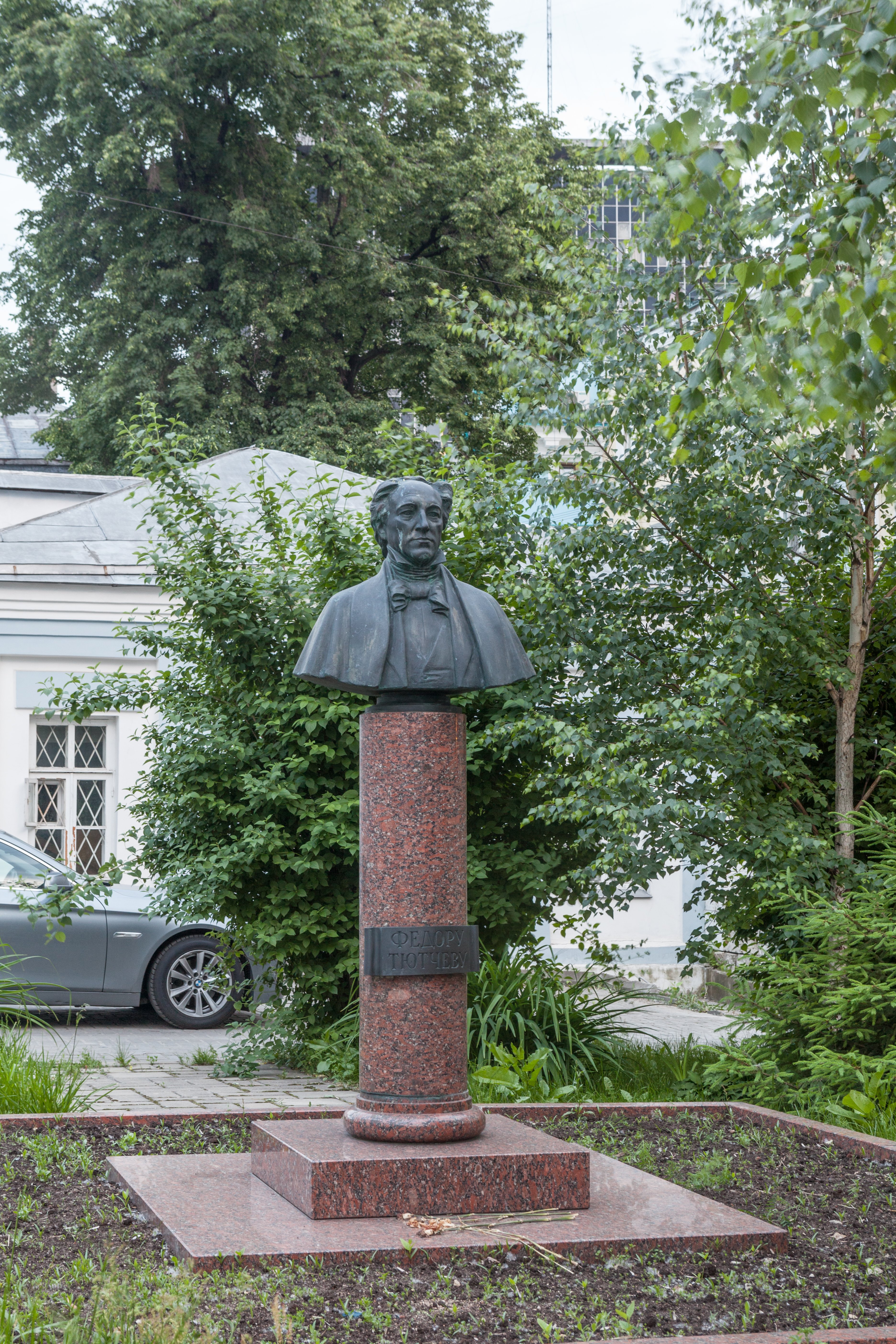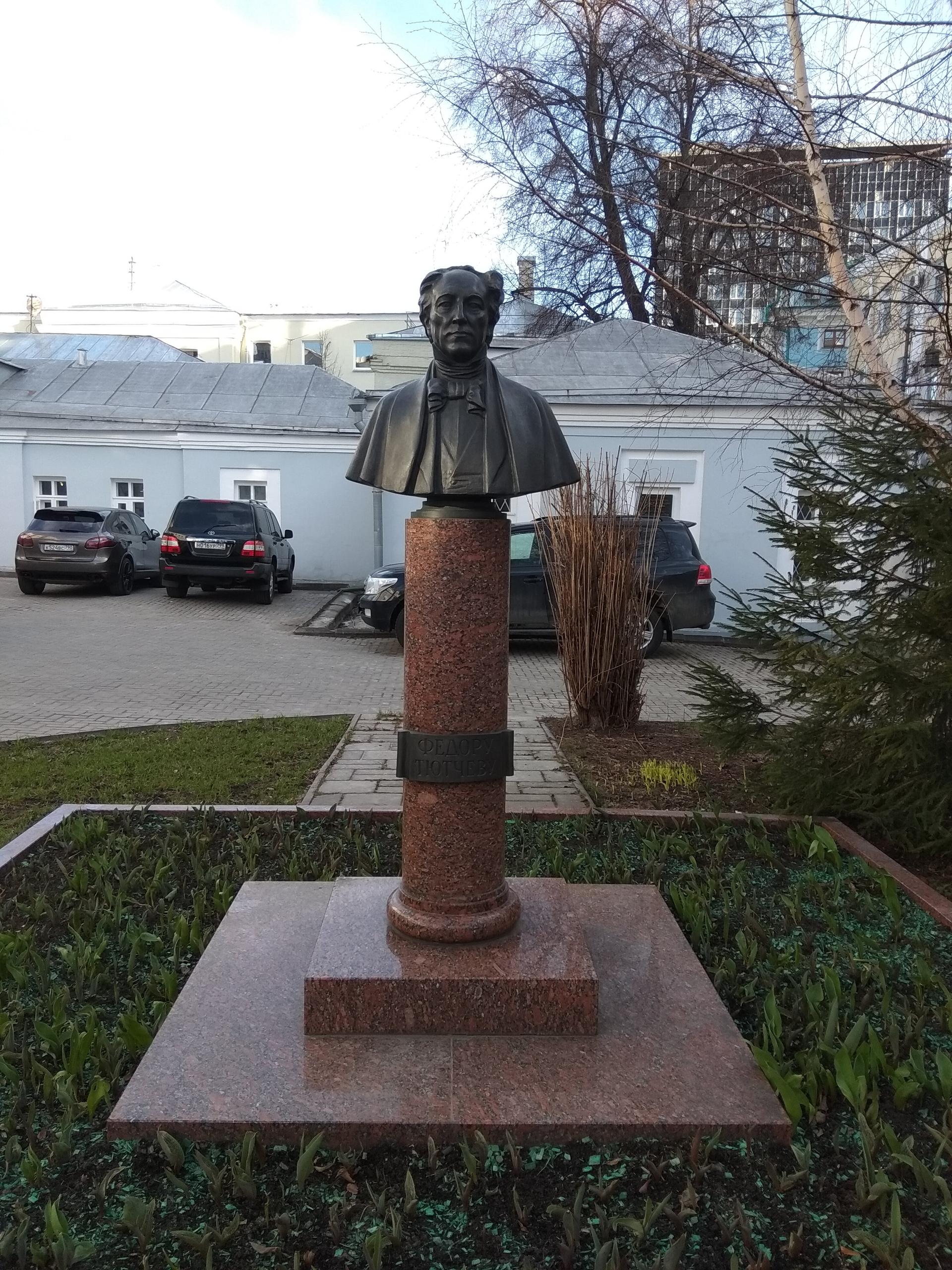Бронзовый бюст поэта установлен на гранитной колонне с квадратным основанием в усадьбе Тютчевых, где прошли детство и юность Федора Ивановича. В нижней части колонны закреплен бронзовый картуш с посвятительной надписью: «Федору Тютчеву». Надпись со стороны восточного фасада колоны: «Авторы: скульптор Иванов Ю. Ф. Архитектор Степанов Е. В.».