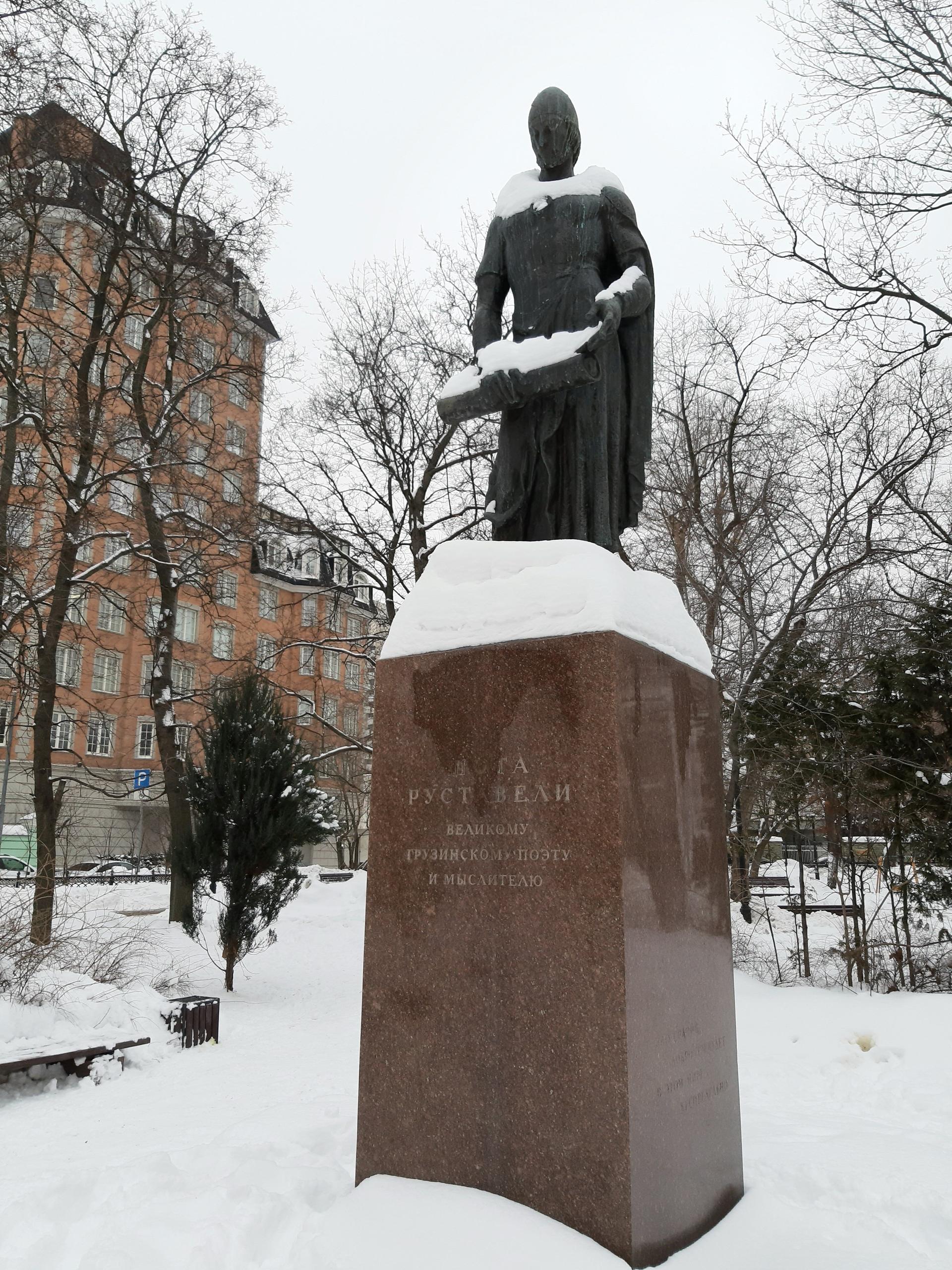 Открытие памятника состоялось в год 800-летия со дня рождения поэта. Бронзовая скульптура установлена на постаменте из красного полированного гранита, на южном фасаде которого выполнена надпись: «Шота Руставели — великому грузинскому поэту и мыслителю». На боковых гранях постамента помещены строки из поэмы «Витязь в тигровой шкуре». Последние ремонтные работы на объекте проводились в 2013 г.