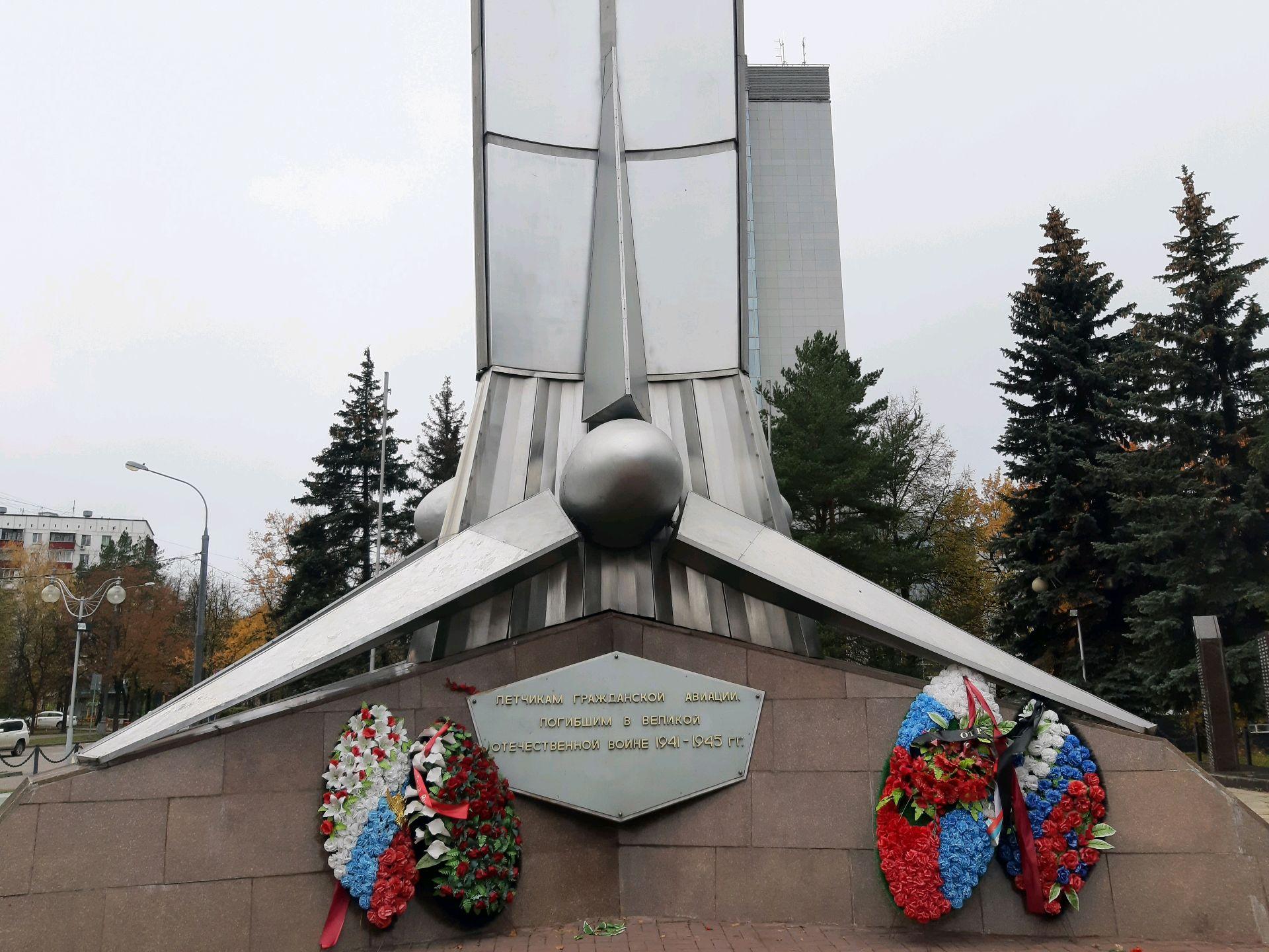 Памятник летчикам гражданской авиации, погибшим в годы Великой Отечественной войны 1941—1945 гг., установлен по инициативе Совета ветеранов 10-й Гвардейской авиатранспортной дивизии Гражданского Воздушного Флота. 10-я Гвардейская АТД ГВФ базировалась во Внуково в годы войны. Торжественная закладка Памятника состоялась 9 мая 1975 г., открытие Памятника — 9 мая 1980 г.