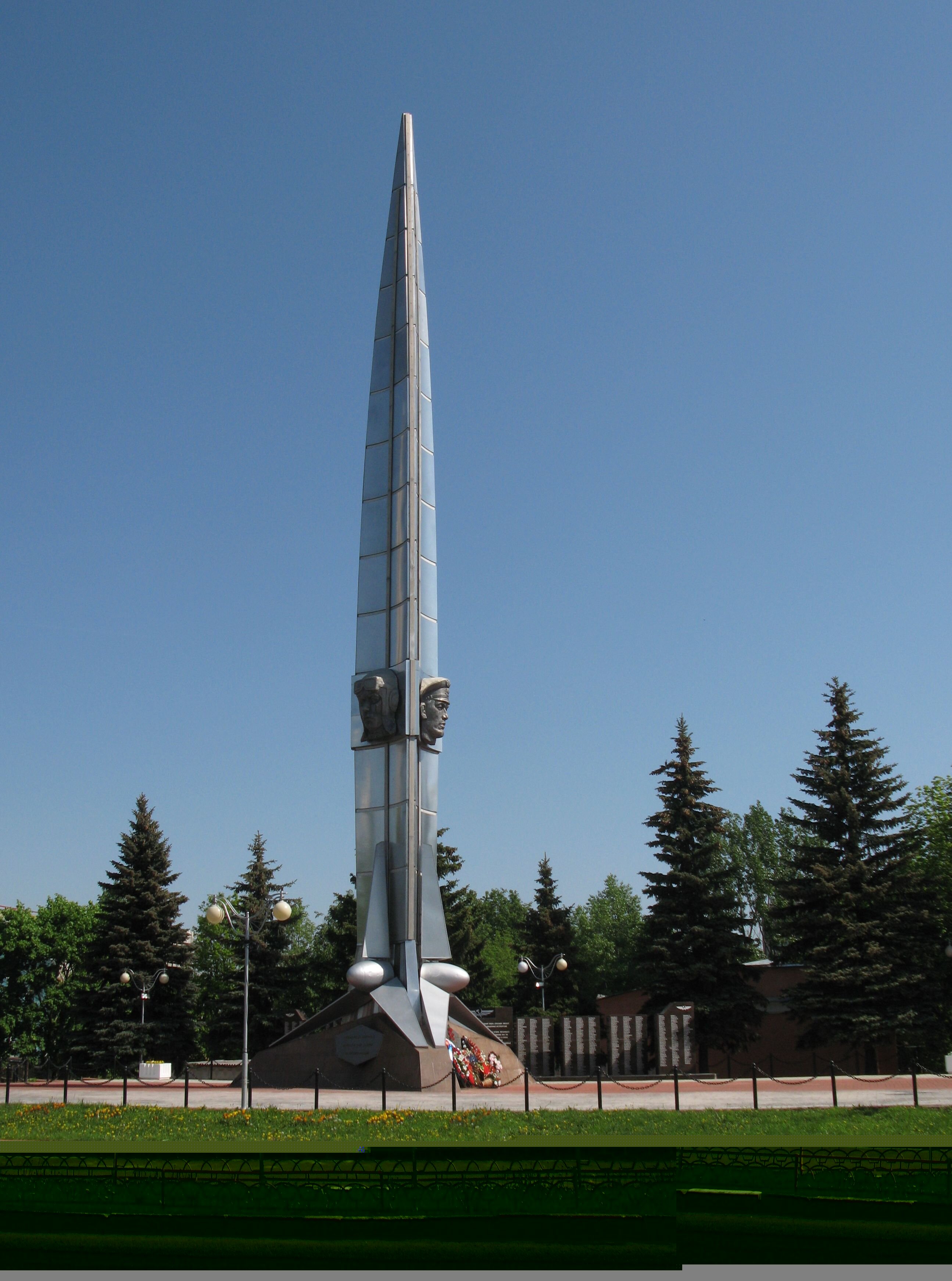 Металлическая часть Памятника была изготовлена внуковским авиаремонтным заводом № 400 ГА. На Стеле высотой 34 метра расположены три барельефа: командира, штурмана и бортрадиста. Под винтами надписи: «Вечная слава авиаторам, павшим в боях за нашу советскую Родину!», «Победа в Великой Отечественной войне 1941—1945 гг. — подвиг всего советского народа».