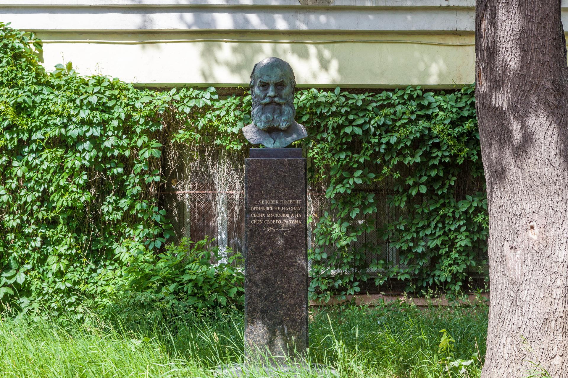 Николая Егоровича Жуковского принято считать «отцом русской авиации». Он открыл ряд законов в этой отрасли: закон динамики для центра тяжести планирующего тела, закон, определяющий подъемную силу крыла самолета, определил основные профили крыльев и лопастей винта самолета, разработал вихревую теорию воздушного винта и многое другое. Бронзовый бюст ученого установлен у главного входа в мемориальный музей его имени.