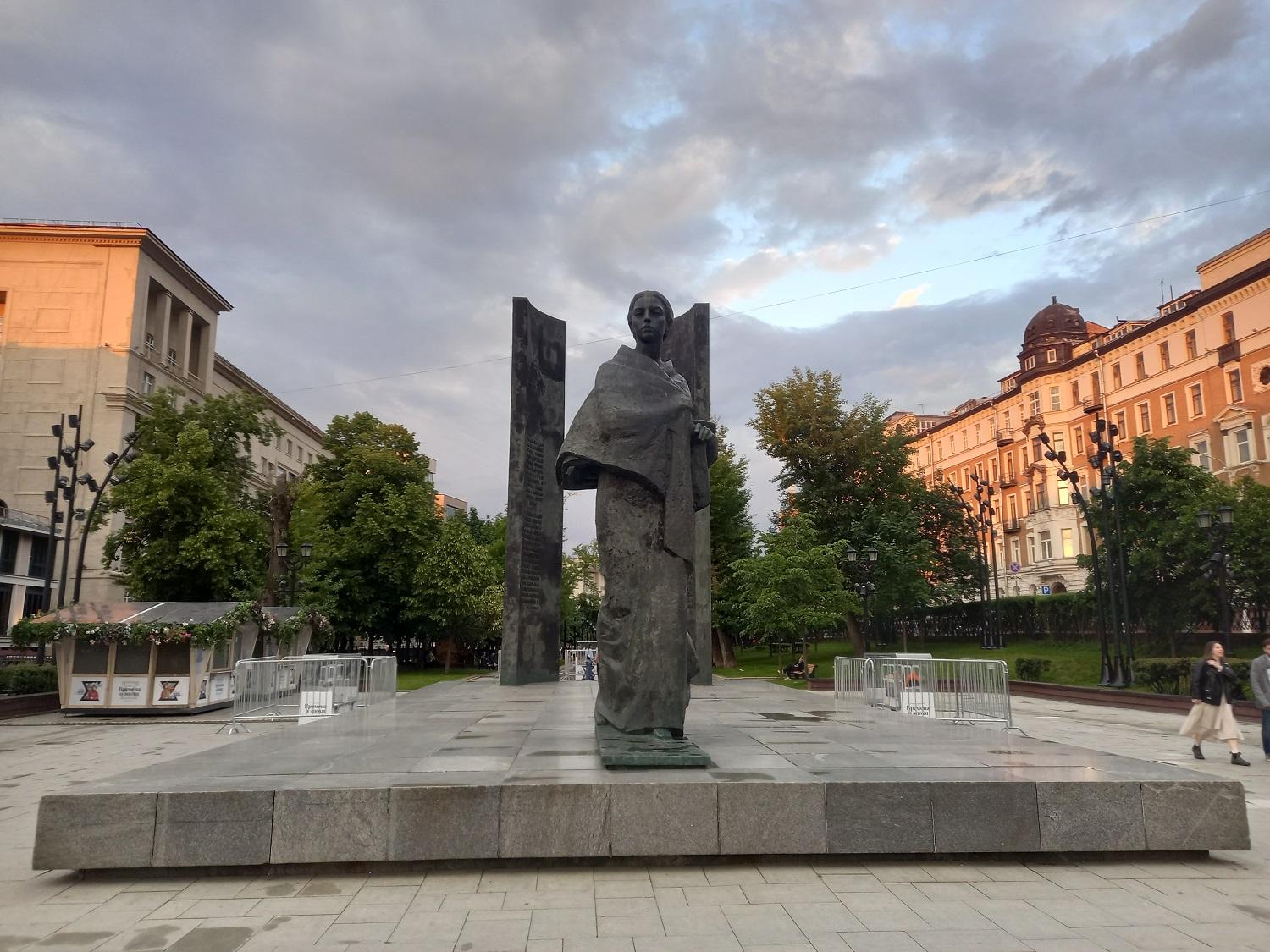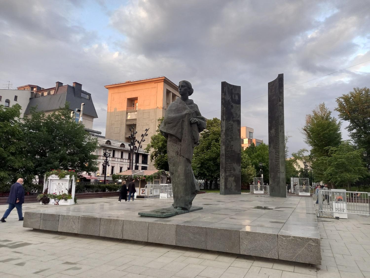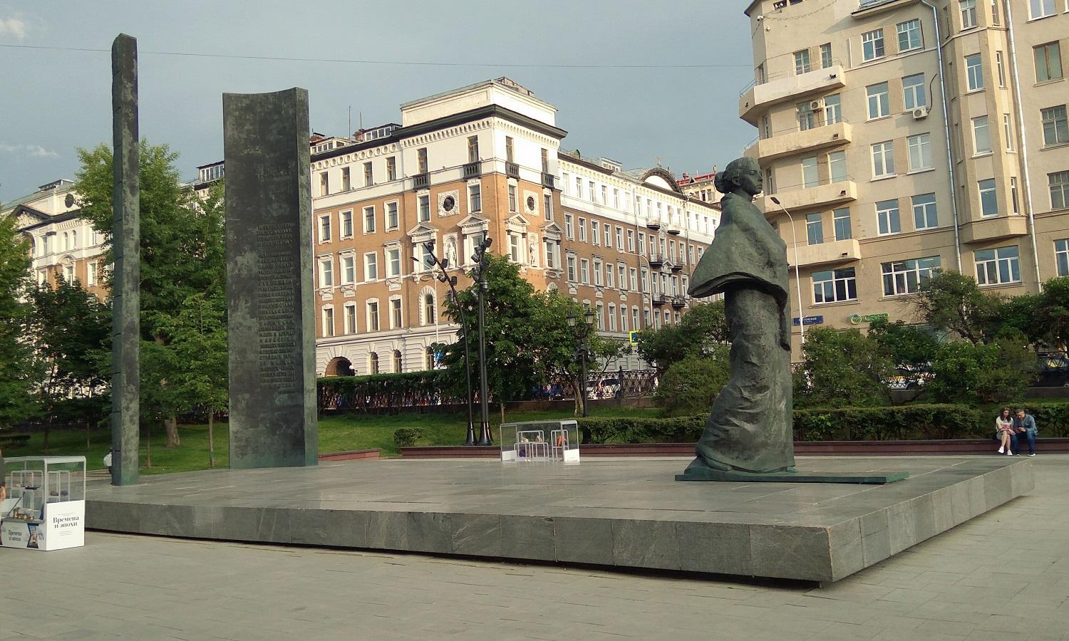 Этот памятник не первый на этом месте. В 1945 г. было решено увековечить имя партийного деятеля А.С. Щербакова. На бульваре торжественно был заложен фундамент его будущего памятника, но этот проект так и не был осуществлен.