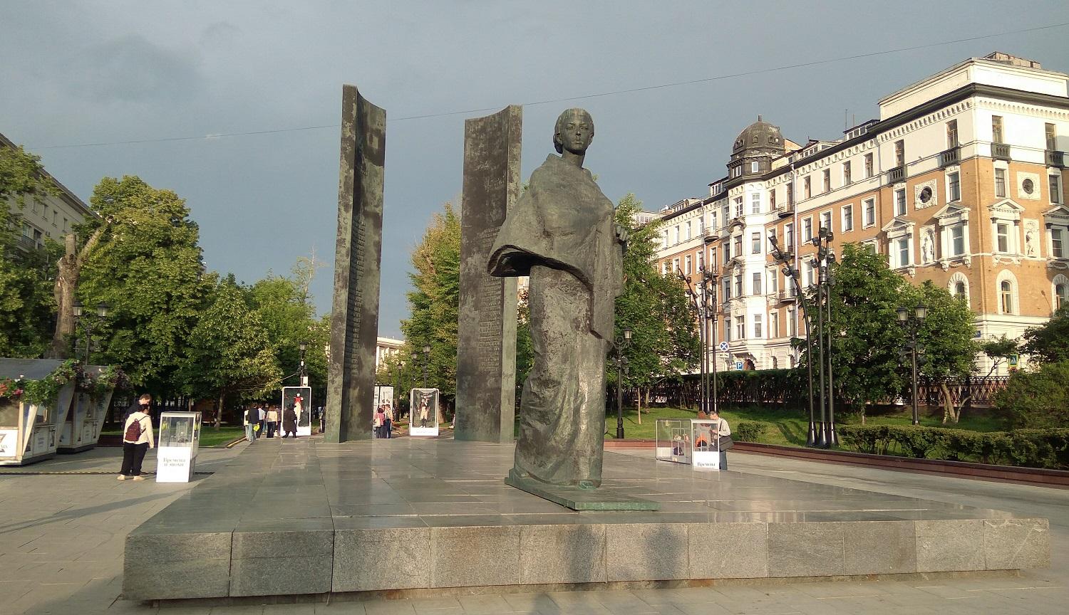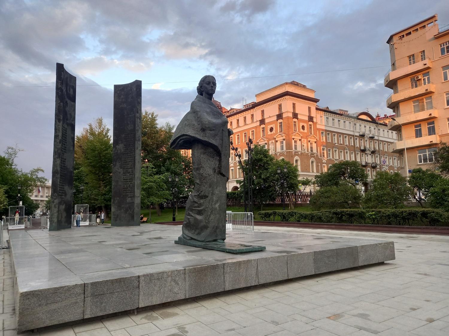 До 1917 г. на месте памятника стоял дом с одним из самых известных московских трактиров «Саратов», его владельцами были Дубровин, затем Севостьянов. Трактир упоминает летописец Москвы Гиляровский.