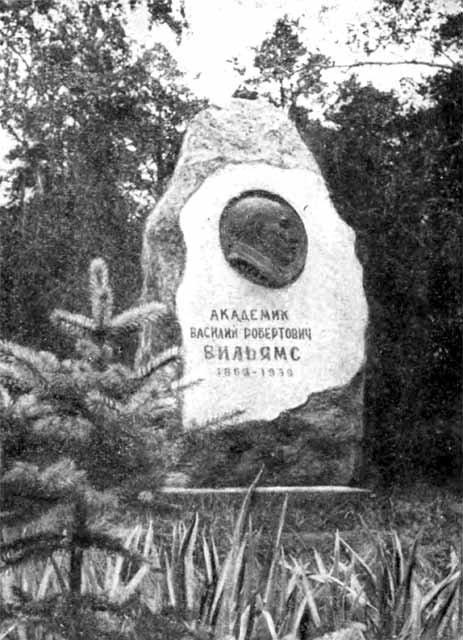 Памятник на могиле В. Р. Вильямса представляет собой гранитный камень неровной формы с профильным барельефом ученого в тондо.