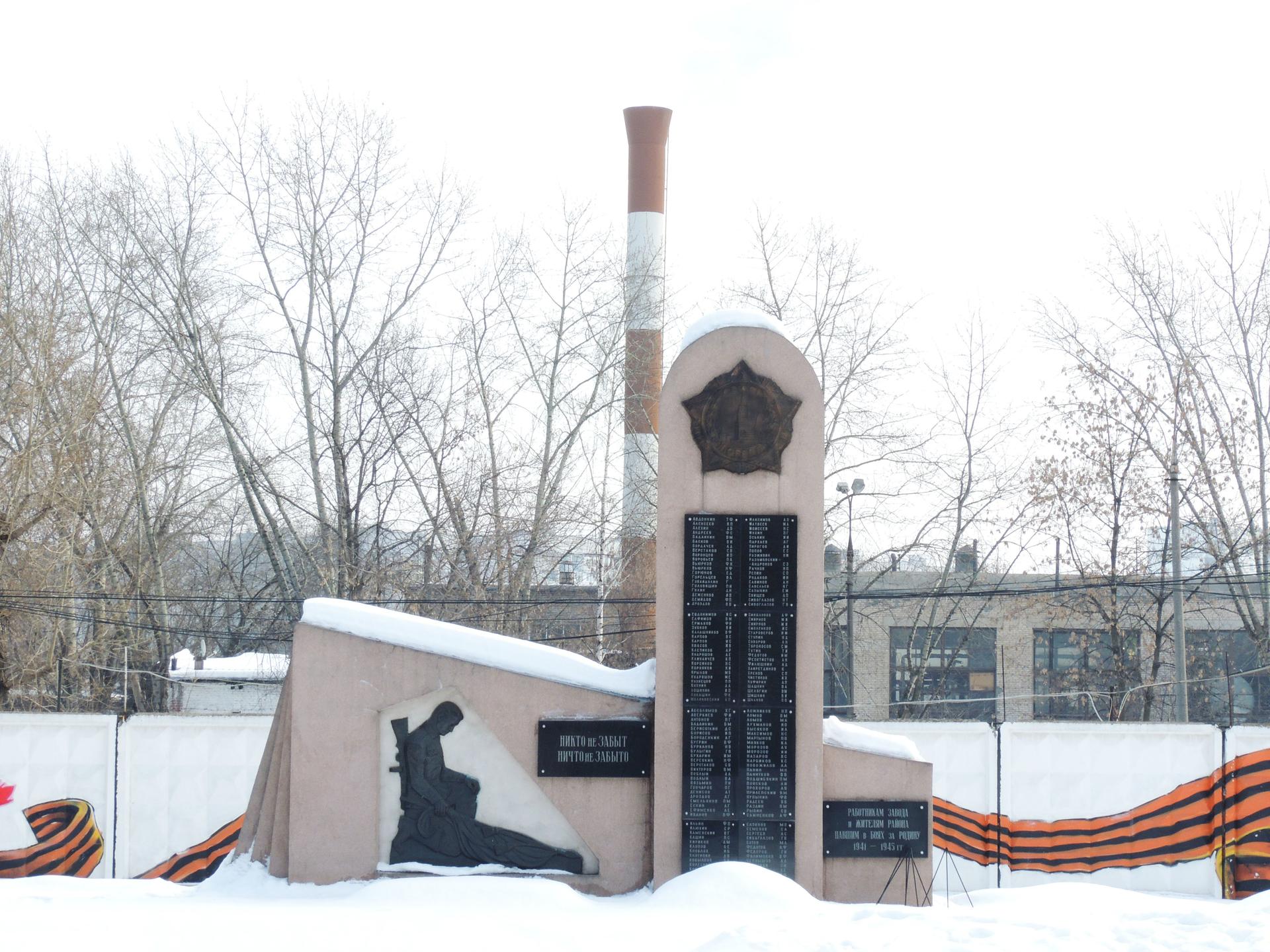 Стела «Погибшим в годы Великой Отечественной войны» в память о работниках Московского Судостроительного судоремонтного завода и жителях района имеет городское значение. Она расположена в Москве на улице Речников дом 7 возле здания завода. В дни празднования Победы в Великой Отечественной Войне здесь возлагают цветы и поздравляют ветеранов. На памятнике высечены слова С. В. Погореловского «Никто не забыт и ничто не забыто» из стихотворения «Имя». На мемориальной доске перечислены фамилии мужчин, работников Судостроительного завода и жителей района Нагатино, погибших на войне. На памятнике изображен солдат, преклонивший колено в знак почтения к подвигу героев.