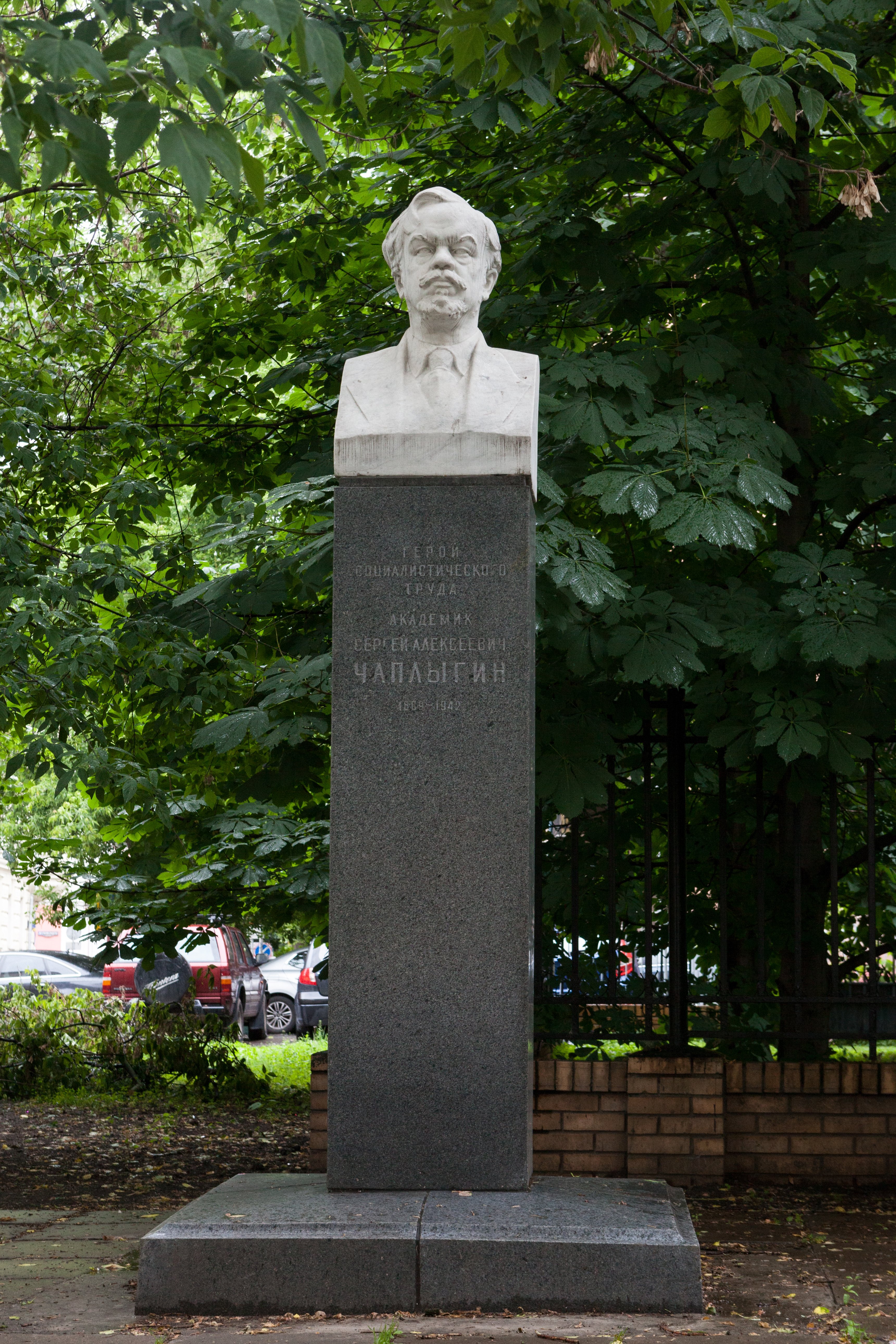 Памятник-бюст воздвигнут в сквере на углу улицы Грибоедова и Большого Харитоньевского переулка. С 1970-х гг. здесь находится музей-квартира С. А. Чаплыгина.