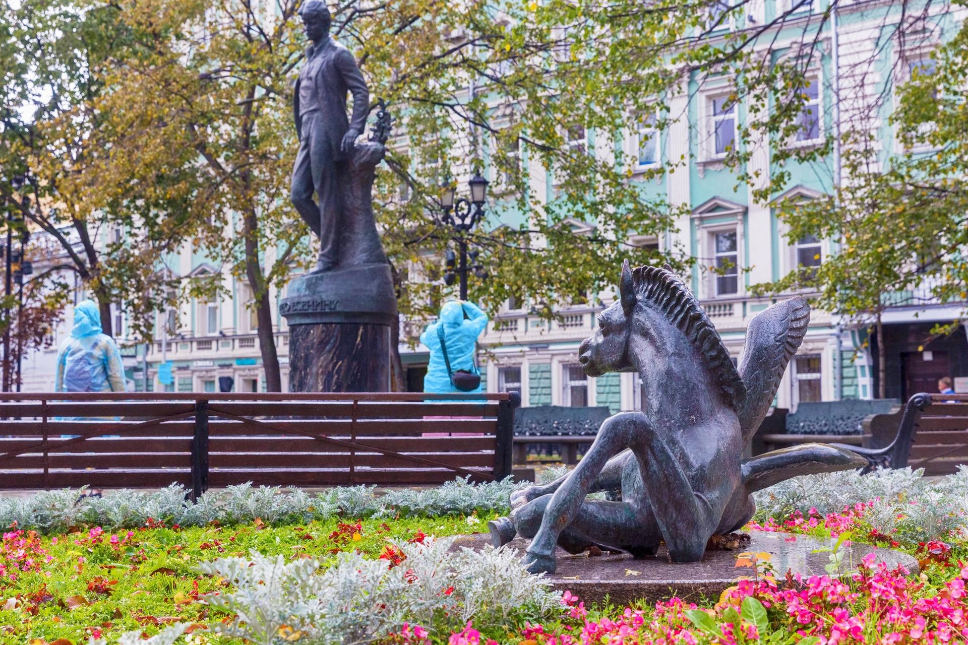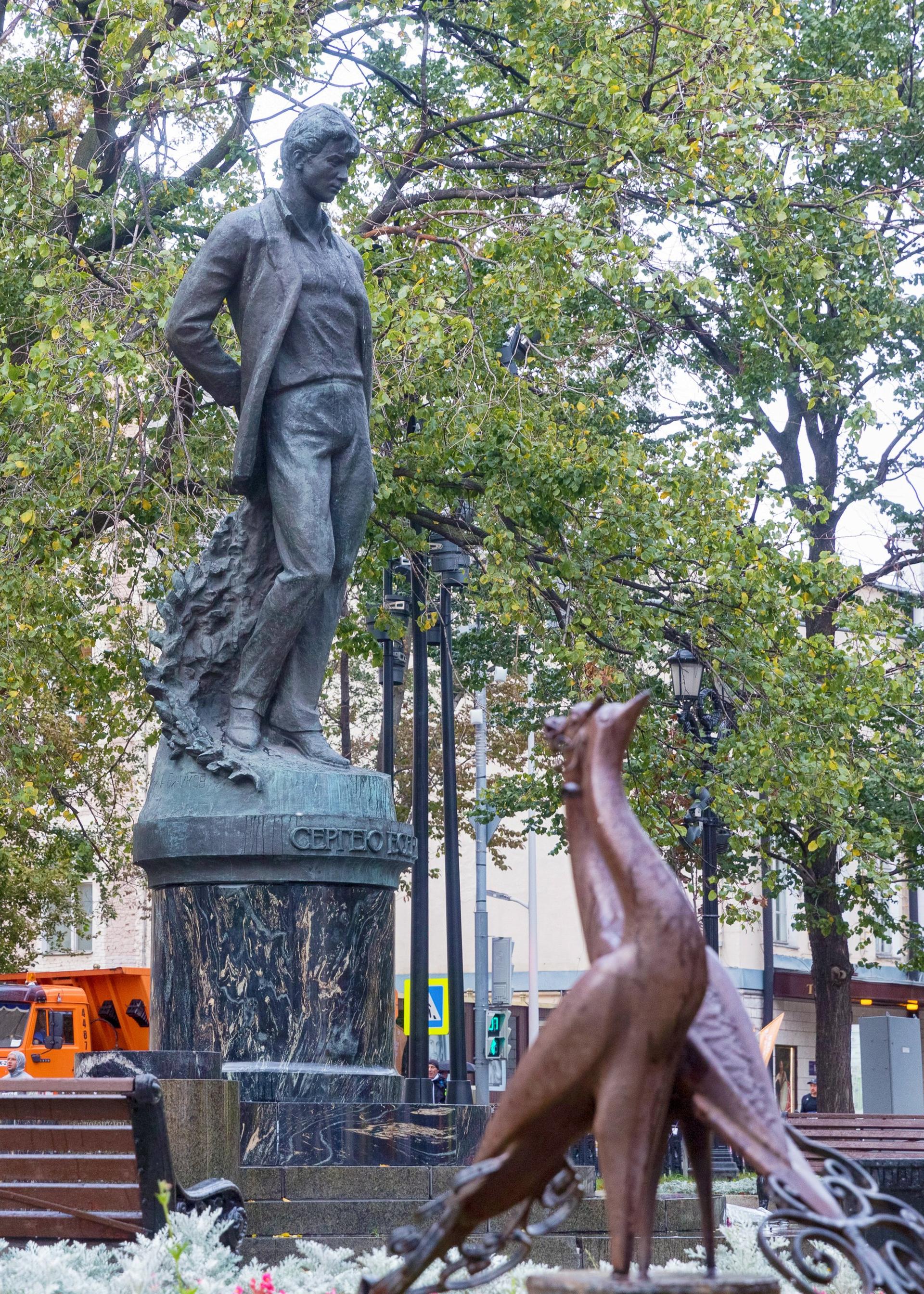 Памятник Сергею Есенину работы А. Бичукова на Тверском бульваре был открыт в 1995 году. Рядом с монументом расположена скульптура крылатого Пегаса, напоминающая о том, что в годы молодости поэта поблизости располагалось кафе "Стойло Пегаса", в котором любили собираться литераторы. Памятник Есенину воздвигнут недалеко от монумента в честь А.С.Пушкина, к которому поэт обращался в своих стихах: