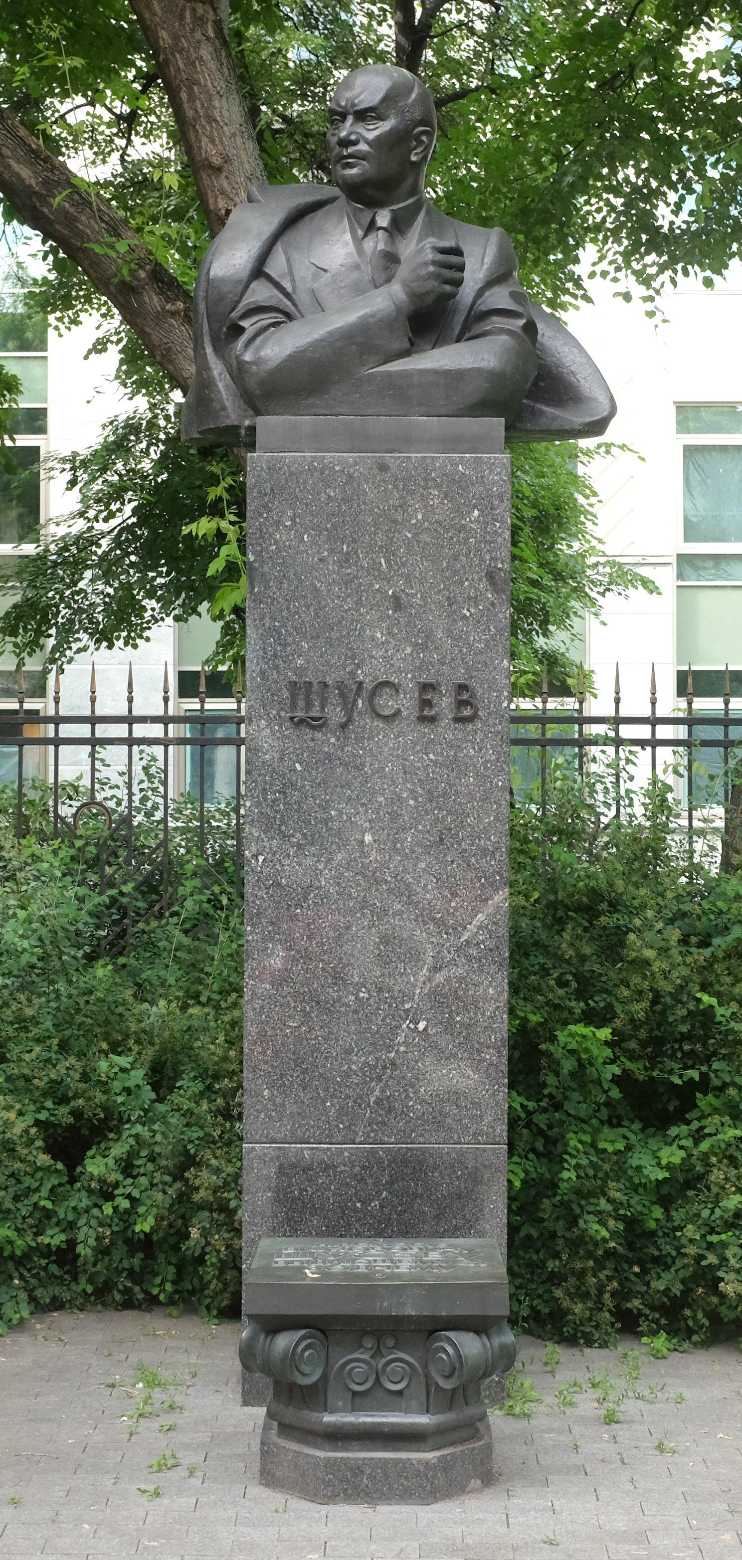 В советский период талант Щусева также был востребован - в 1918—1923 годы он руководил разработкой генерального плана «Новая Москва». Этот план стал первой советской попыткой создать реально исполнимую концепцию развития города в духе большого города-сада. Проект был направлен на четкое зонирование территории, сохранение исторического центра и множества отдельных старинных общественных зданий и храмов, развитие «зеленых клиньев» от центра к периферии, реконструкцию ряда магистралей, московского речного порта и железнодорожного узла и пр. Также именно Щусев спроектировал мавзолей на Красной площади.