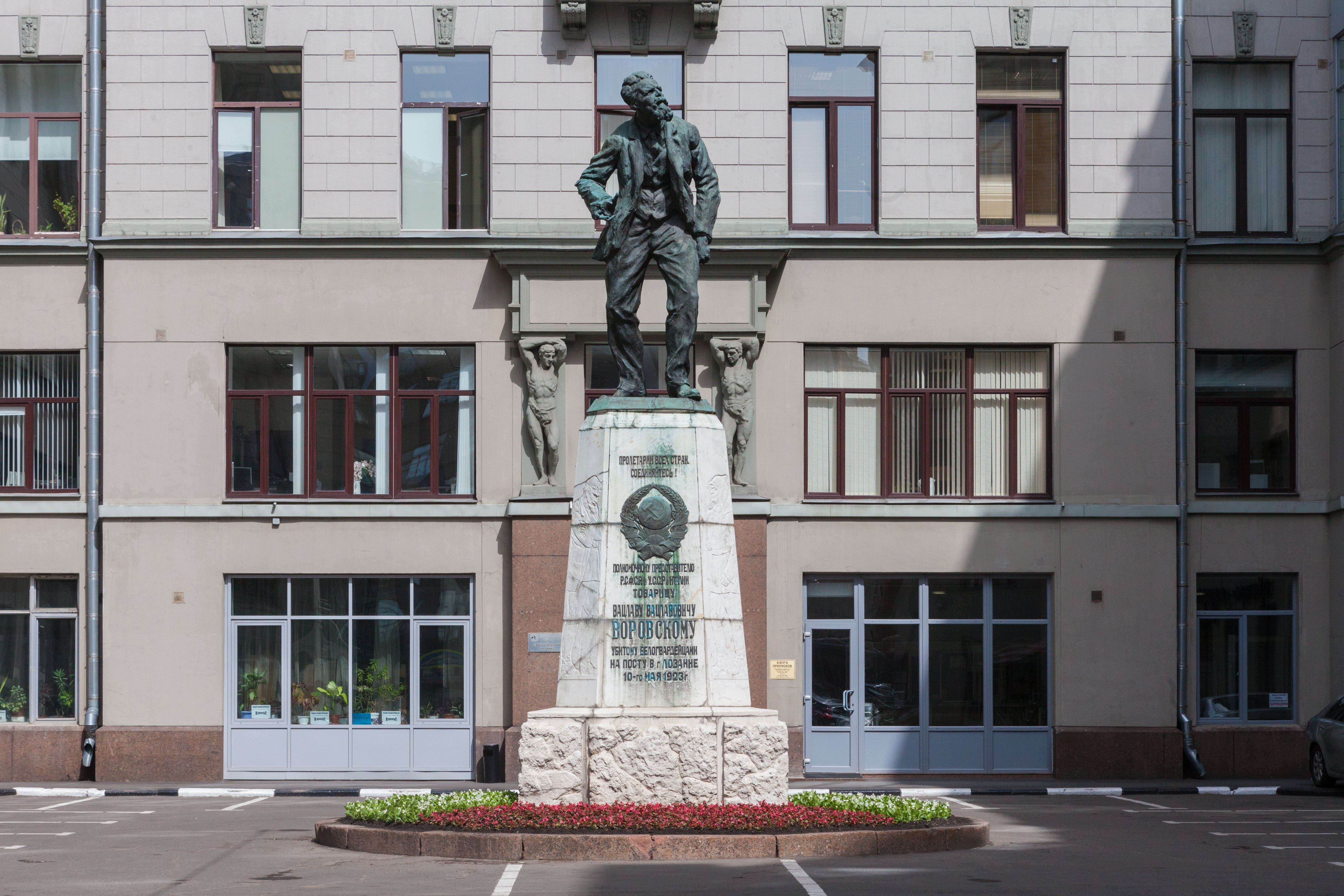 Вацлав Вацлавович Воровский - один из первых советских дипломатов. Был убит белогвардейцем, потерявшим в России семью, в Швейцарии в ресторане «Сесиль». Суд оправдал убийцу, сославшись на преступления большевиков. Бронзовая скульптура установлена на высоком мраморном постаменте. Воровский изображен в момент, когда ему в затылок попадает пуля.