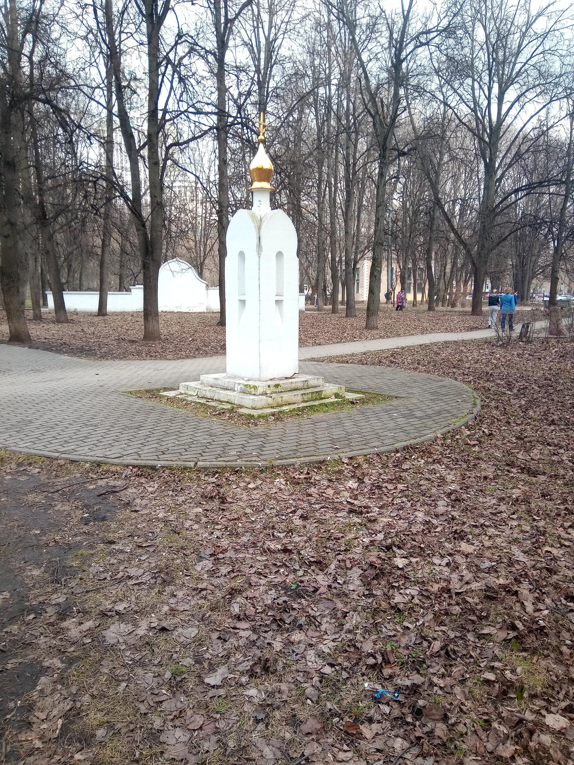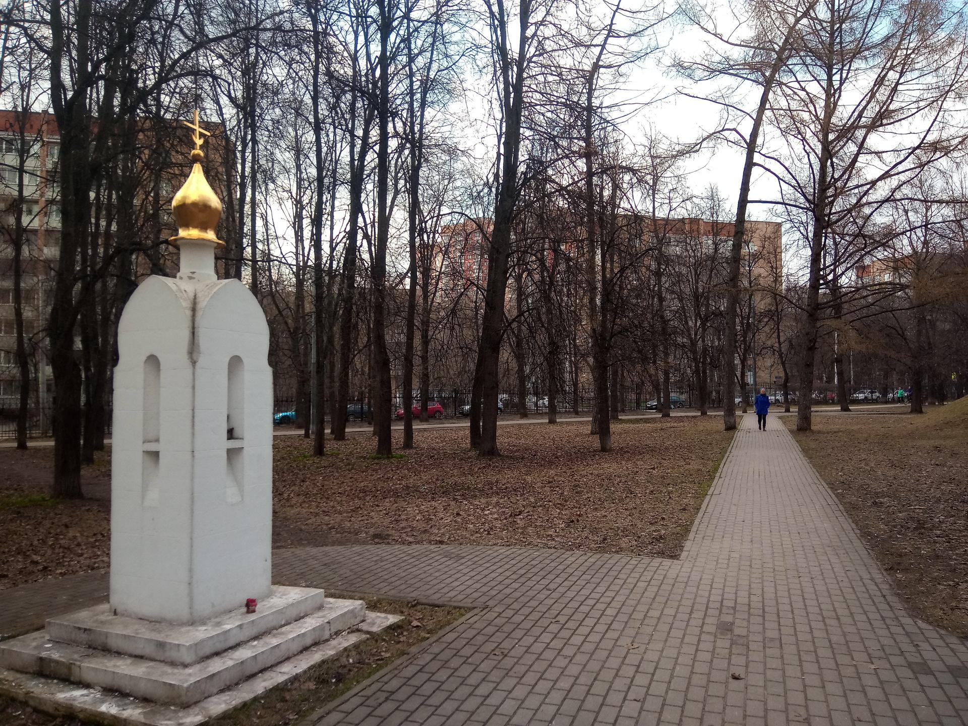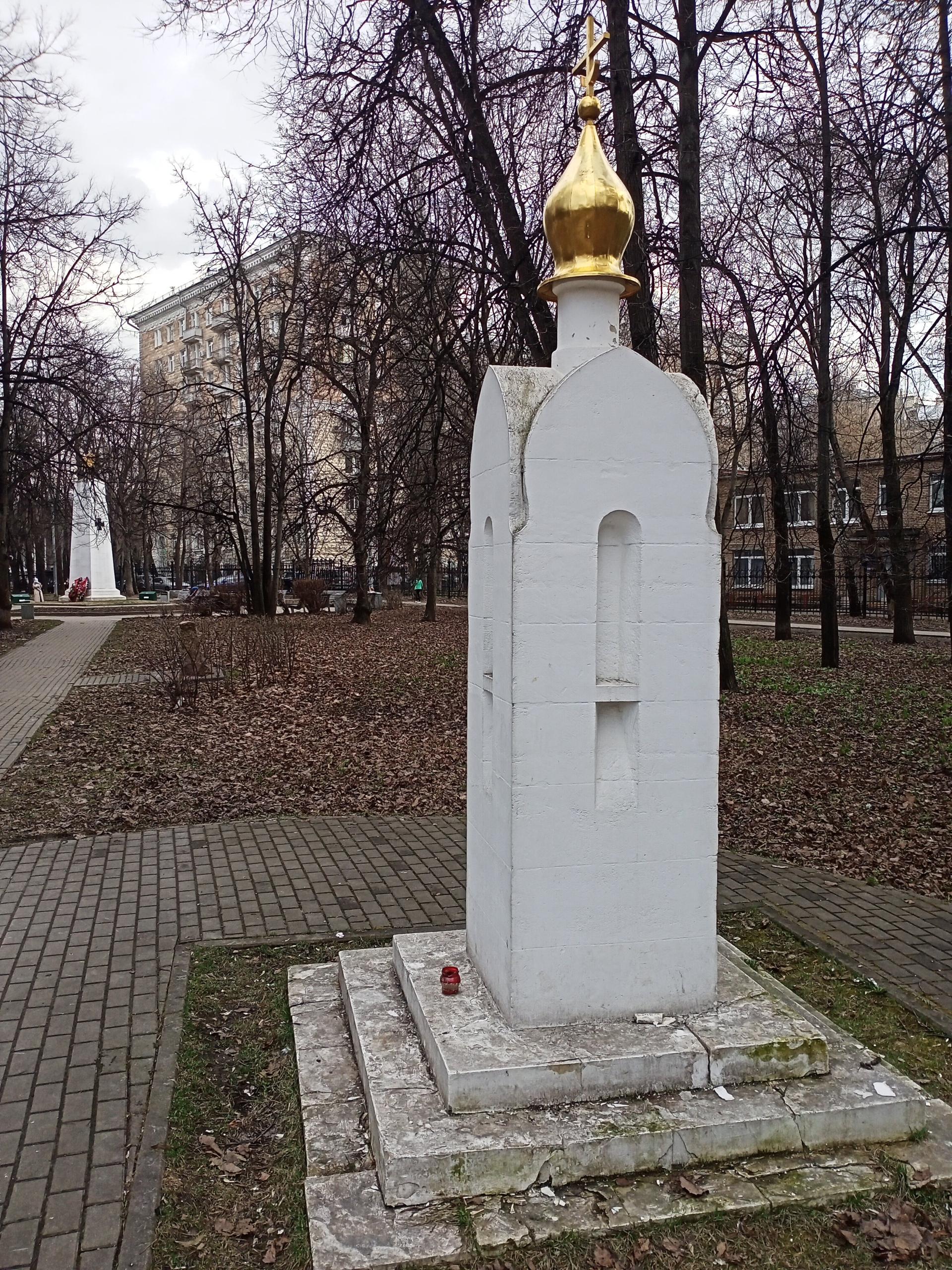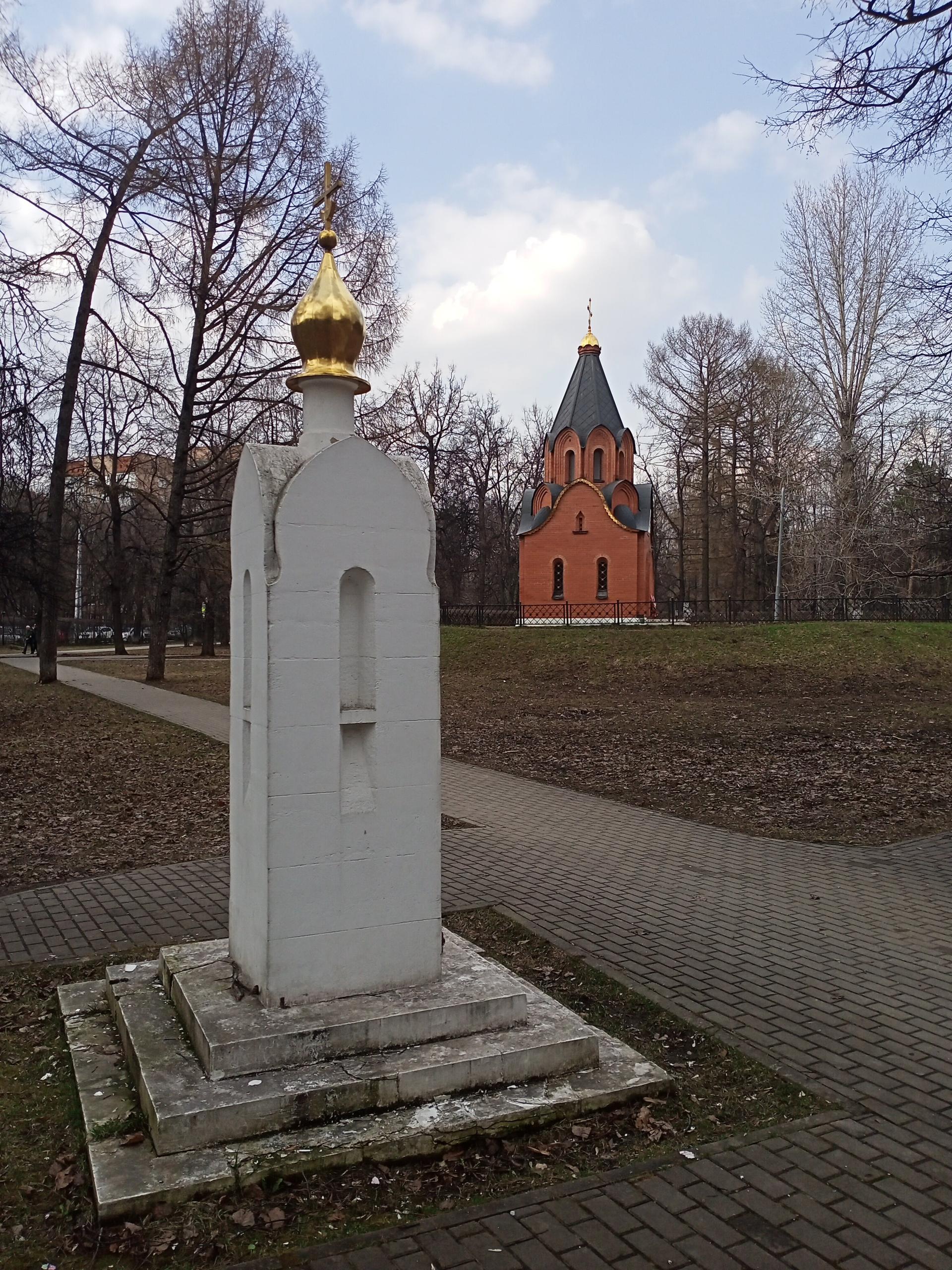 Часовенный столб расположен к югу от часовни Спаса Преображения Мемориально-паркового комплекса героев Первой мировой войны. На верхушке столба церковная главка золотистого цвета. На ней — крест с полумесяцем.