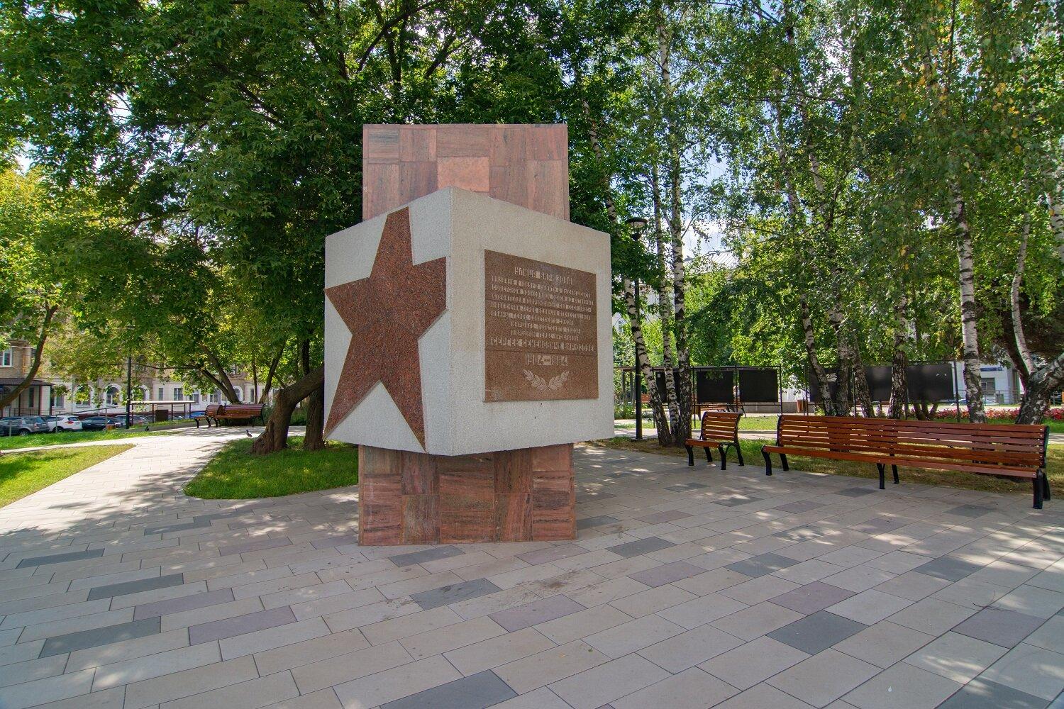 Мемориал расположен в сквере между улицами Маршала Бирюзова и Расплетина. В 2019 году территорию обновили и облагородили по программе «Мой район», а памятный знак – отреставрировали.