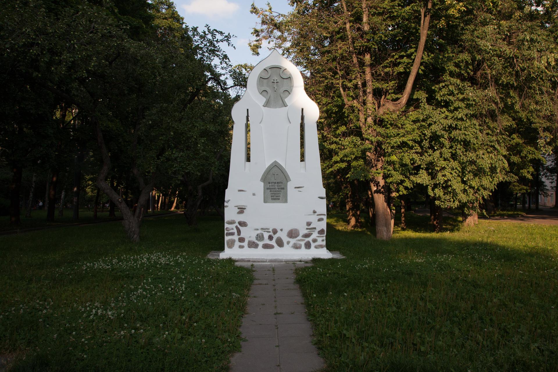 Памятный знак находится на центральной аллее Мемориально-паркового комплекса героев Первой мировой войны. Представляет собой стену, имеющую форму трех церковных куполов, соединенных воедино. В центральной части имеет два узких продолговатых отверстия в виде бойниц. В верхней части — православный крест. В нижней части — вкрапления из булыжников. В центре расположена мемориальная табличка: «На этом месте в 1915-1925 гг. находилась часовня Московского городского братского кладбища».