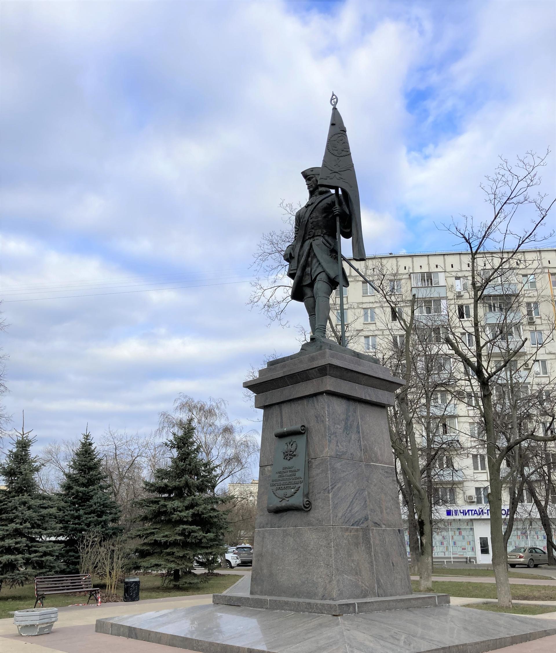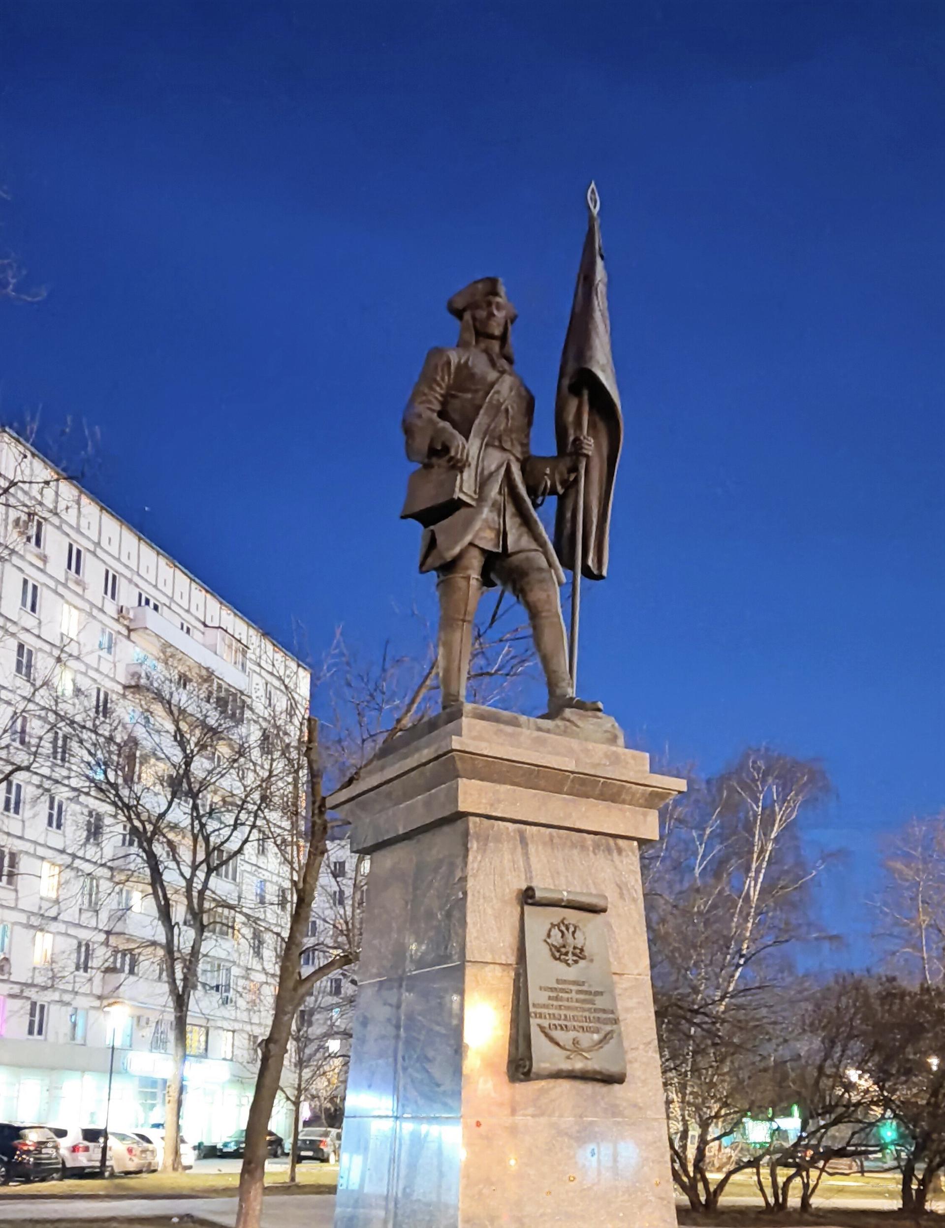 Памятник первому гвардейцу Преображенского полка Сергею Бухвостову установлен в 2005 г. Представляет собой бронзовую скульптуру в полный рост на гранитном постаменте. Сергей Леонтьевич одет в военную форму солдата гвардейского Преображенского полка. В левой руке он держит знамя полка. На лицевой поверхности постамента укреплена бронзовая мемориальная плита в виде развернутого свитка.