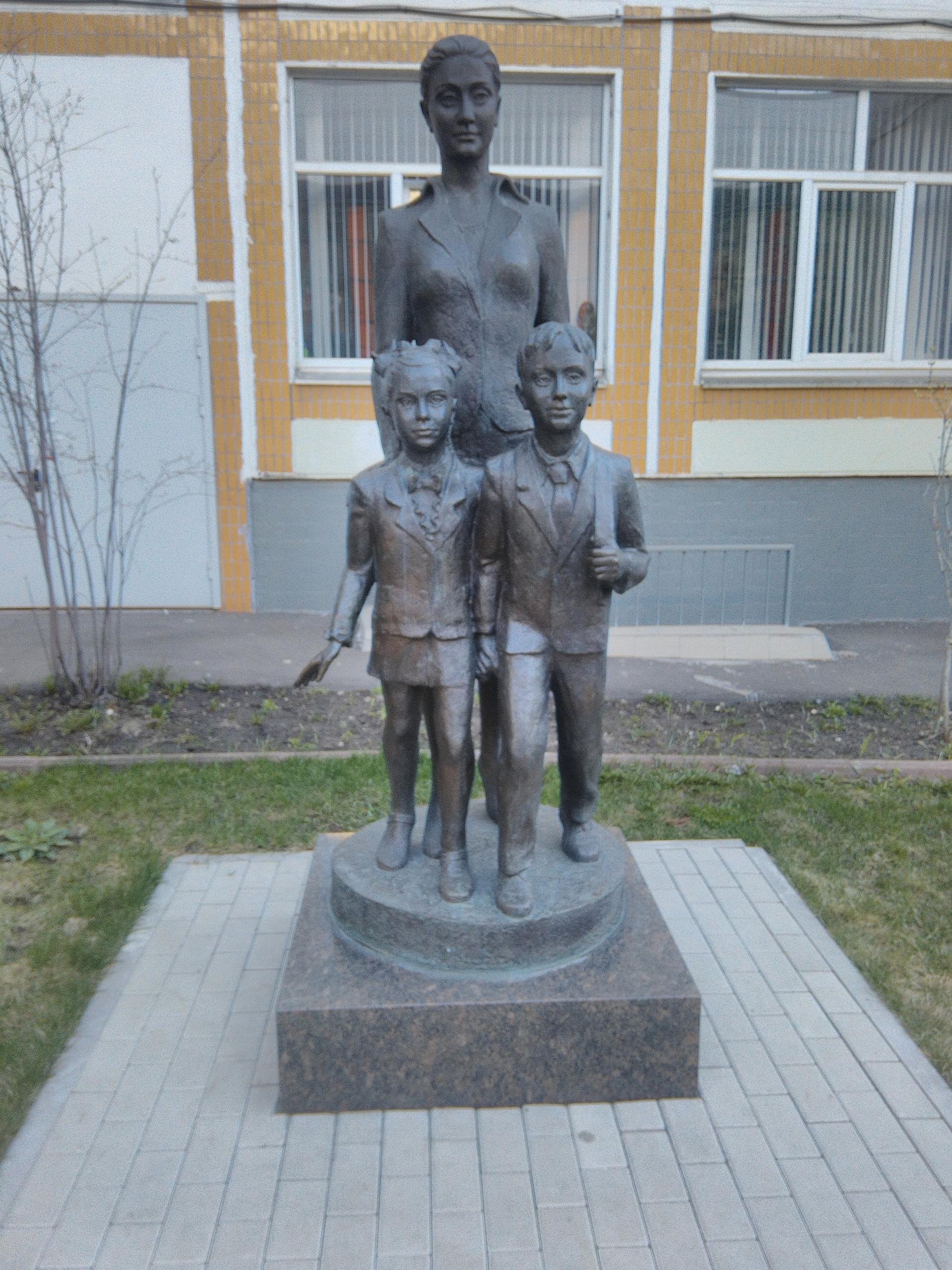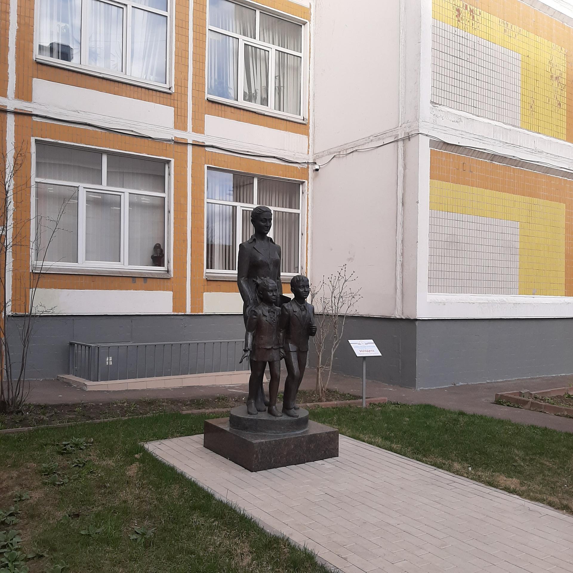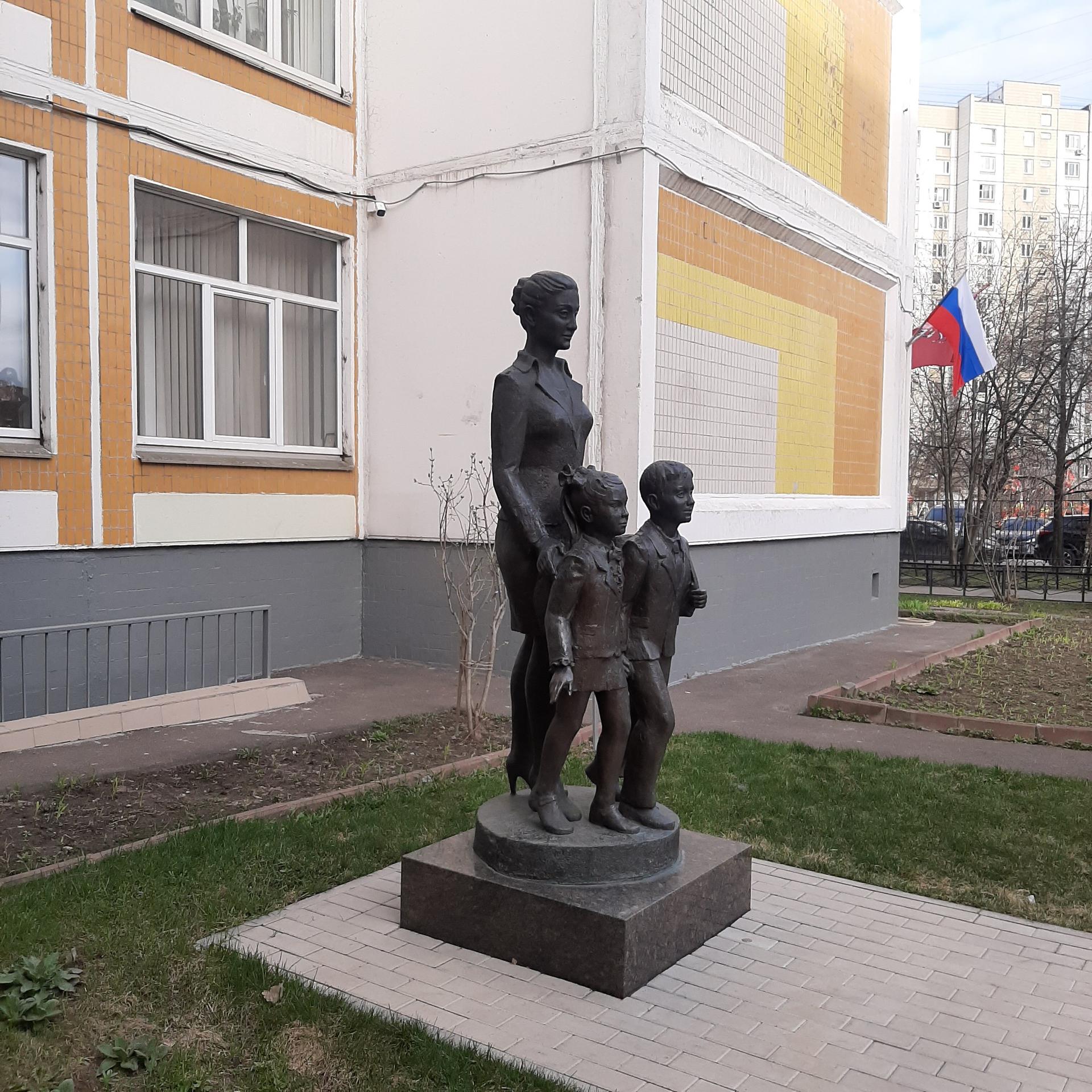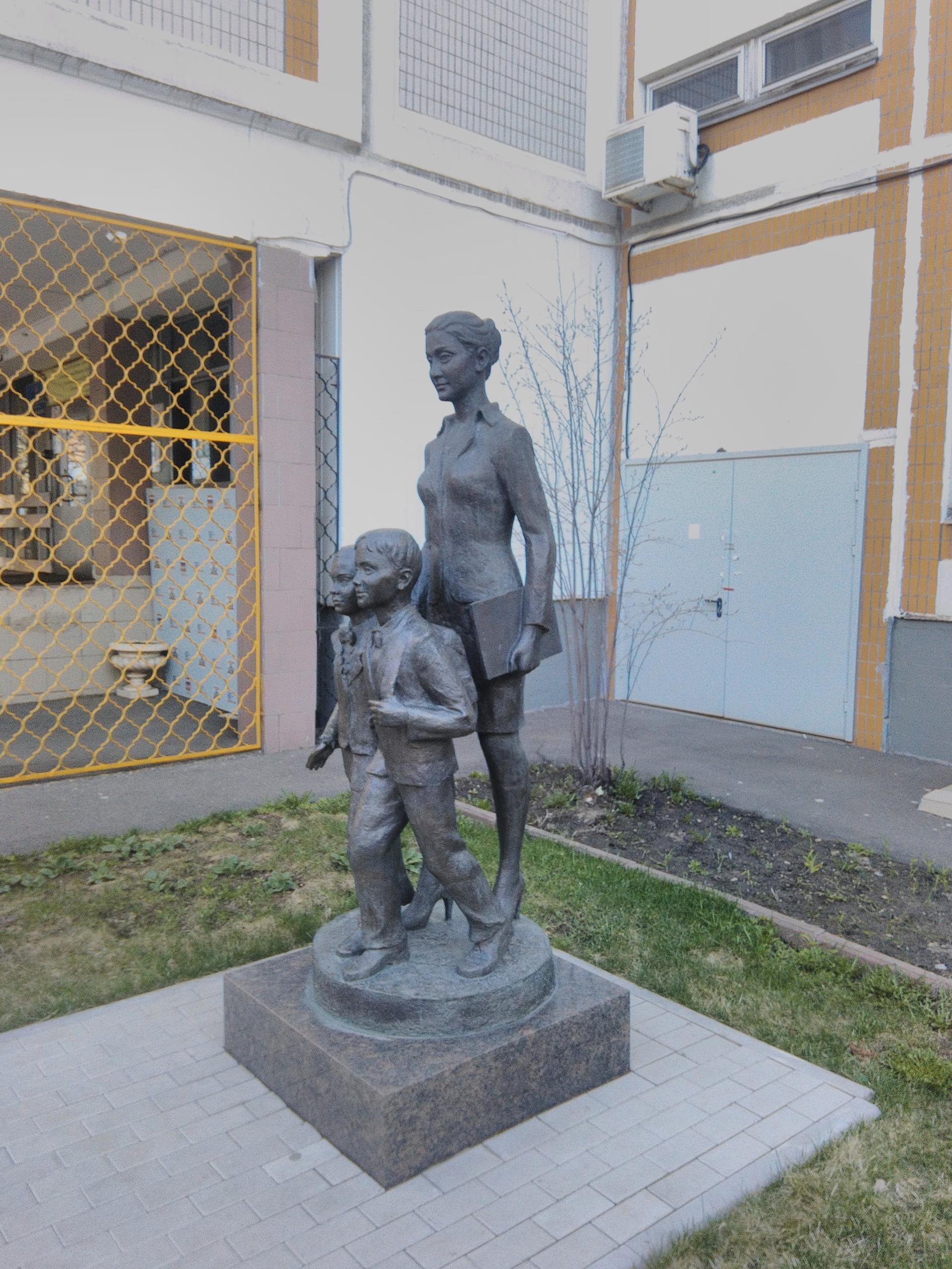 Бронзовая скульптурная группа изображает молодую учительницу, идущую в класс вместе с двумя первоклашками: мальчиком и девочкой. Персонажи имеют портретное сходство: скульптор Валерий Рыбинский создавал композицию натуры, а в качестве моделей ему позировали молодой психолог школы № 1925 Анна Александровна и ученики начальной школы: Оля, Глеб и Олег (в образе мальчика запечатлены черты двух учеников).