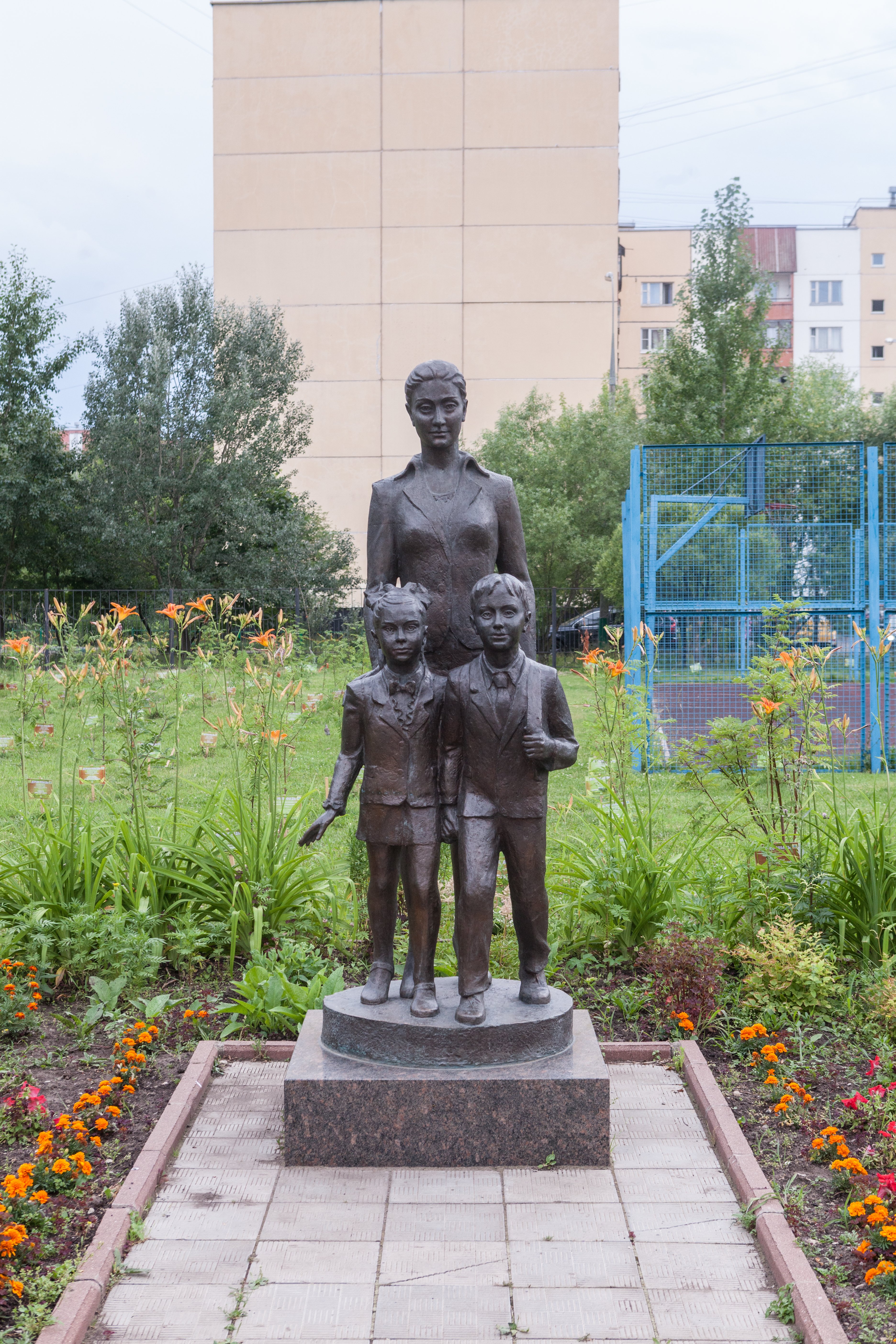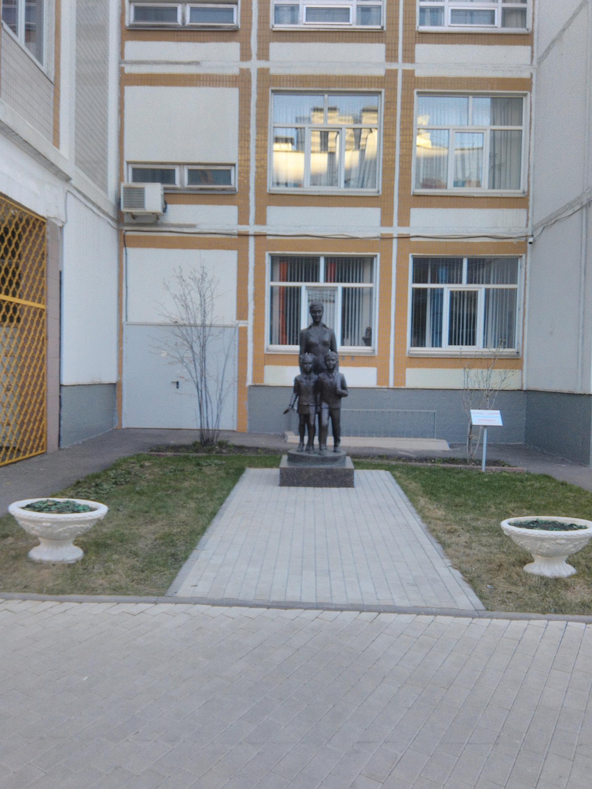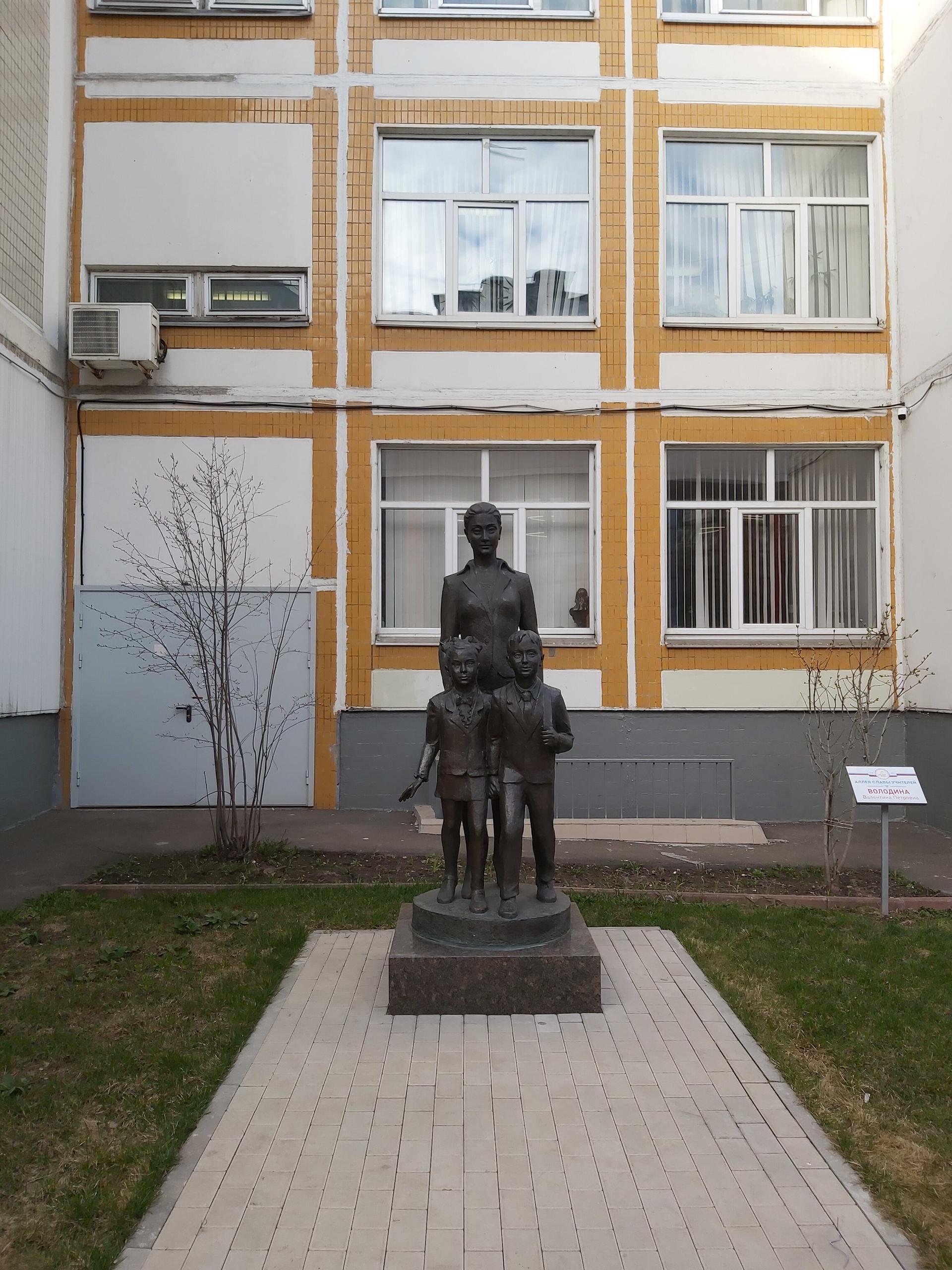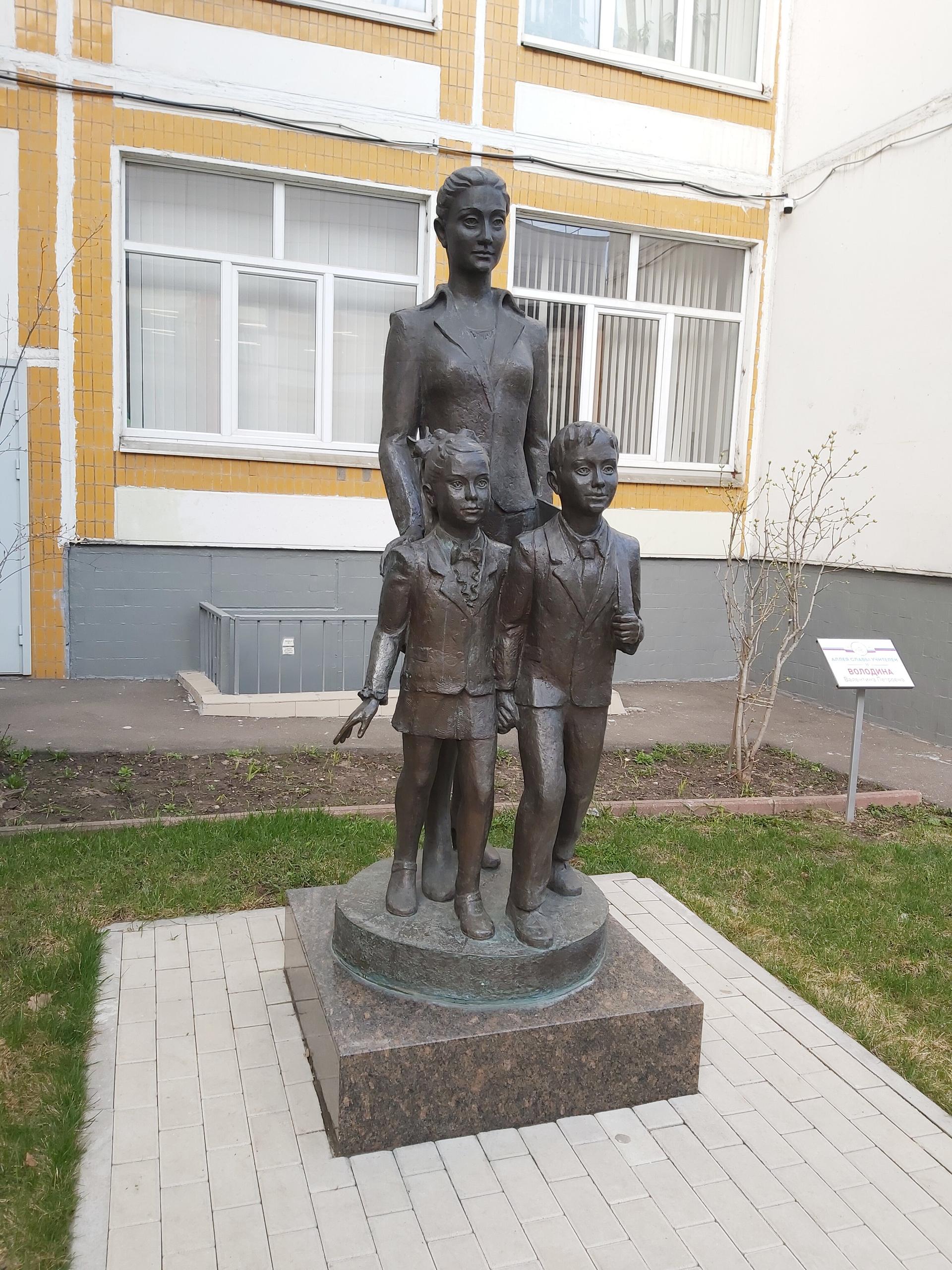 Бронзовая скульптурная группа изображает молодую учительницу, идущую в класс вместе с двумя первоклашками: мальчиком и девочкой. Персонажи имеют портретное сходство: скульптор Валерий Рыбинский создавал композицию натуры, а в качестве моделей ему позировали молодой психолог школы № 1925 Анна Александровна и ученики начальной школы: Оля, Глеб и Олег (в образе мальчика запечатлены черты двух учеников).