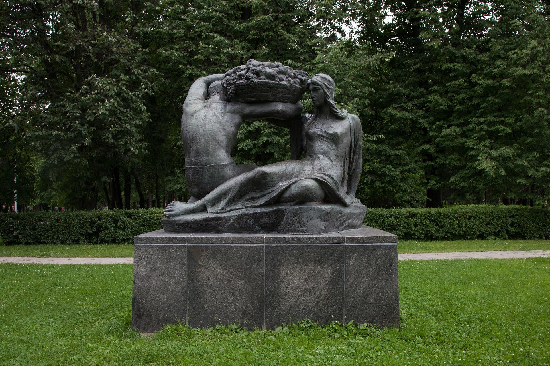 Скульптура «Плодородие» была выполнена по эскизам В. И. Мухиной после ее смерти. Композиция состоит из фигур мужчины и женщины, держащих в руках корзину с фруктами. Скульптура находится у центрального входа в парк Дружбы, неподалеку от метро «Речной вокзал». Является парной со скульптурной композицией «Хлеб». Реставрационные работы на объекте проводились в 2016 г.