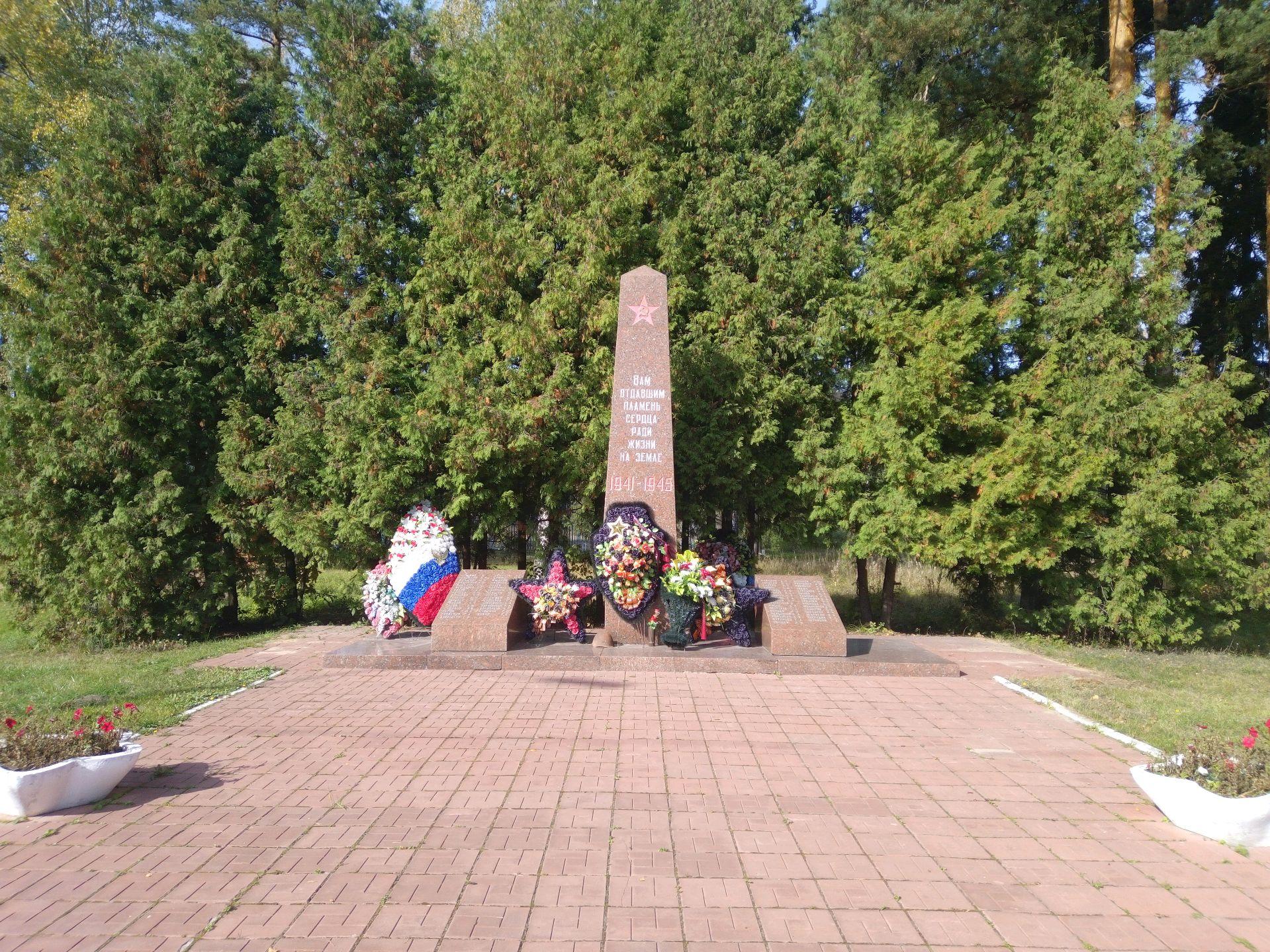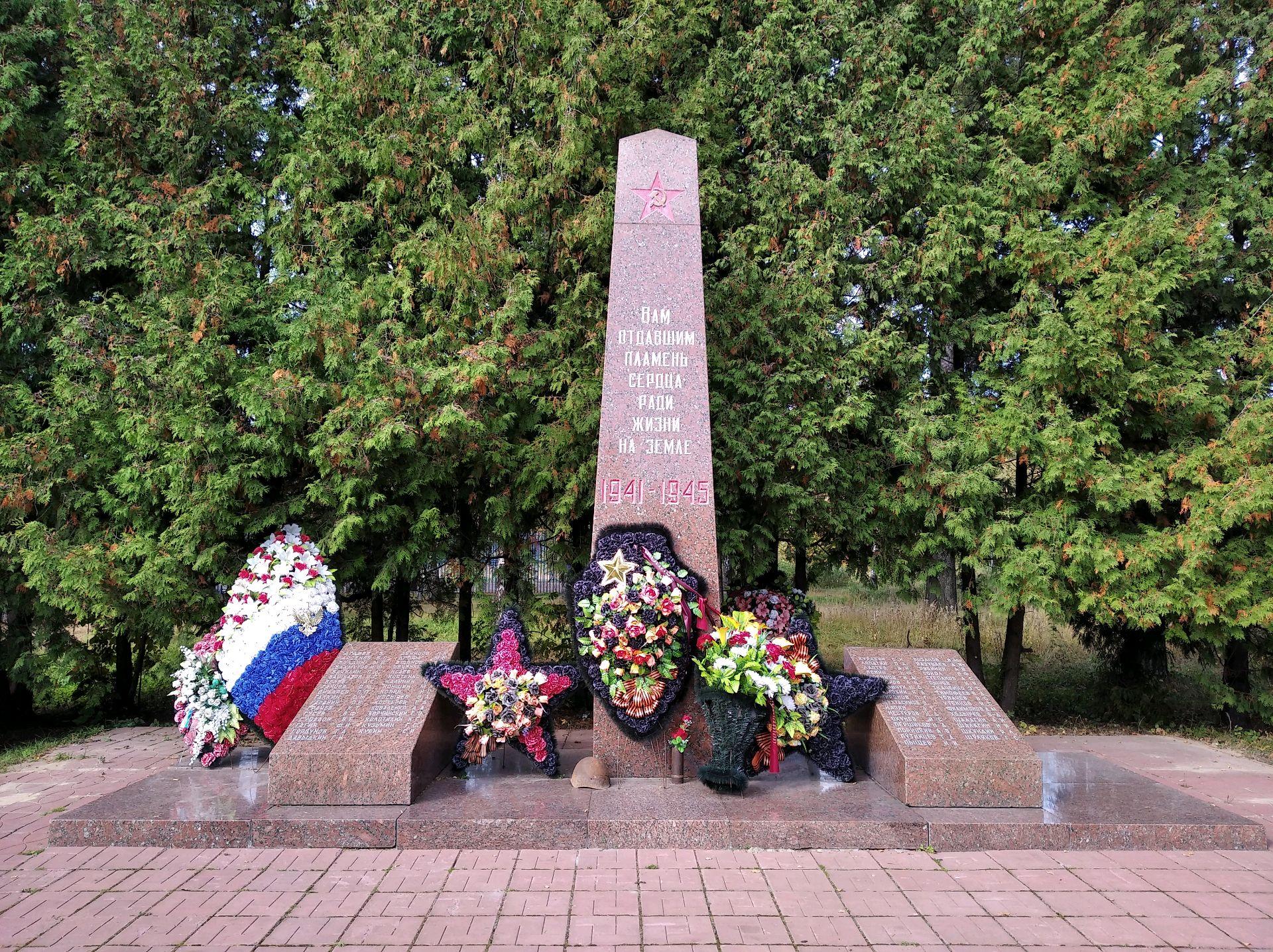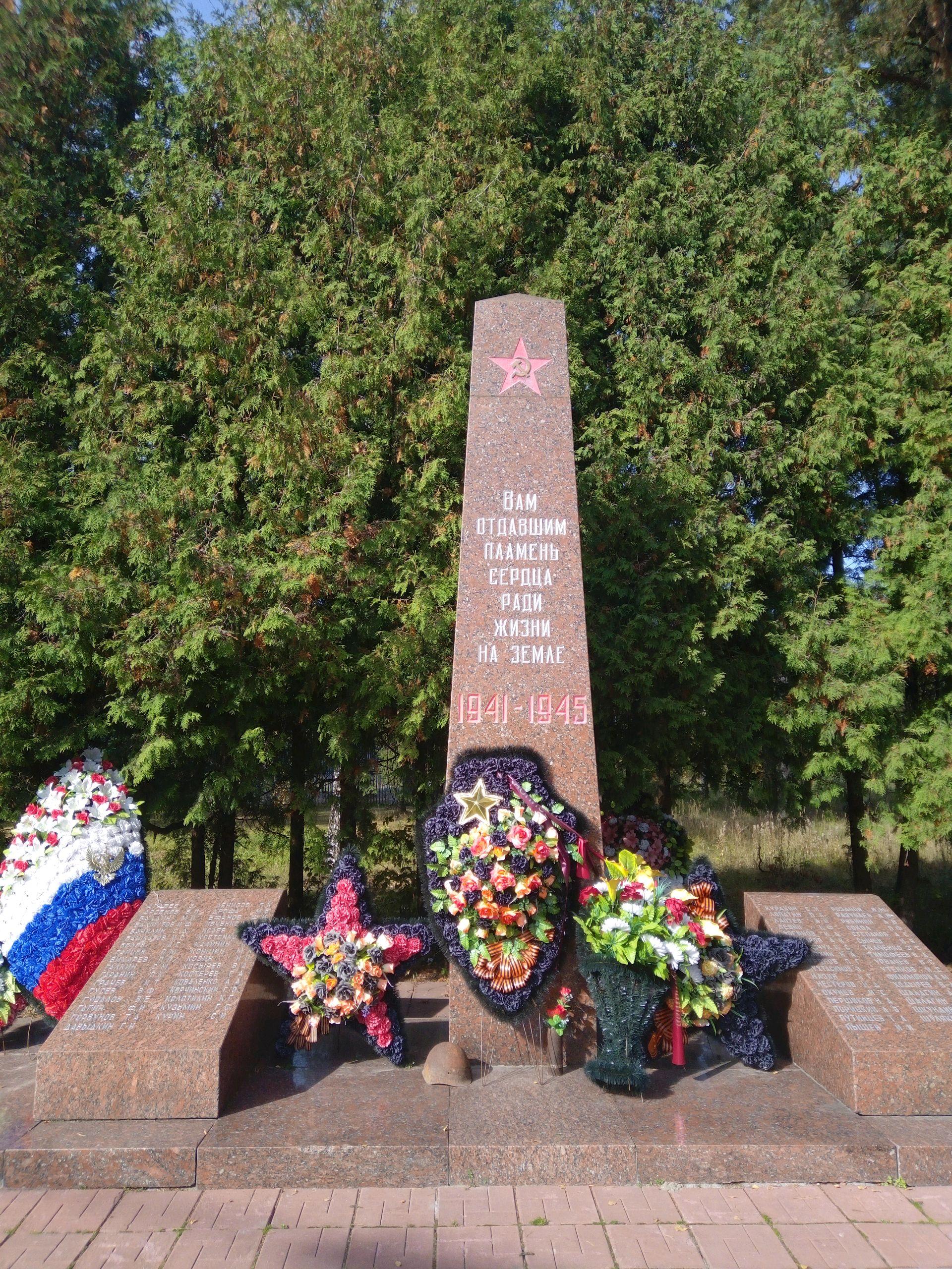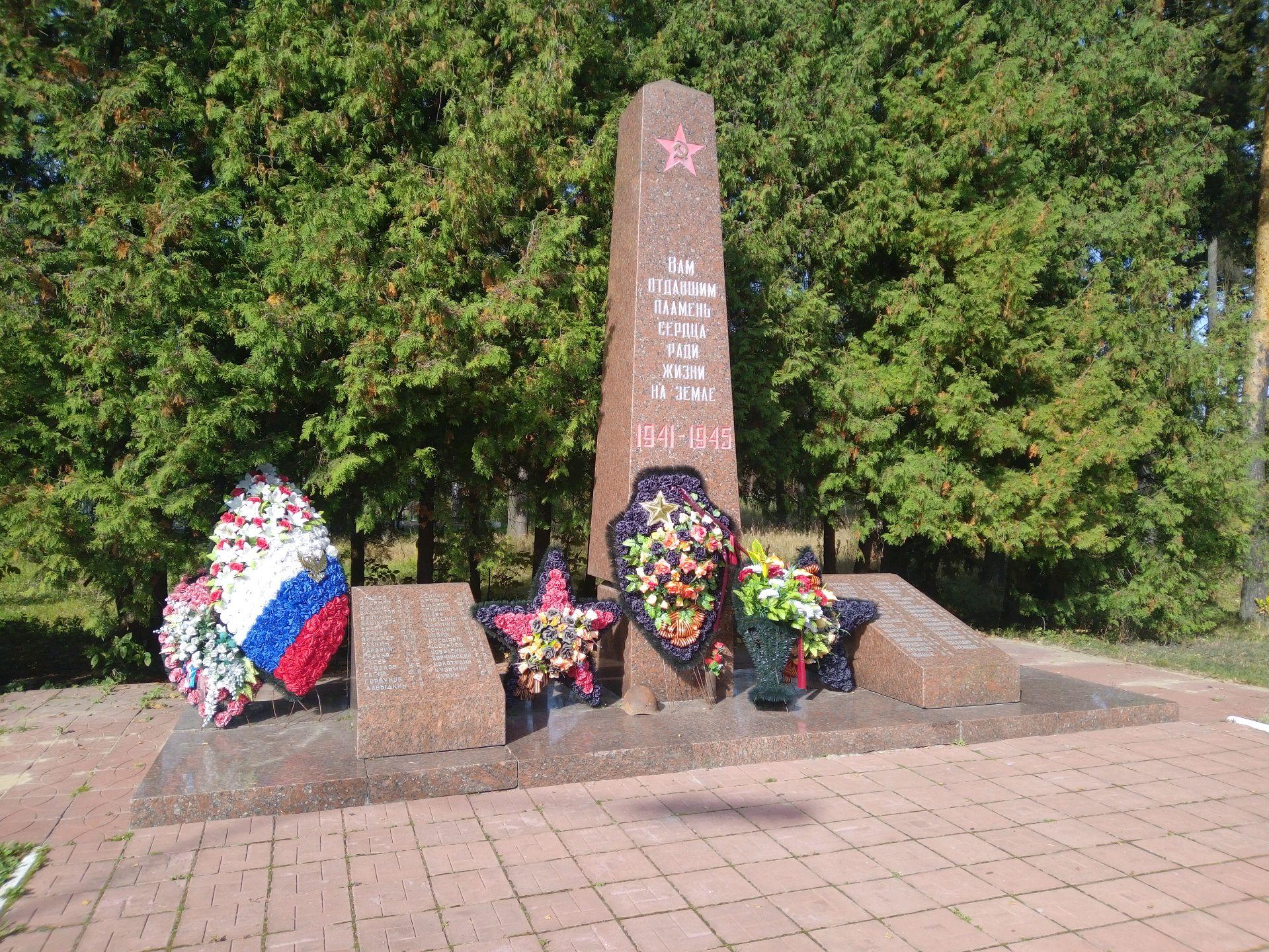 На обелиске прорезными буквами выполнена посвятительная надпись: «Вам, отдавшим пламень сердца ради жизни на земле. 1941-1945». На памятных камнях перечислены имена 33 павших воинов поселка.