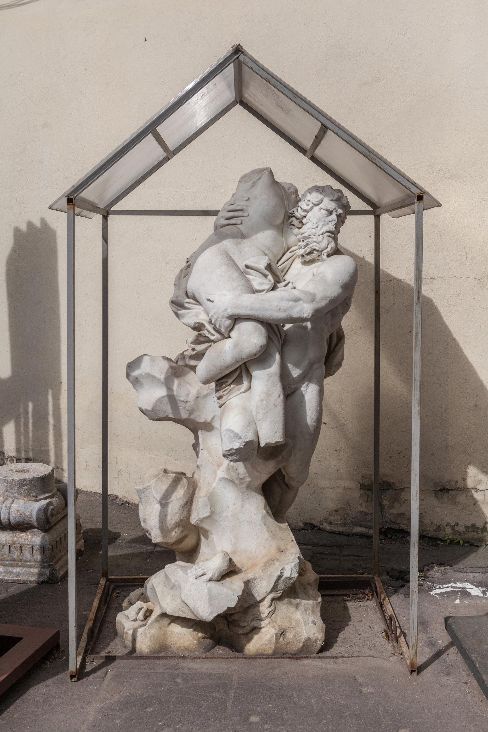Пейзажный парк на высоком берегу Москвы-реки сформировался в конце XVIII в. и делится на две части — верхнюю, окружавшую комплекс главного дома с оранжереей, и нижнюю, в которой выделялась мраморная скульптурная группа «Плутон, похищающий Прозерпину» (по преданию, подарена императрицей Екатериной II Льву Нарышкину). В связи с разрушением скульптуры А. Н. Бурганов перевез ее в 1995 г. в свою мастерскую. Сейчас эту скульптуру и ряд других, вывезенных из усадьбы, можно посмотреть в «Бурганов-центре».