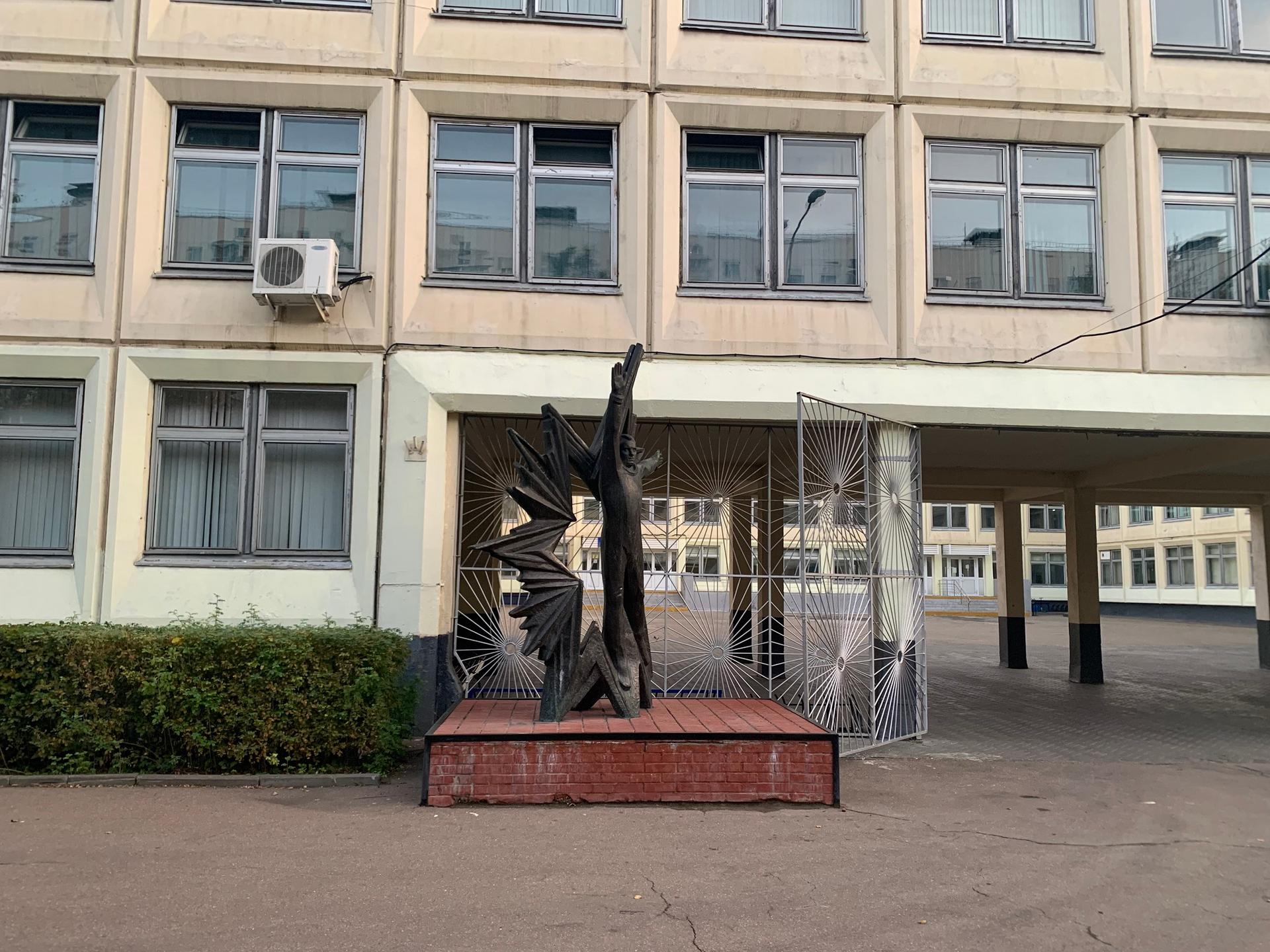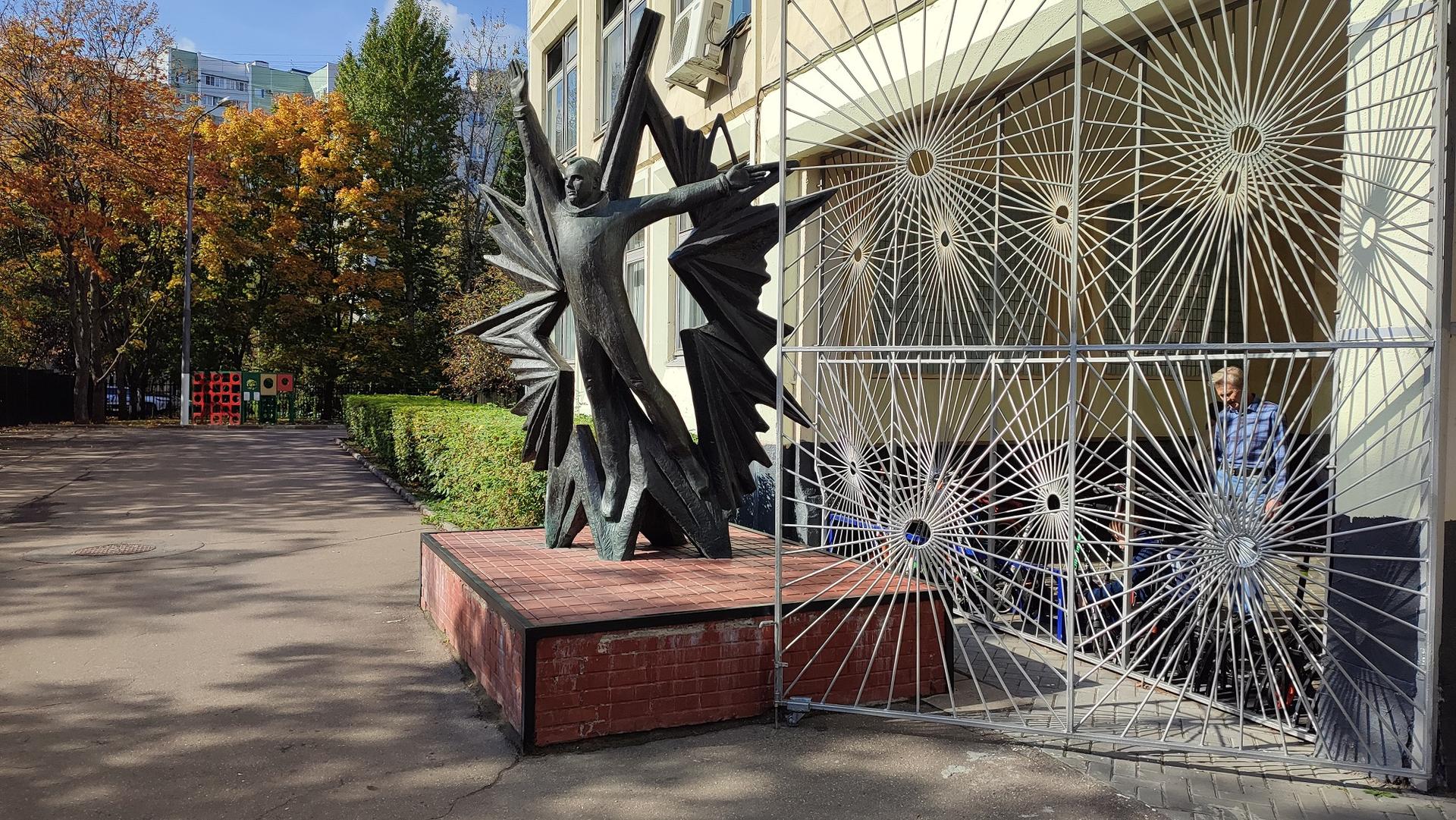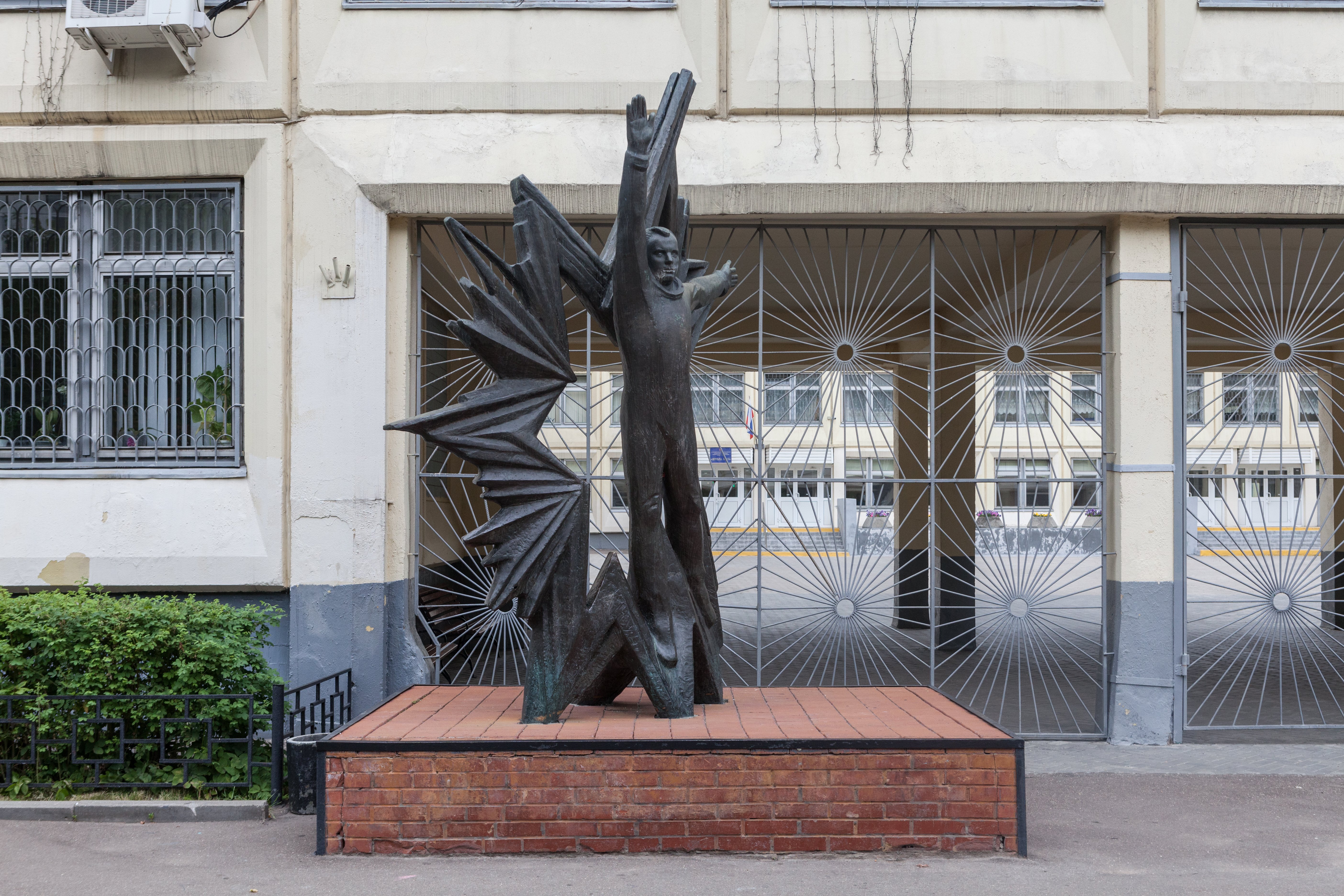 Памятник представляет собой фигуру космонавта Ю. А. Гагарина, словно парящего, широко раскинув руки, на фоне сияния огромной звезды. Скульптурная композиция установлена на основании полуметровой высоты. Основание выполнено из красного кирпича и облицовано сверху декоративной терракотовой плиткой.