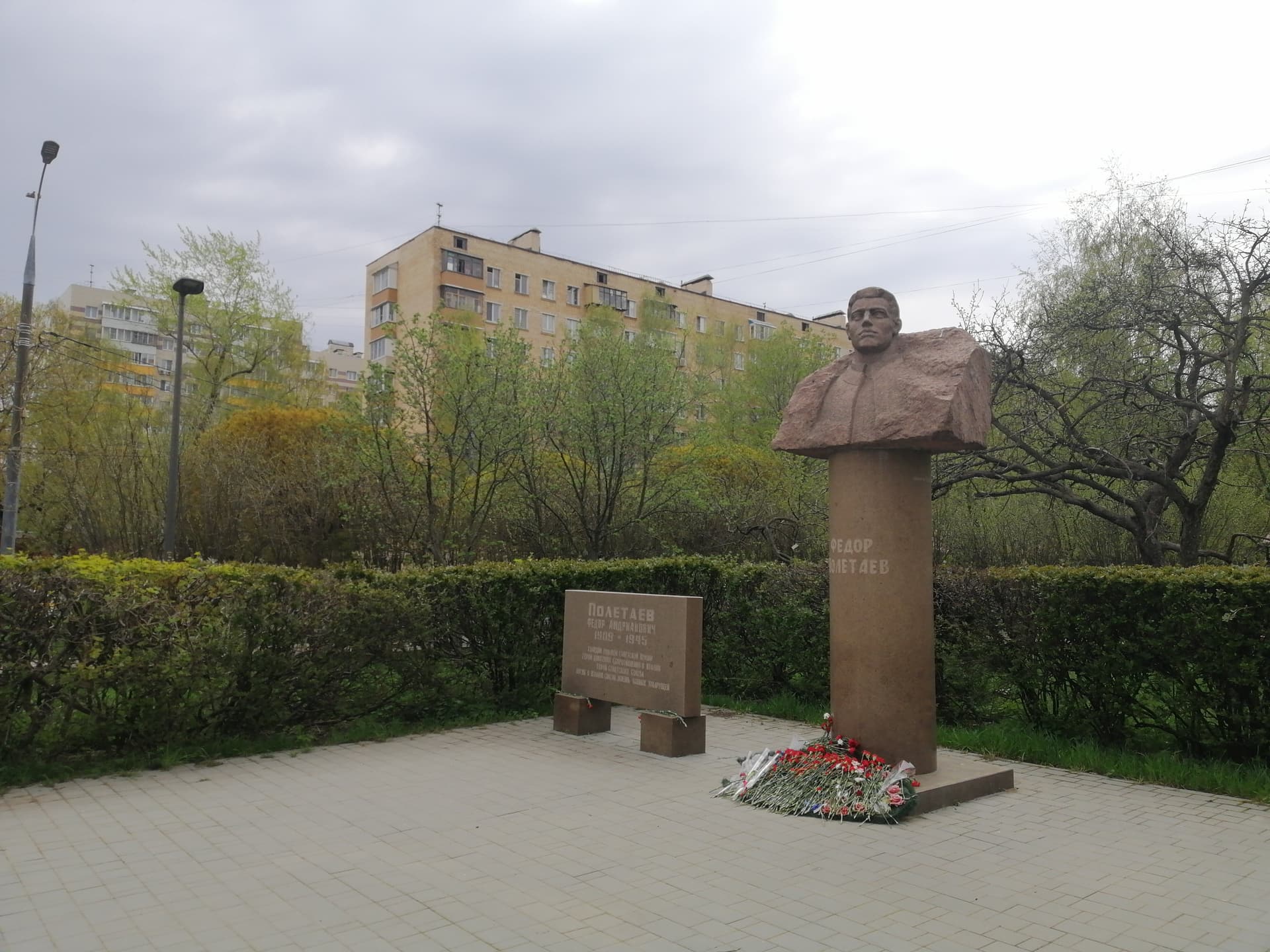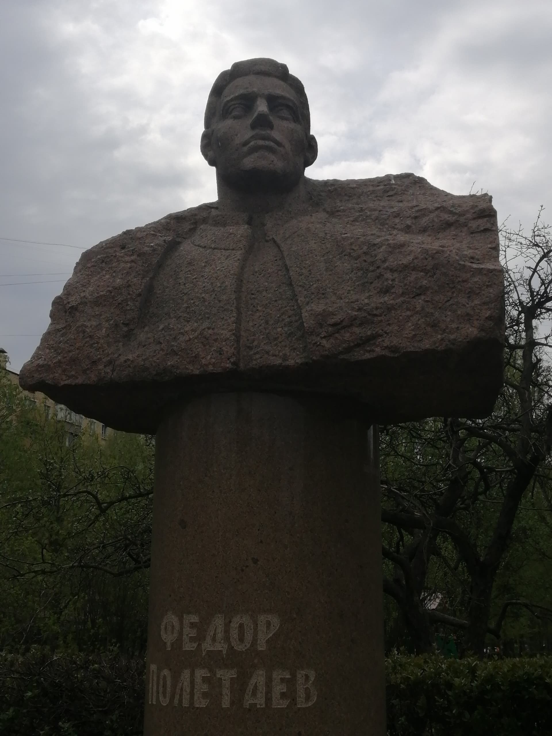 Памятник представляет собой бюст героя, выполненный из гранита. Бюст установлен на постамент из полированного гранита, на передней (северной) стороне которого выполнена надпись прорезными буквами: «Федор Полетаев».