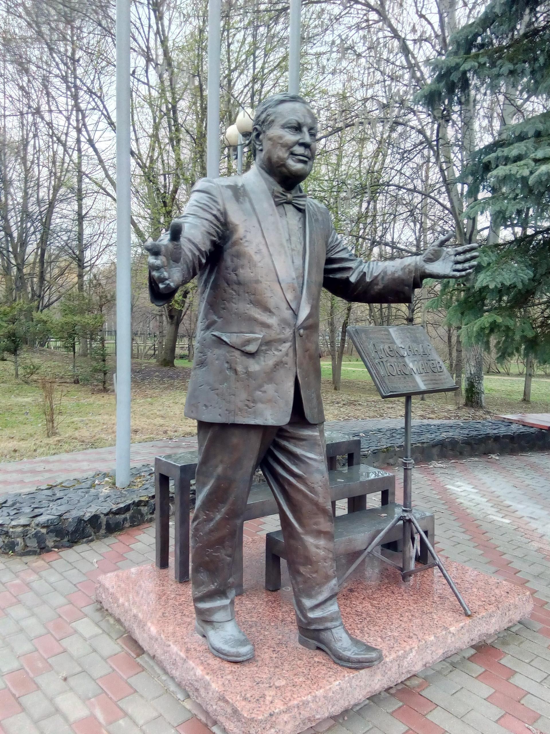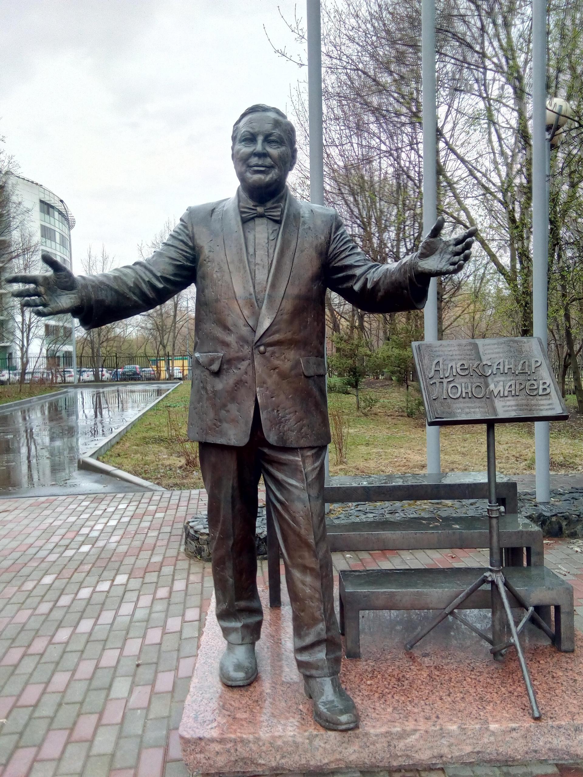 Скульптура изображает дирижера, одетого в концертный костюм с галстуком-бабочкой. Он, улыбаясь, разводит в стороны руки, представляя свой хор. Справа от фигуры Пономарева расположены хоровые ступени и пюпитр. Все детали памятника установлены на гранитной плите-основании.