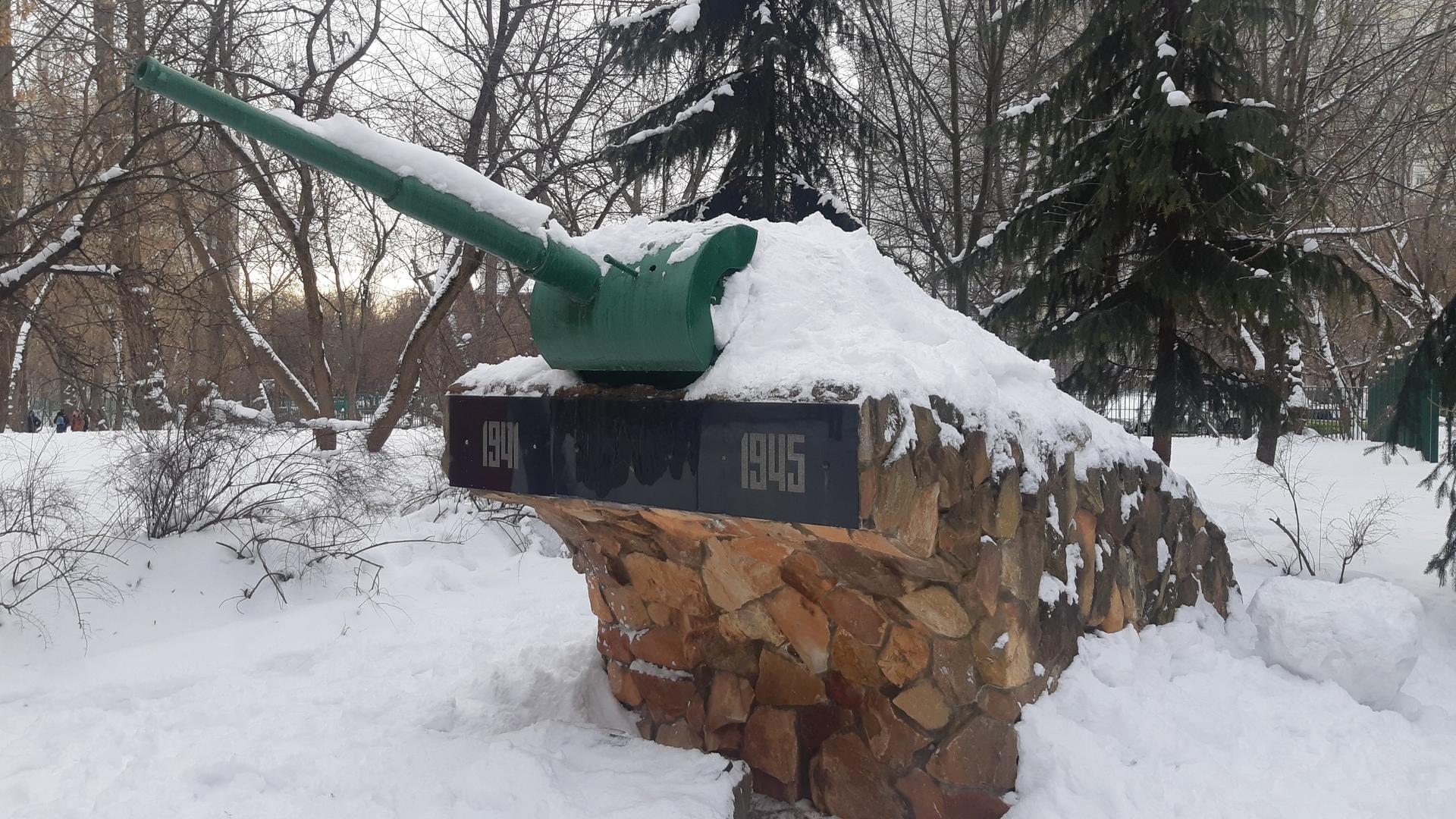 На высоком пьедестале, отделанном природным камнем, установлено железное сооружение в форме башни танка, выкрашенное в зеленый цвет. Надпись на мемориальной доске: «Остановись и поклонись! Памяти воинов 5-й гвардейской танковой армии, защищавших Родину в 1941-1945 гг.».