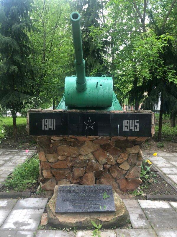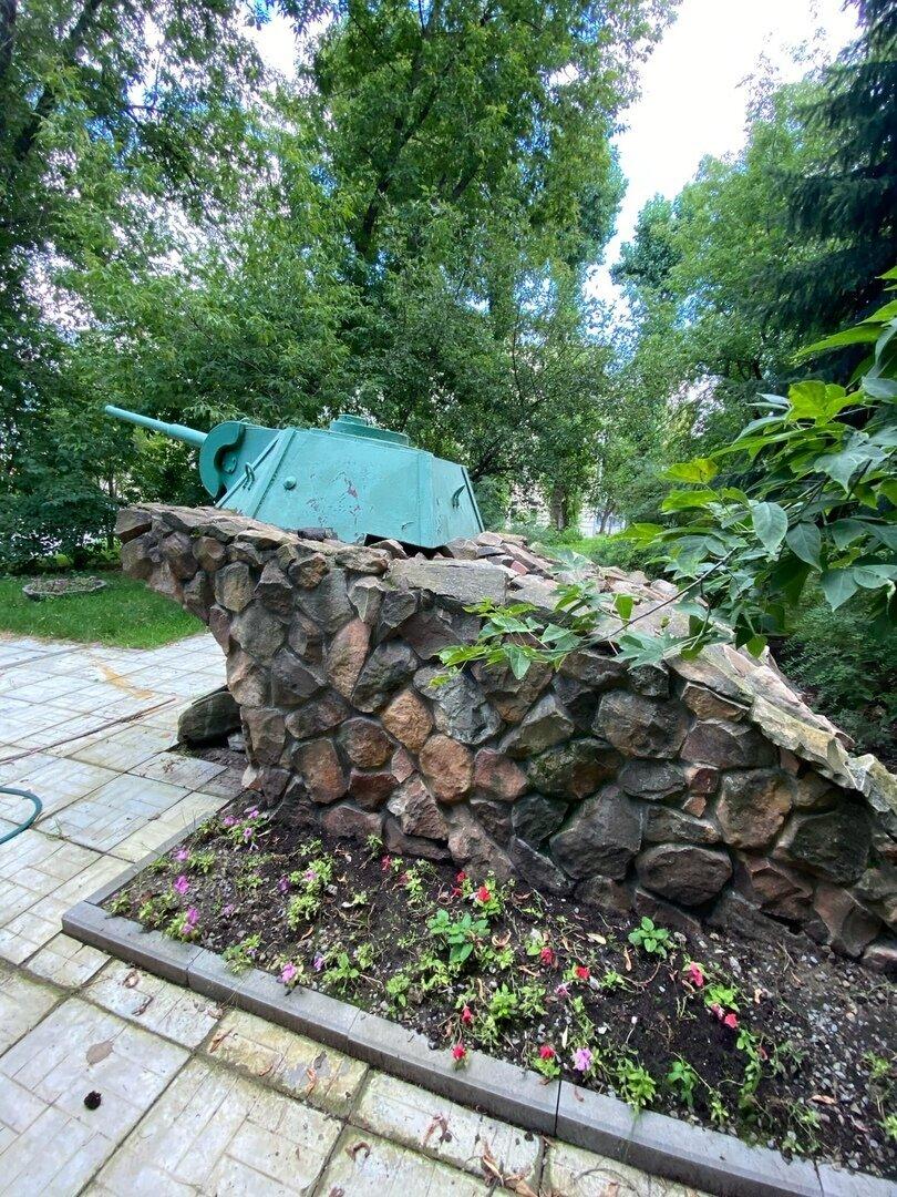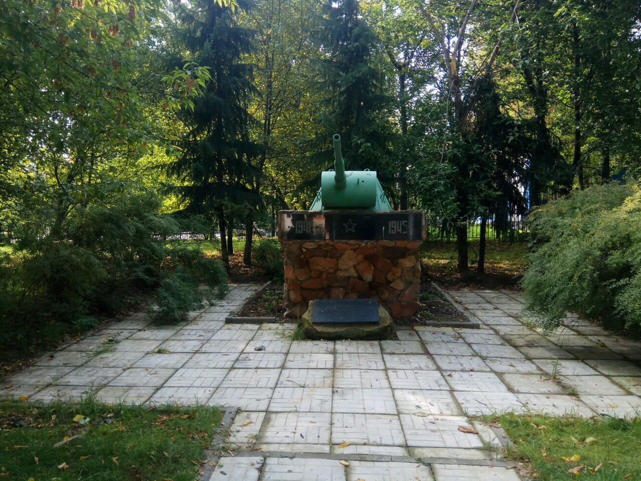 На высоком пьедестале, отделанном природным камнем, установлено железное сооружение в форме башни танка, выкрашенное в зеленый цвет. Надпись на мемориальной доске: «Остановись и поклонись! Памяти воинов 5-й гвардейской танковой армии, защищавших Родину в 1941-1945 гг.».