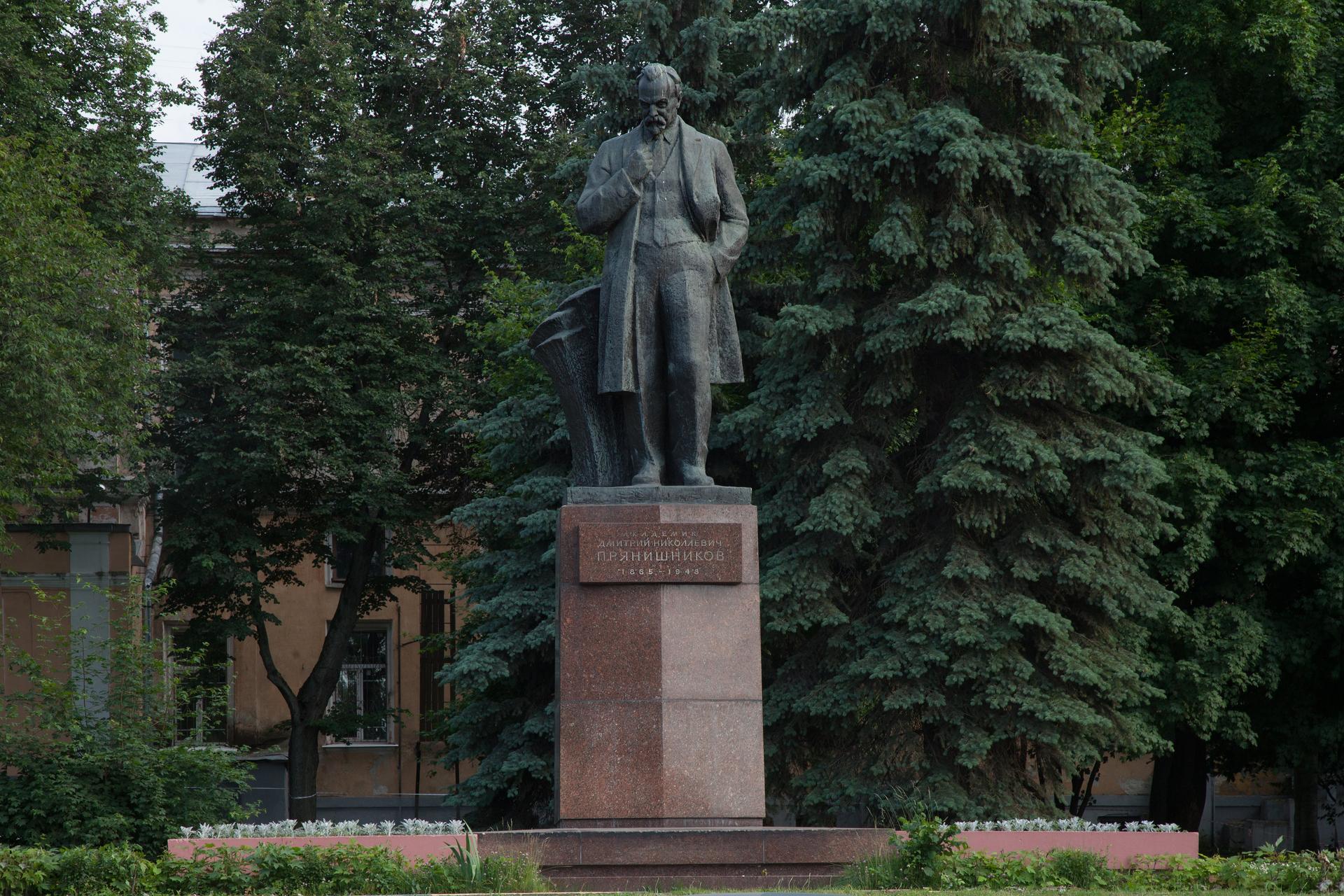 Памятник Д. Н. Прянишникову установлен в 1973 г. перед Научно-исследовательским институтом удобрений и агропочвоведения им. Д. Н. Прянишникова (на улице его же имени, дом 6). Ученый изображен в полный рост, одет в костюм-тройку и пальто. Голова опущена вниз, лицо задумчивое, левая рука опущена в карман брюк.