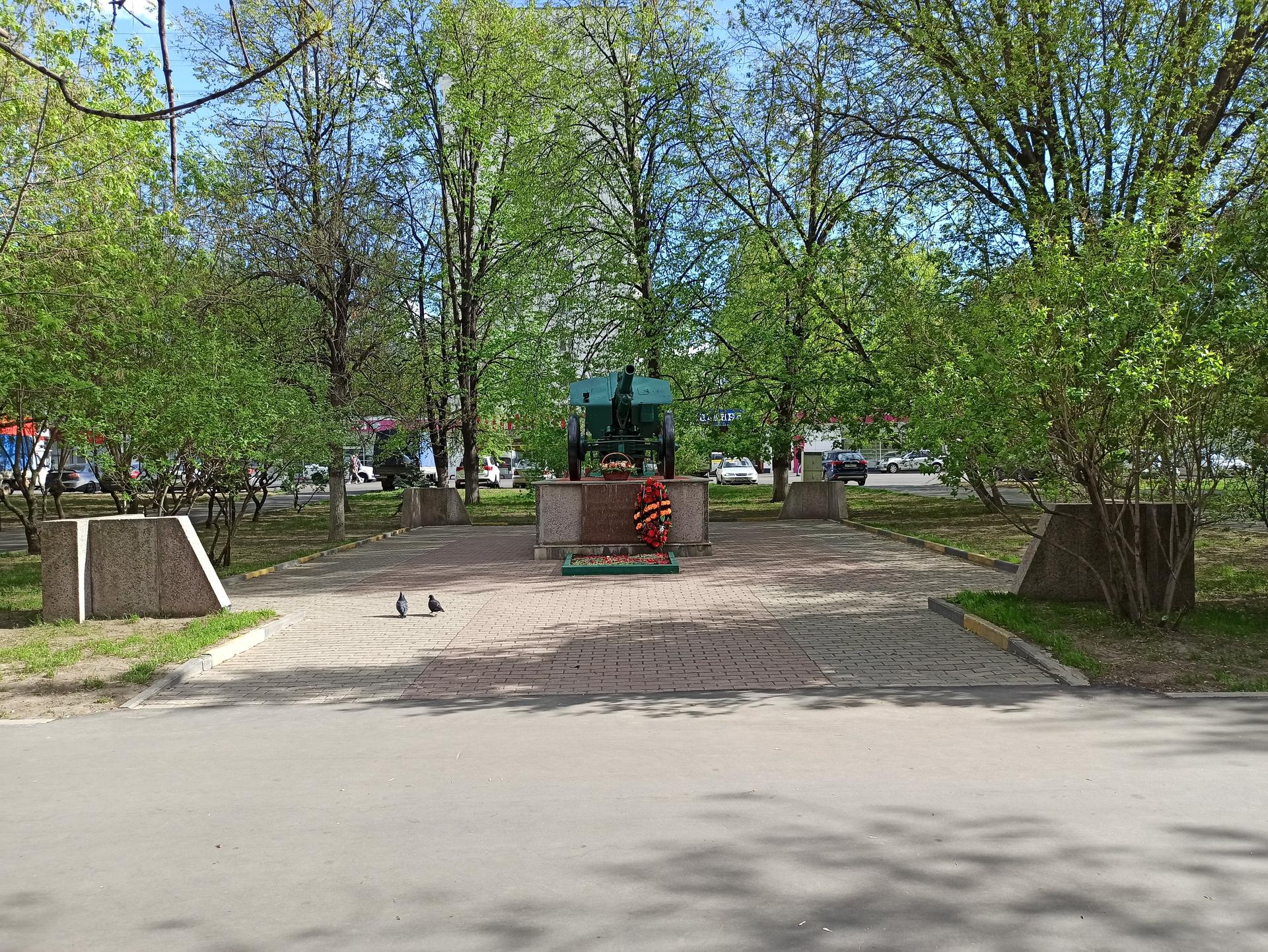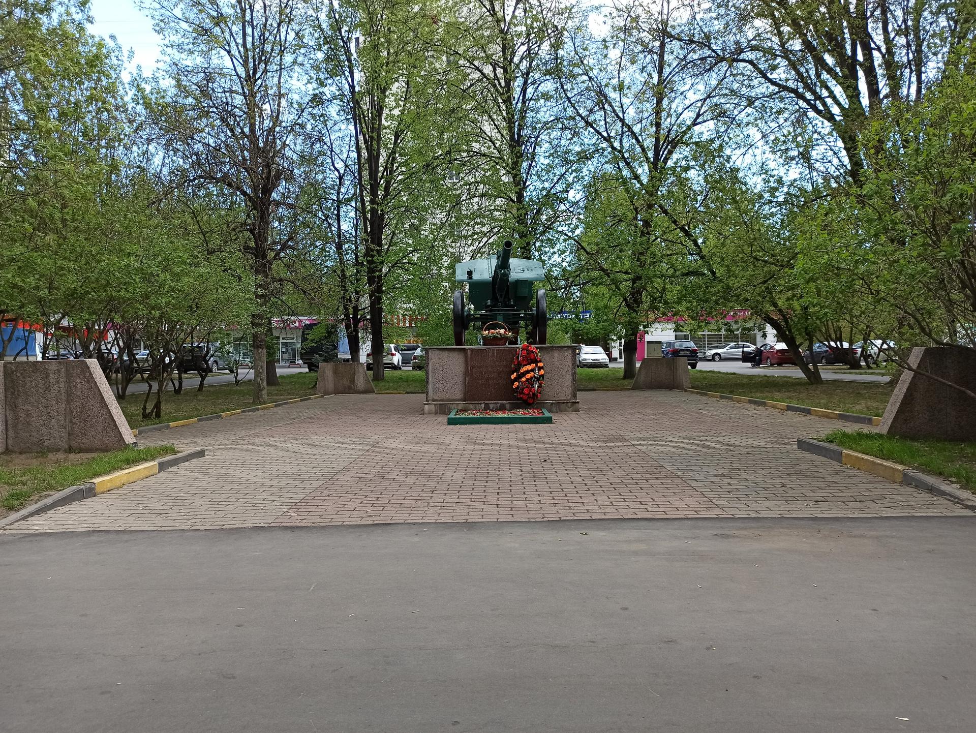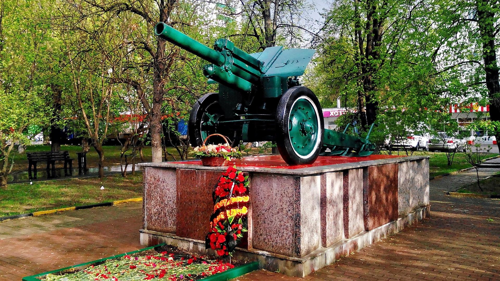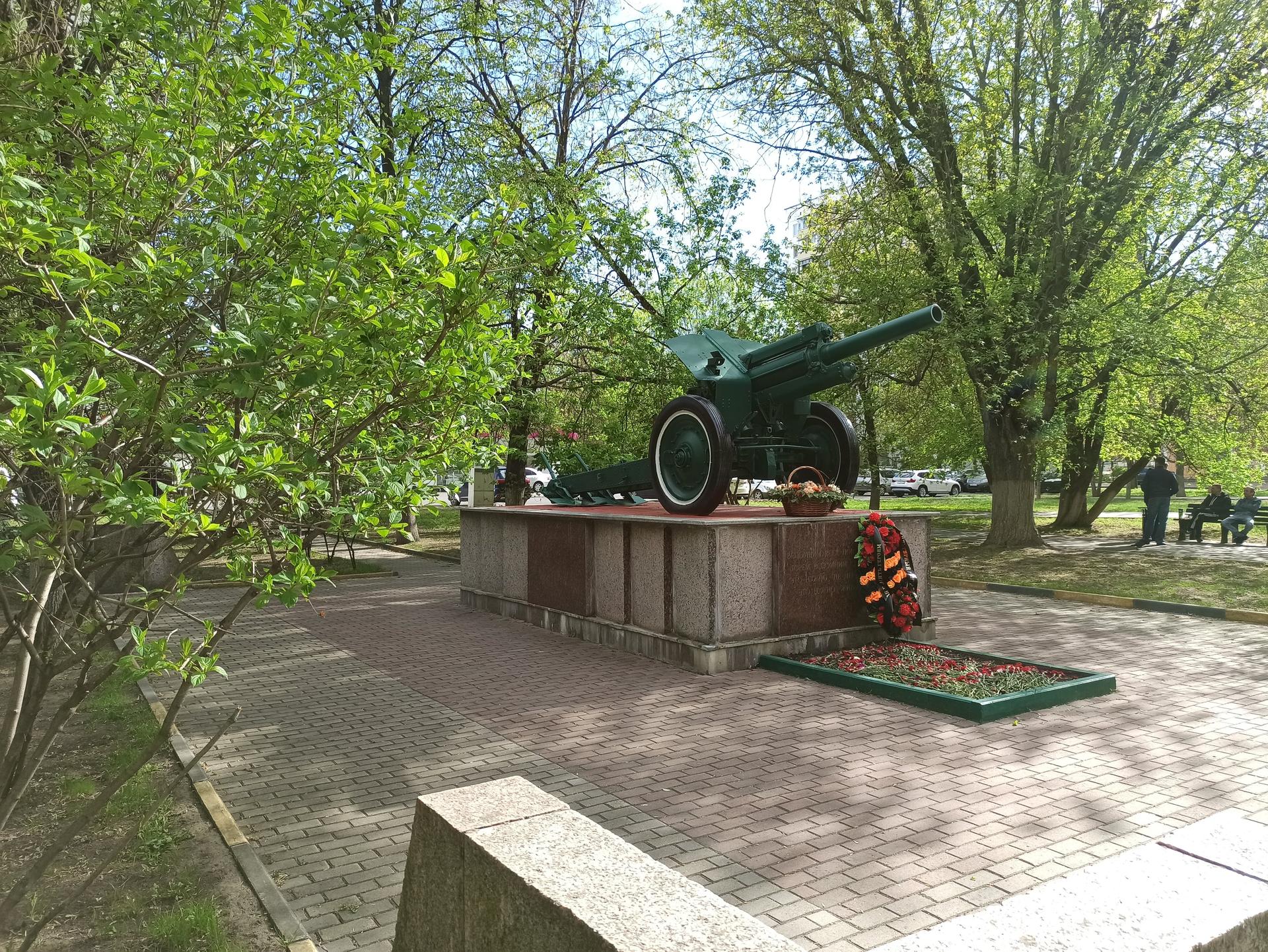 Памятный знак представляет собой пушку, установленную на прямоугольном гранитном постаменте. На лицевой стороне постамента выполнена посвятительная надпись прорезными буквами: «Вспомним всех поименно, горем вспомним своим, это нужно — не мертвым, это нужно — живым!».
