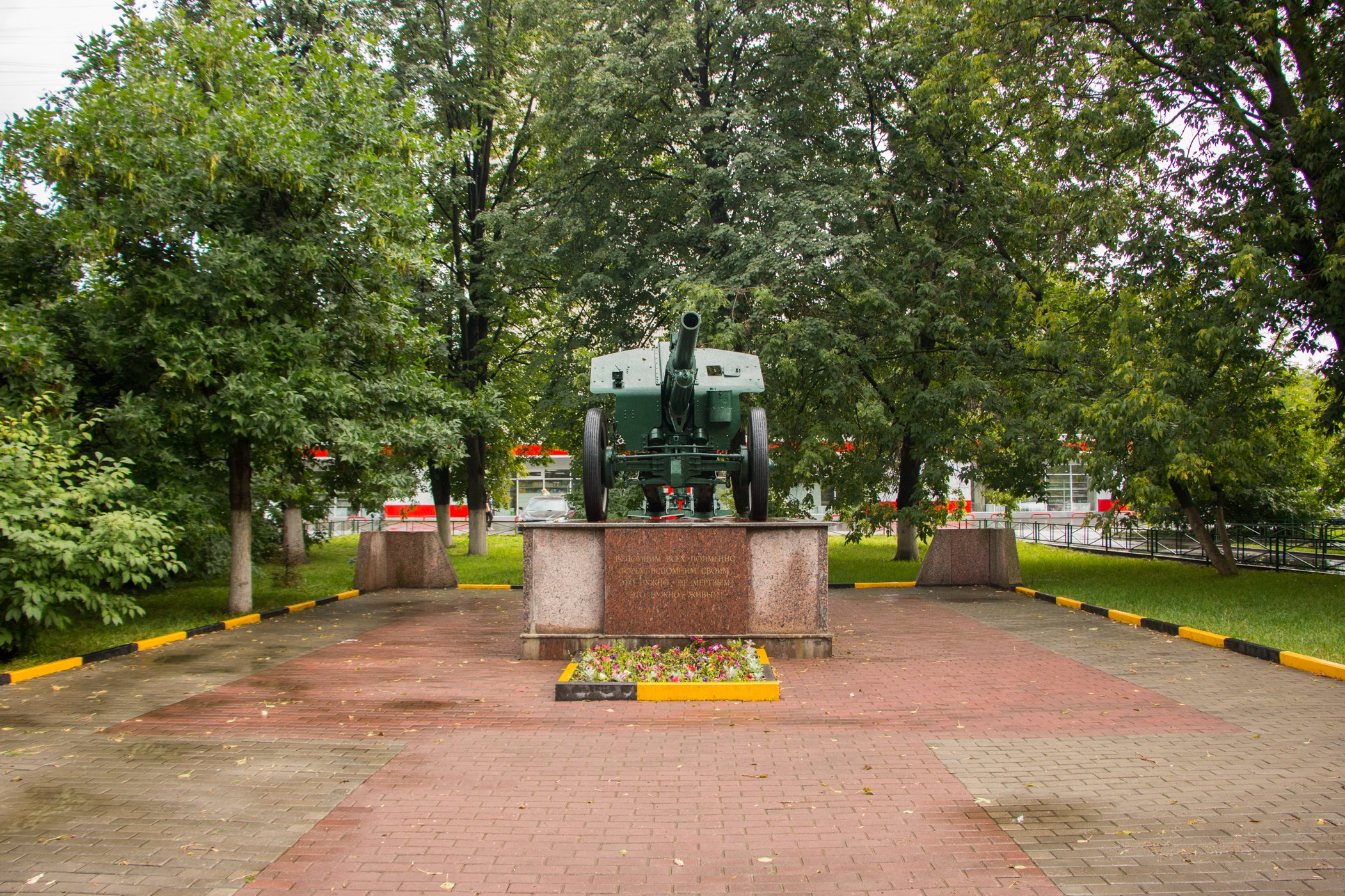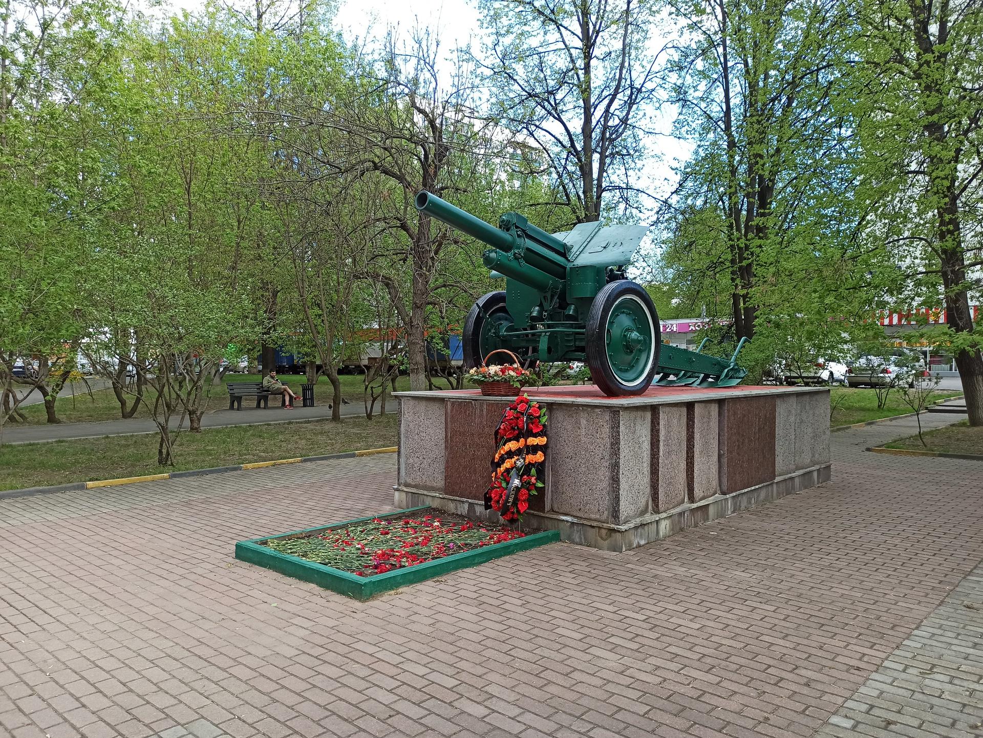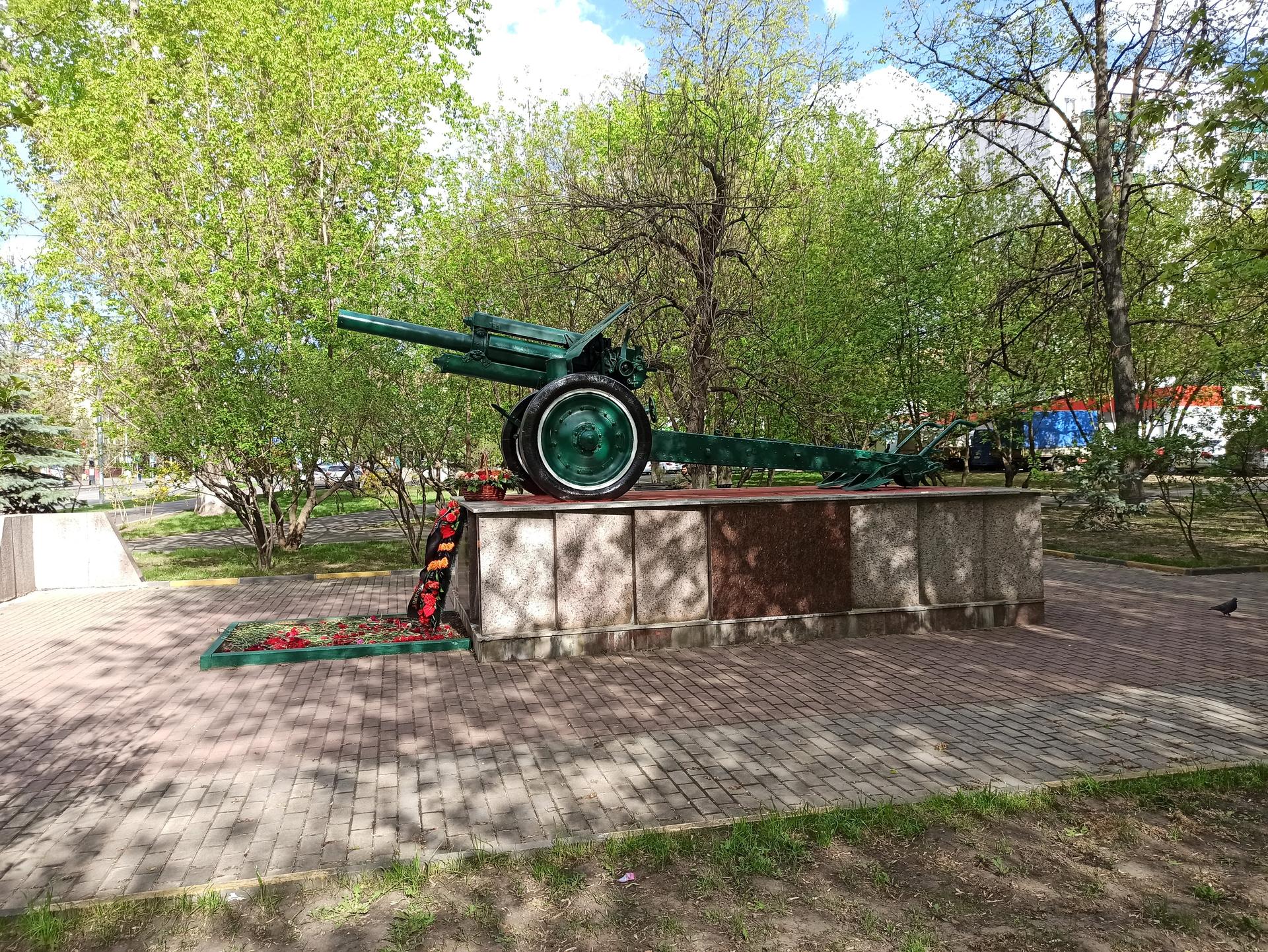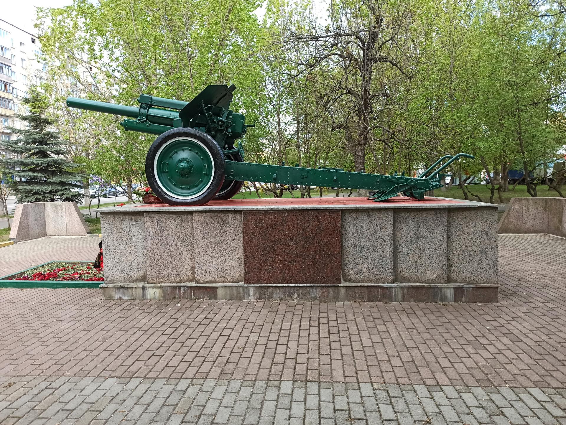 Памятный знак представляет собой пушку, установленную на прямоугольном гранитном постаменте. На лицевой стороне постамента выполнена посвятительная надпись прорезными буквами: «Вспомним всех поименно, горем вспомним своим, это нужно — не мертвым, это нужно — живым!».
