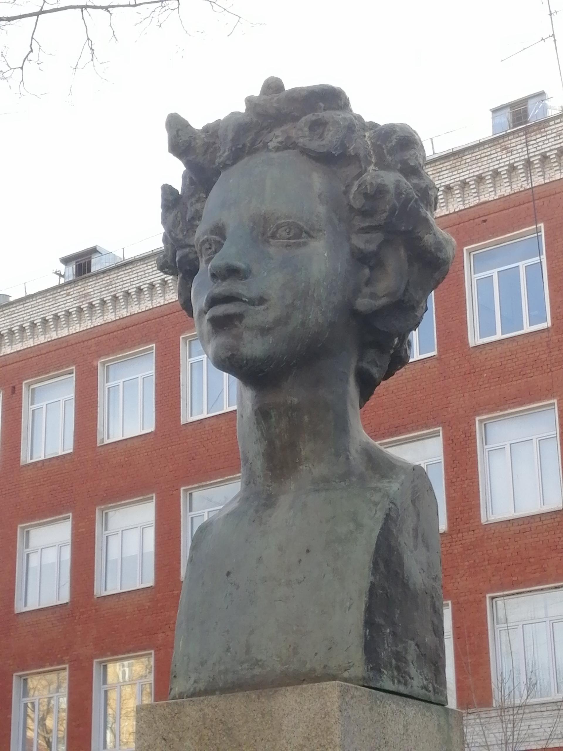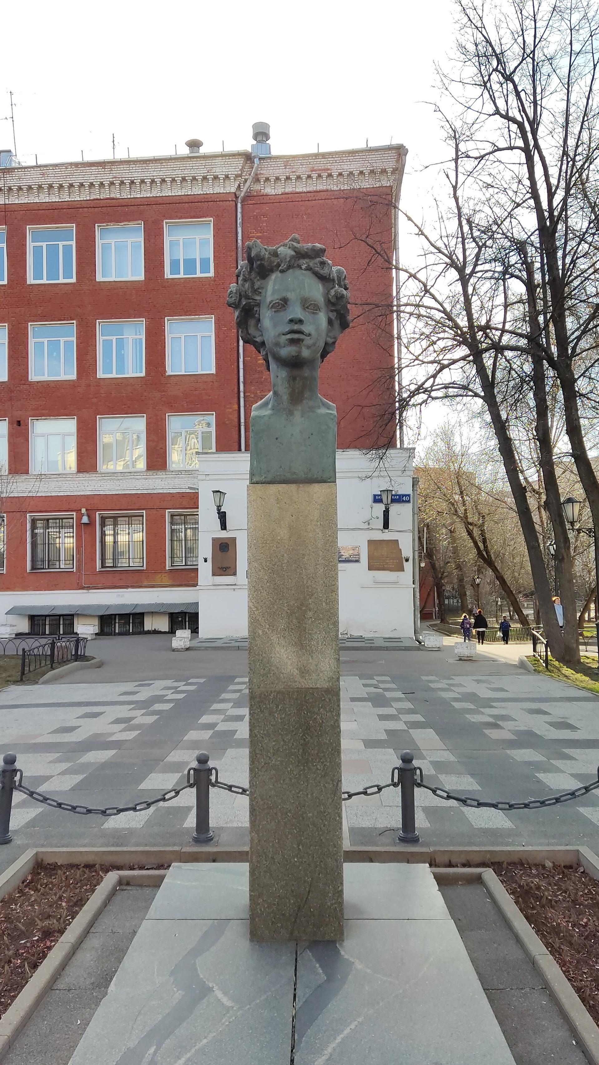 Александр Сергеевич Пушкин (1799—1837) — русский поэт, драматург и прозаик, заложивший основы русского реалистического направления, критик и литературы, историк, публицист; один из самых авторитетных литературных деятелей первой трети XIX в. Главной отличительной особенностью бронзового бюста Пушкина на Бауманской, установленного на гранитном постаменте, является то, что поэт представлен совсем юным мальчишкой с растрепанными и знакомыми всем вихрами волос.