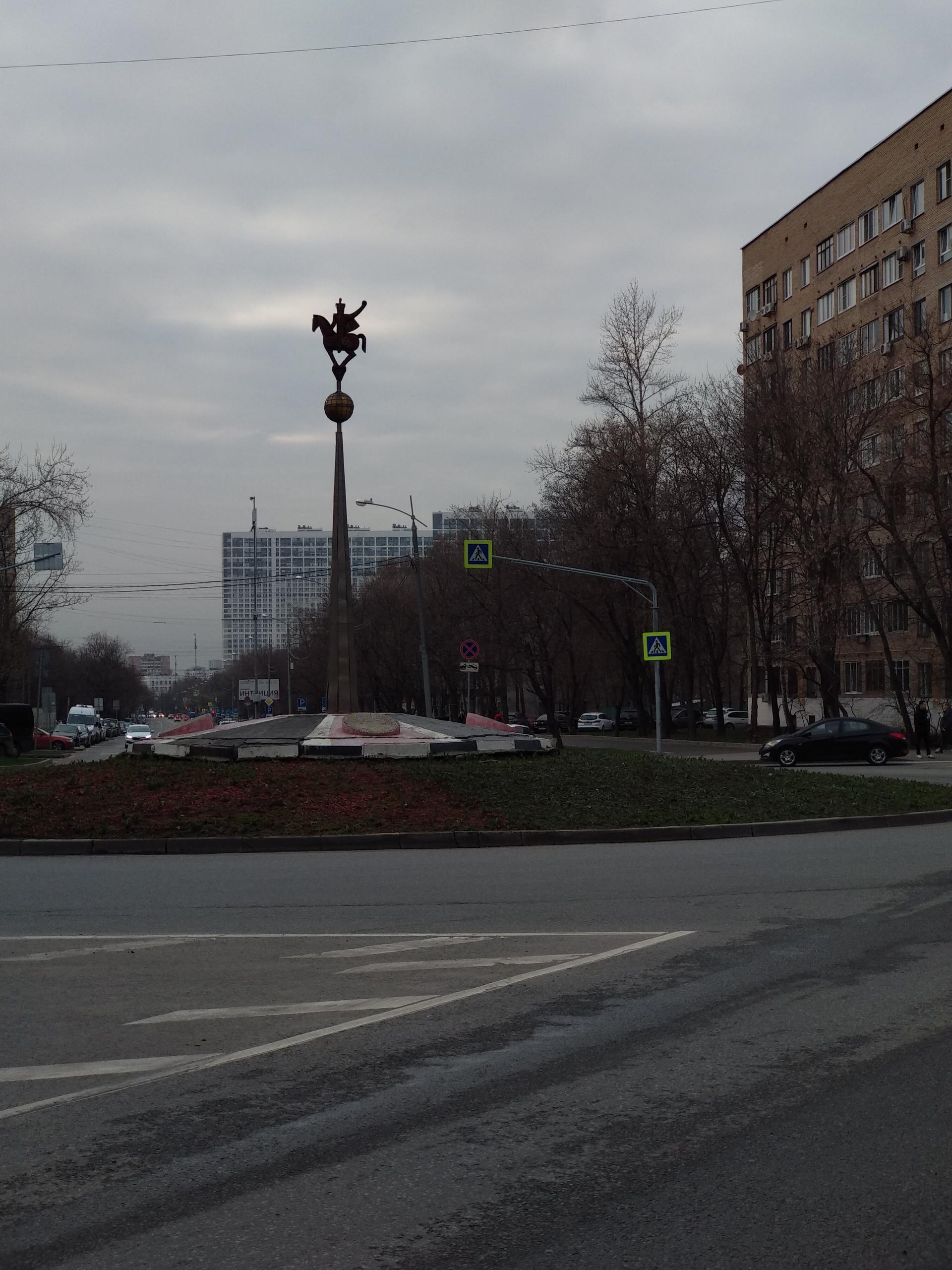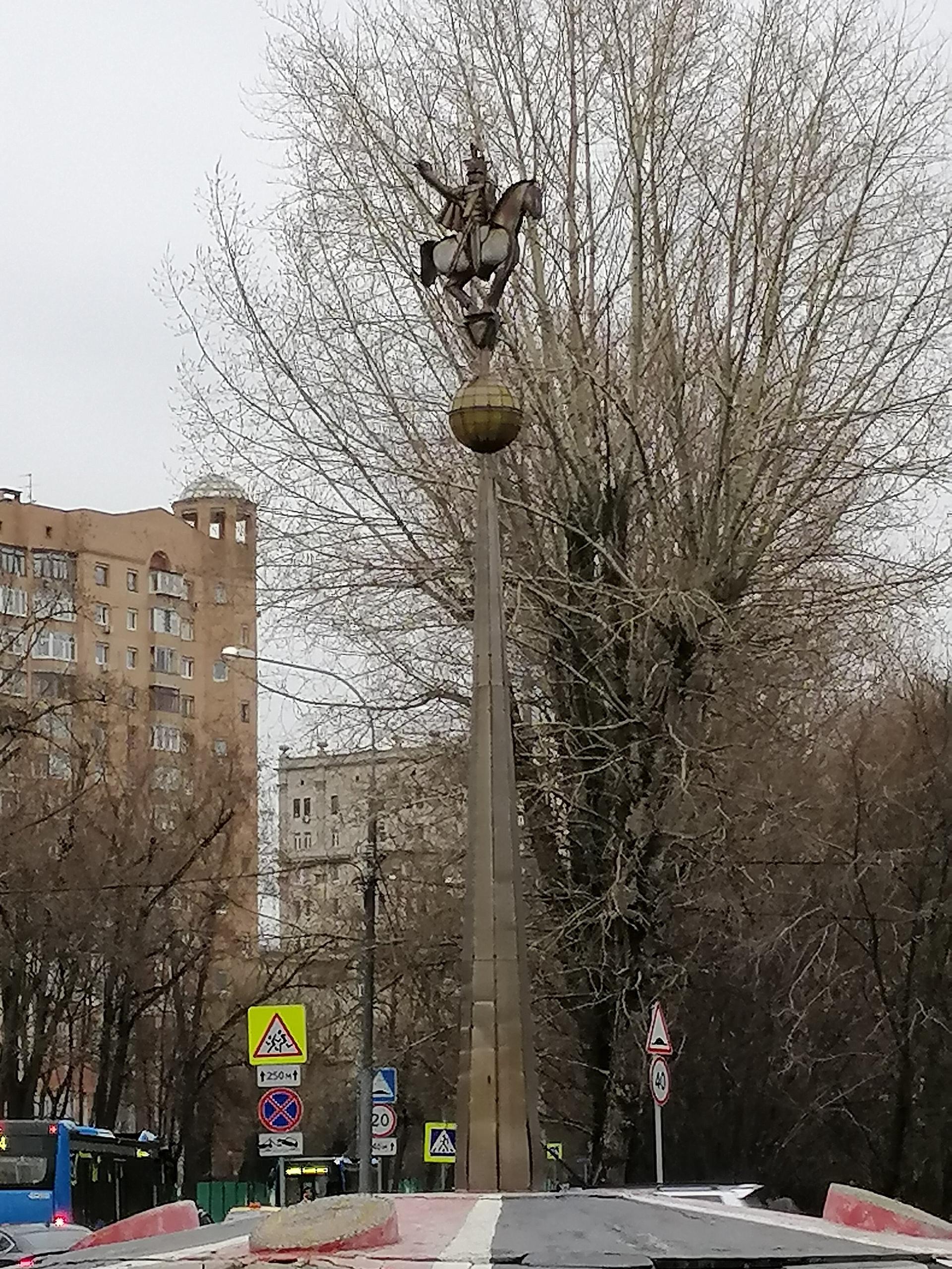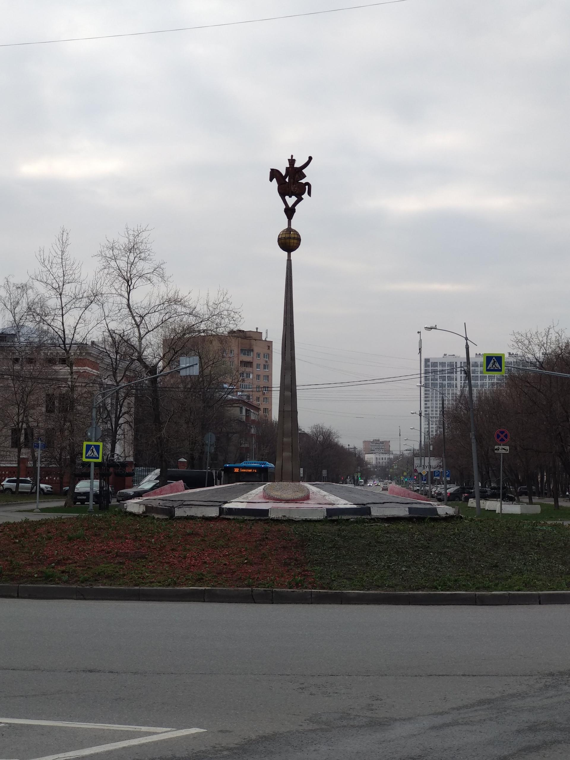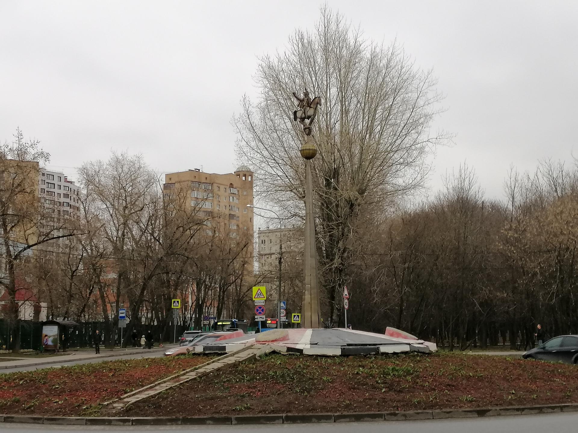 Обелиск возведен к празднованию 850-летнего юбилея Москвы. Представляет собой стальной шпиль высотой более 5 м, на конце которого позолоченный шар и бронзовая фигура гусара на коне. Днем, в лучах солнца, шар сияет как звезда. Конструкция была названа «Путеводной звездой гусара», построена как символ войны 1812 г.