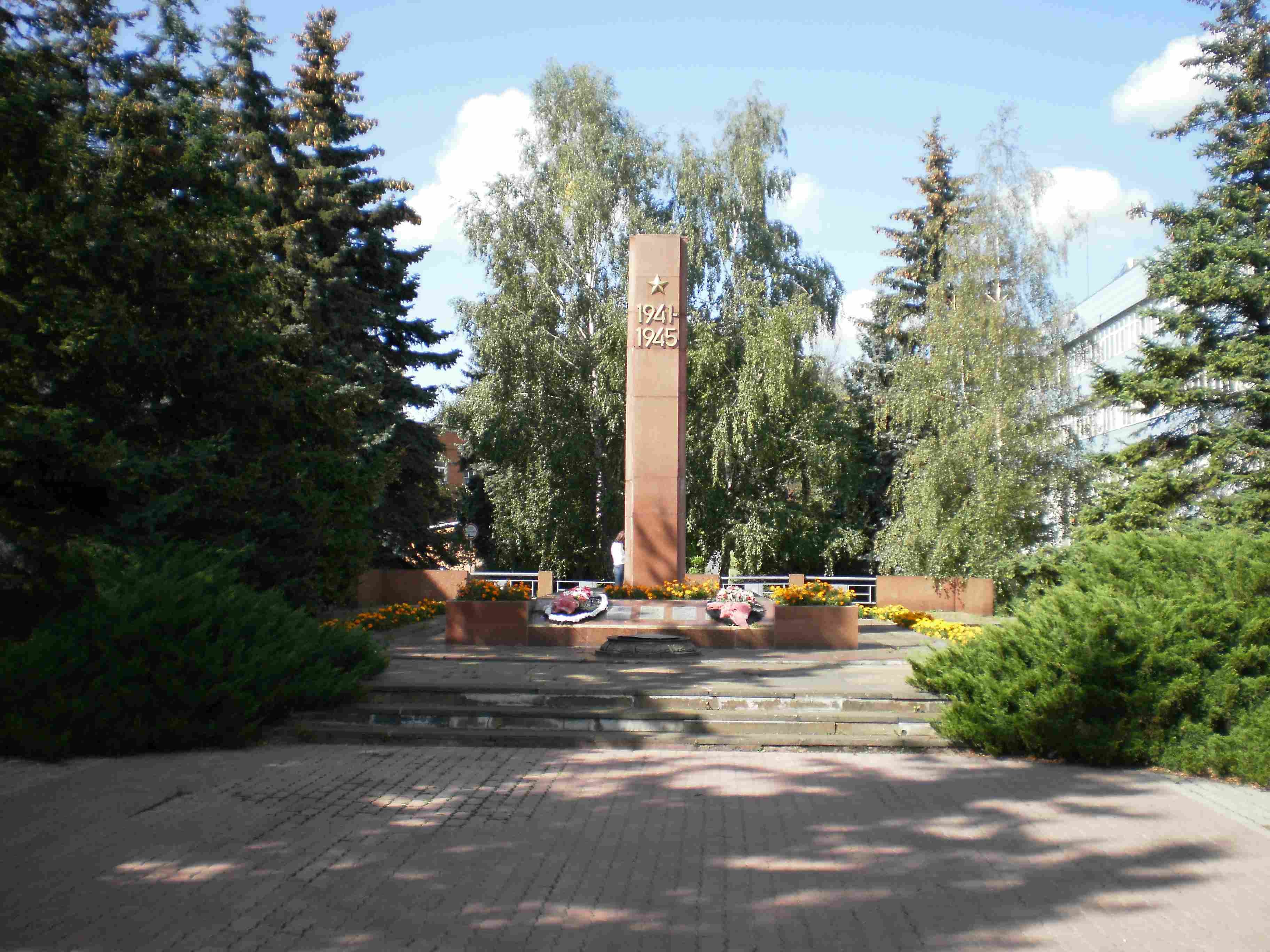 Мемориальный комплекс состоит из стелы, облицованной плитами из красного гранита. Установлена стела на гранитный постамент. На наклонной части постамента закреплены мемориальные таблички с именами погибших заводчан. Перед монументом — металлический композиционный эле-мент, стилизованный под крышку люка с орнаментом из лавровых листов посвятительной надписью: «Заводчанам, павшим в Великой Отечественной войне 1941-1945 гг.». Ремонтные работы на объекте проводились в 2015 г.