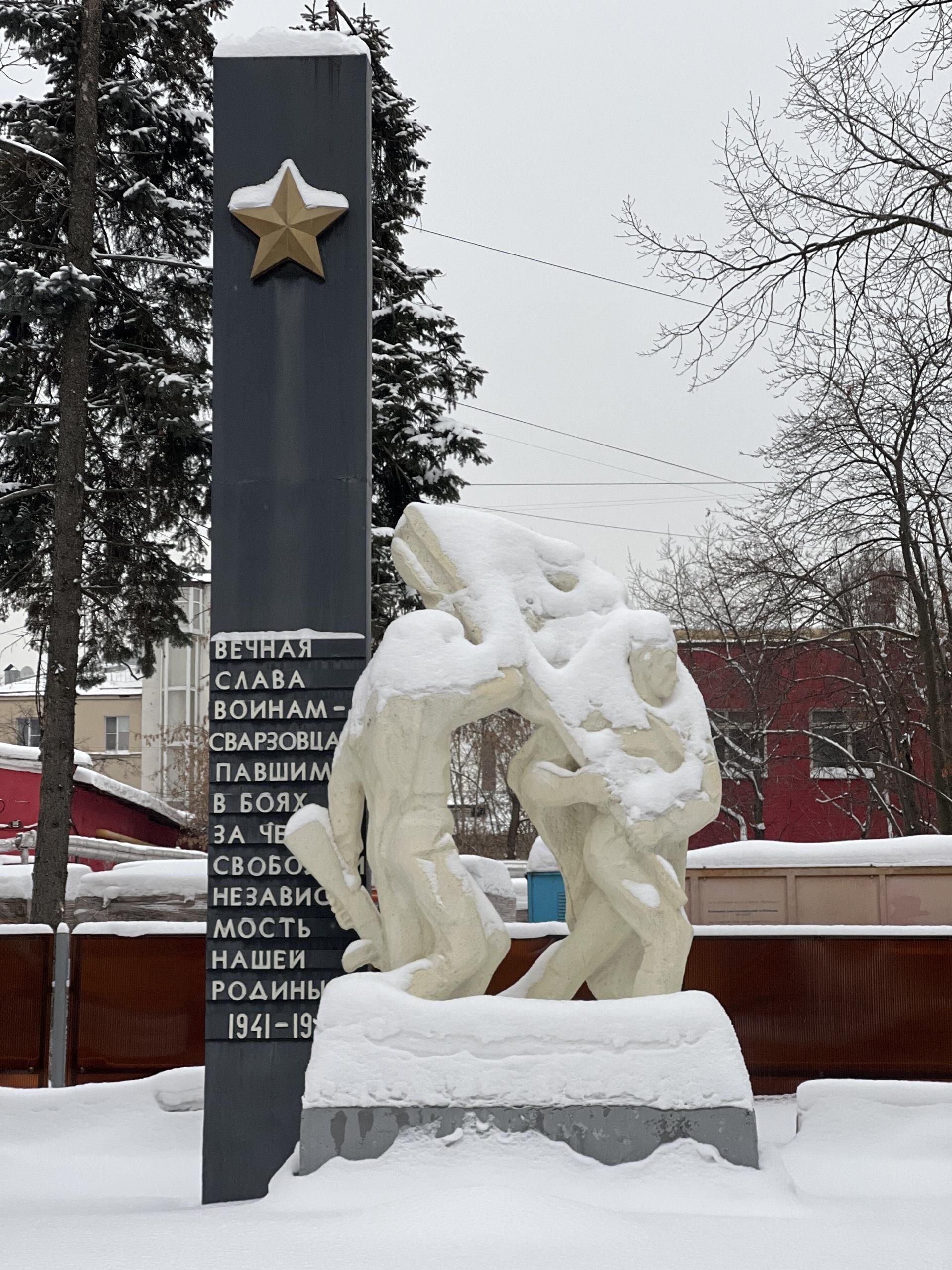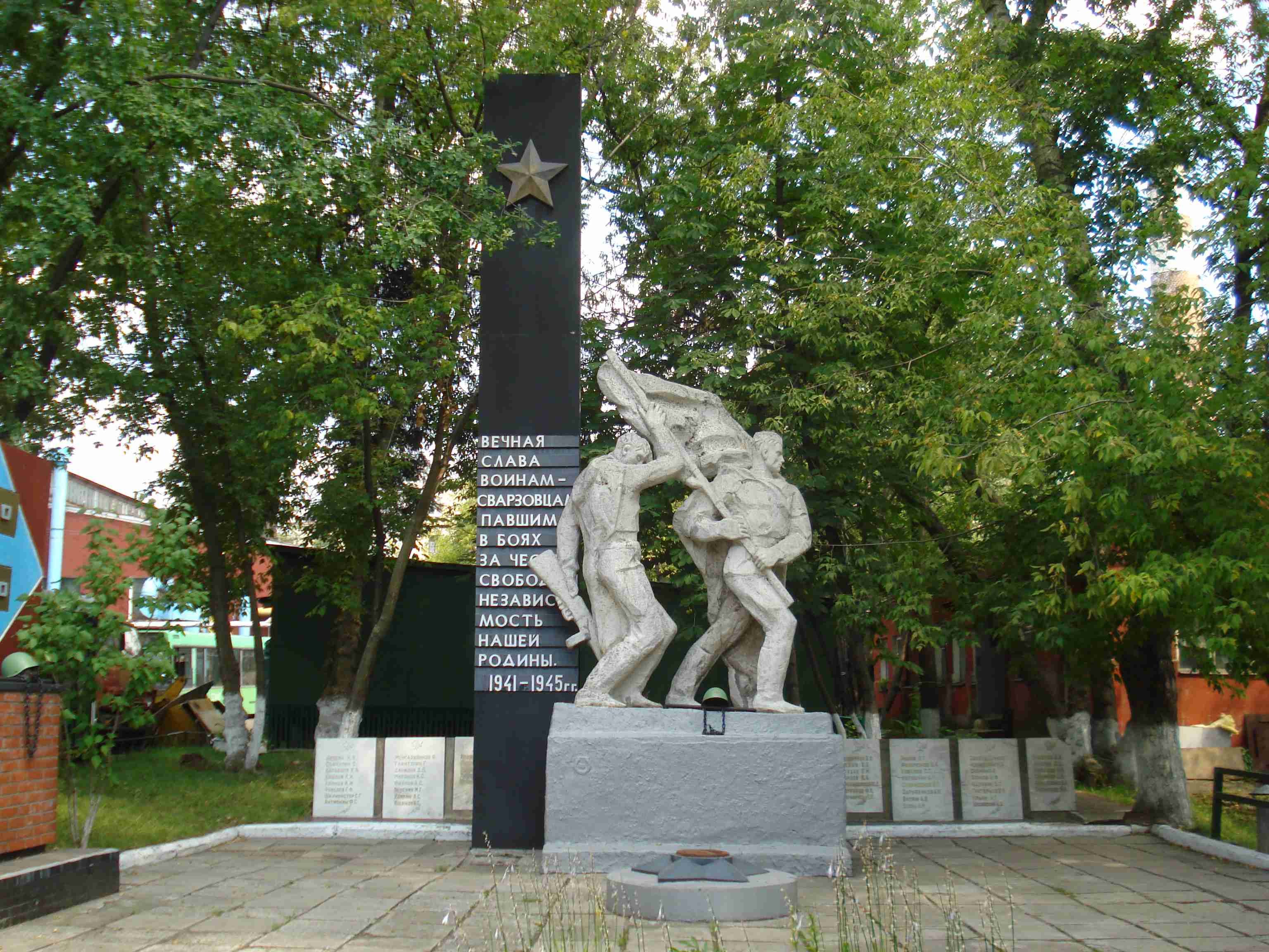 Объект состоит из скульптурной композиции и мемориальной стены. На гранитном постаменте установлены две фигуры солдат. Один из них, умирая, передает боевое знамя своему товарищу, идущему впереди. На пилоне под пятиконечной звездой надпись: «Вечная слава воинам-сварзовцам, павшим в боях за честь, свободу и независимость нашей Родины. 1941-1945 гг.». На плитах нанесены 54 фамилии погибших на войне заводчан.