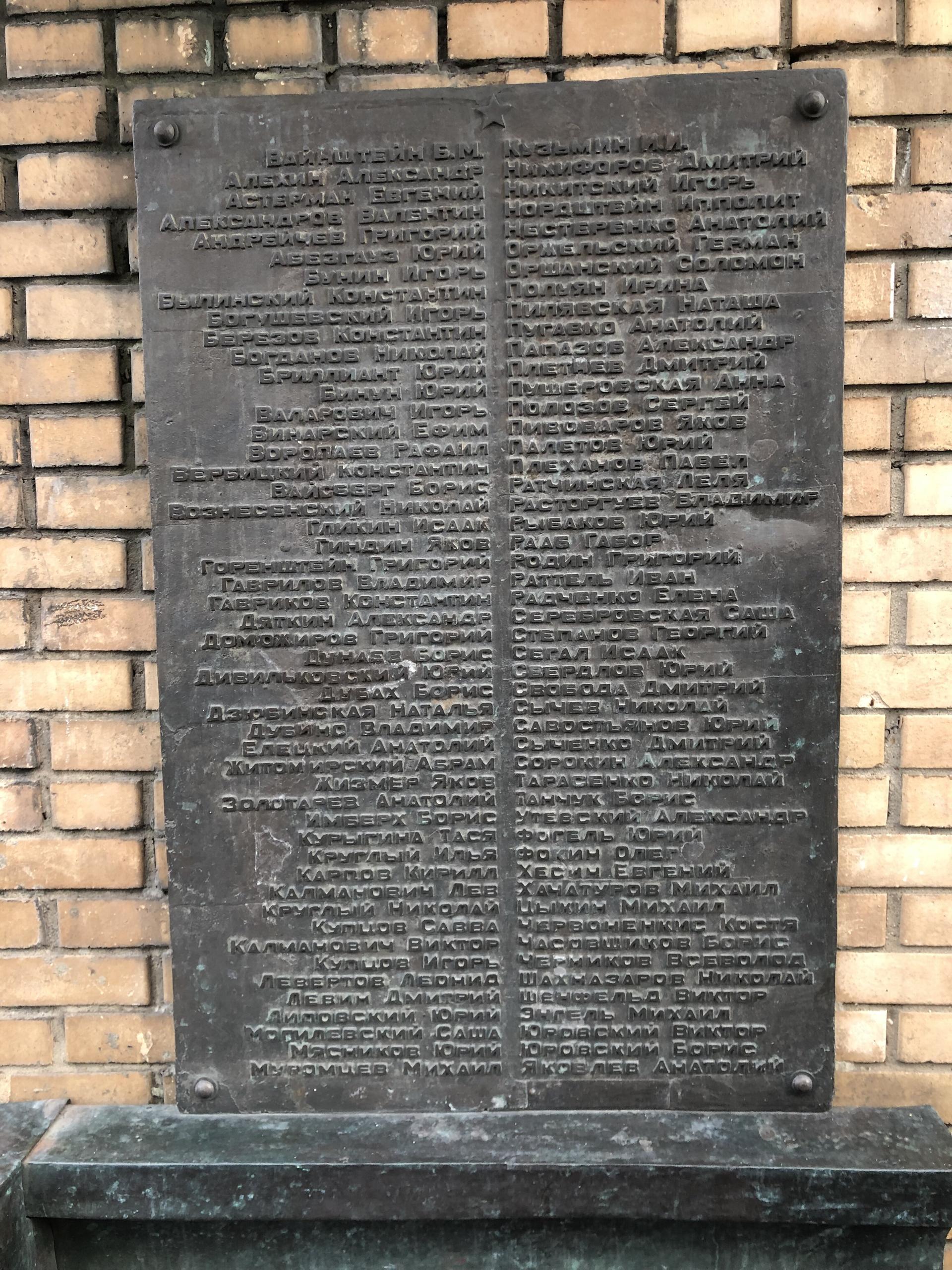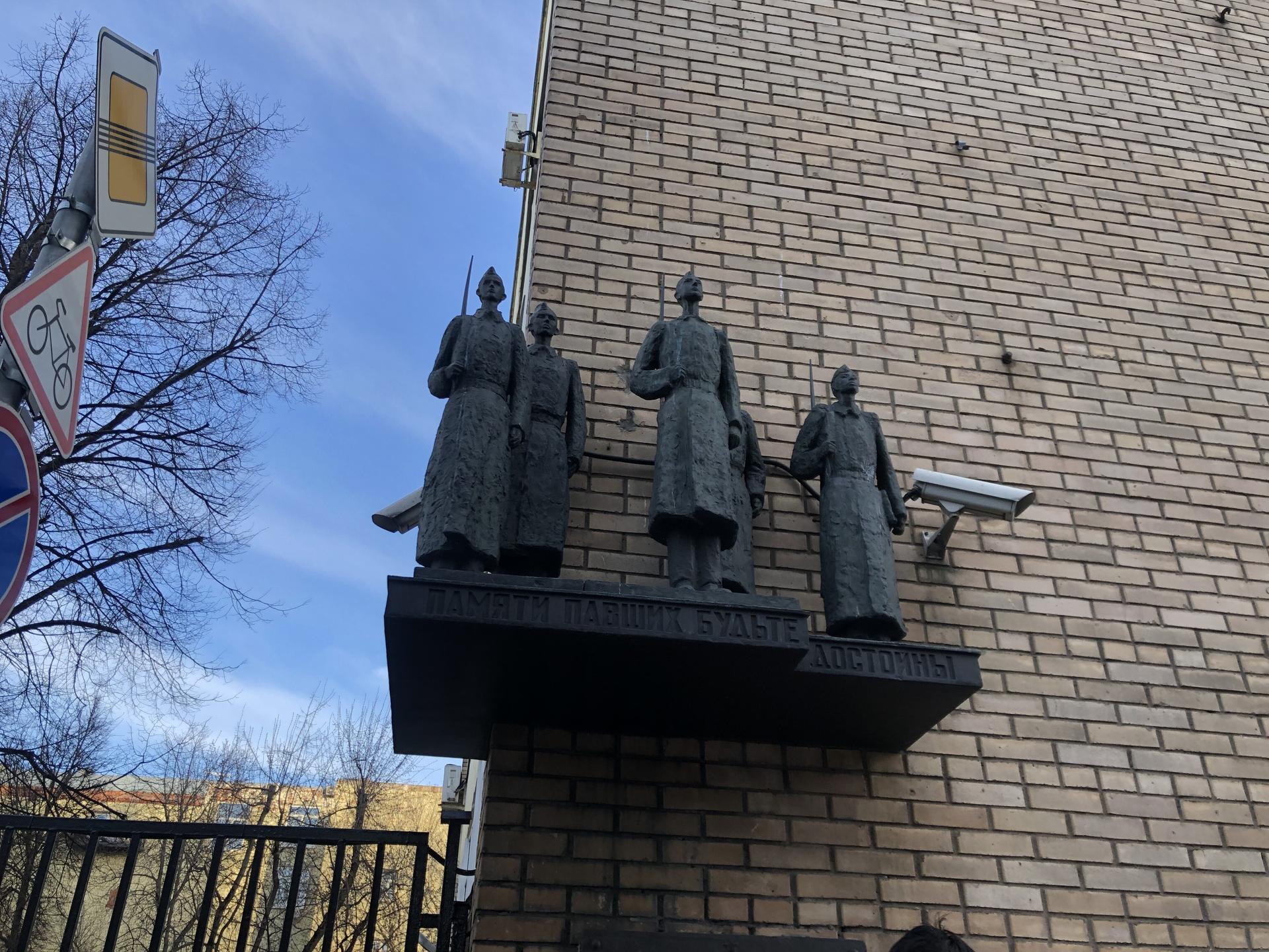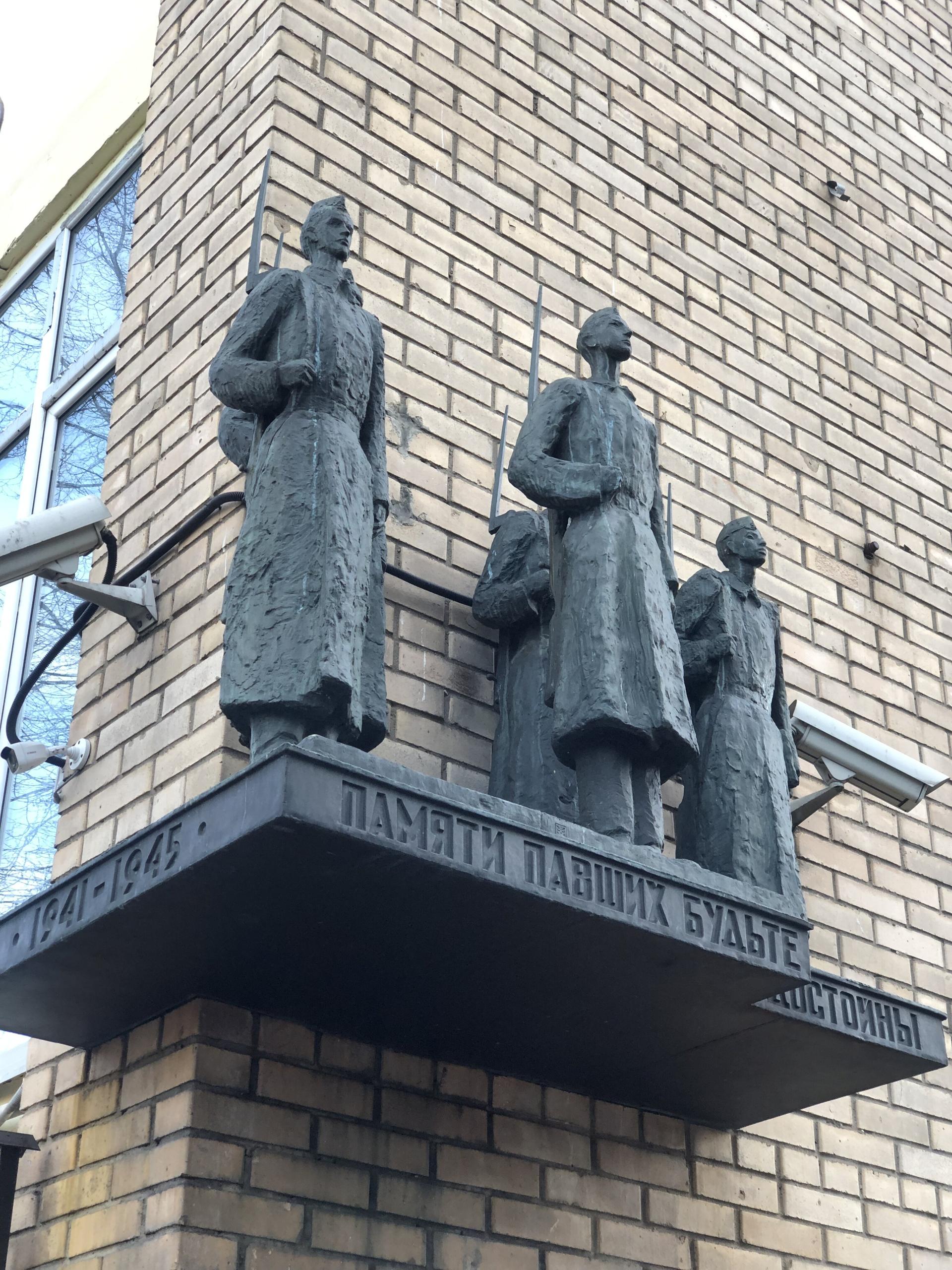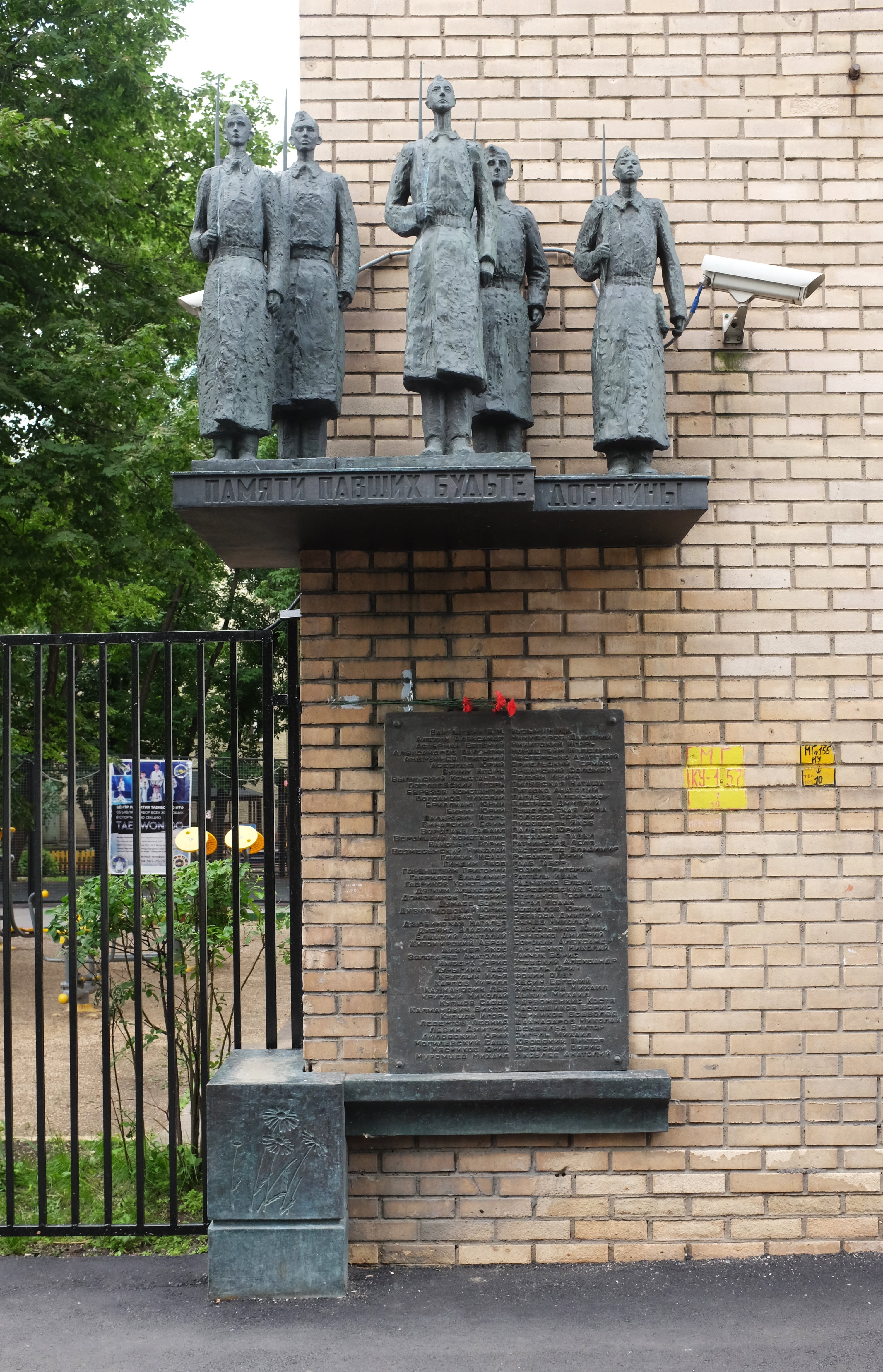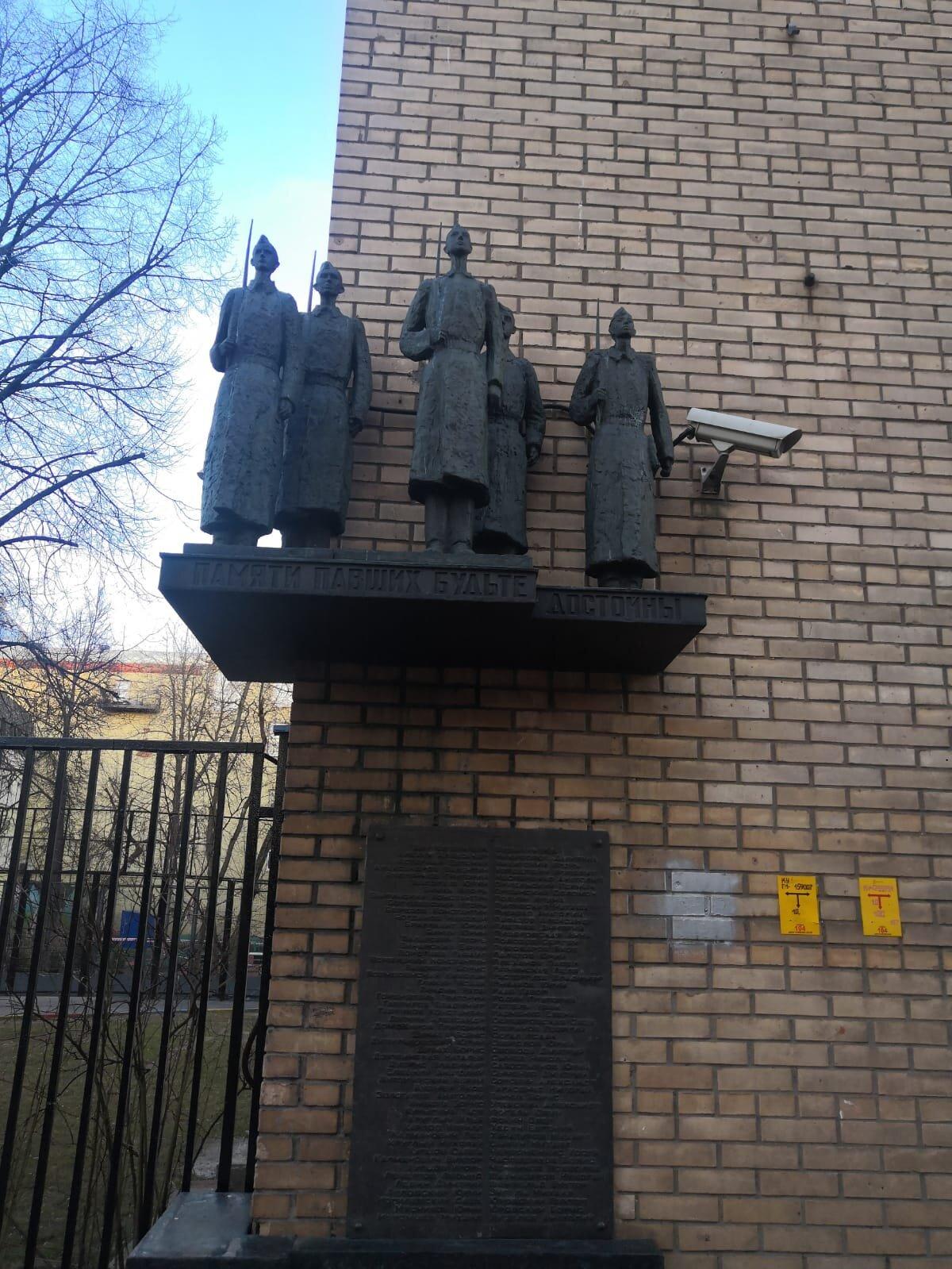 Памятник установлен на консоли фасада учебного заведения со стороны Ножевого переулка и представляет собой пять бронзовых фигур погибших добровольцев-десятиклассников и мраморную доску с именами 100 учеников и преподавателей школы № 110 им. Ф. Нансена. Фигуры портретны. На основании памятника высечено: «Памяти павших будьте достойны».